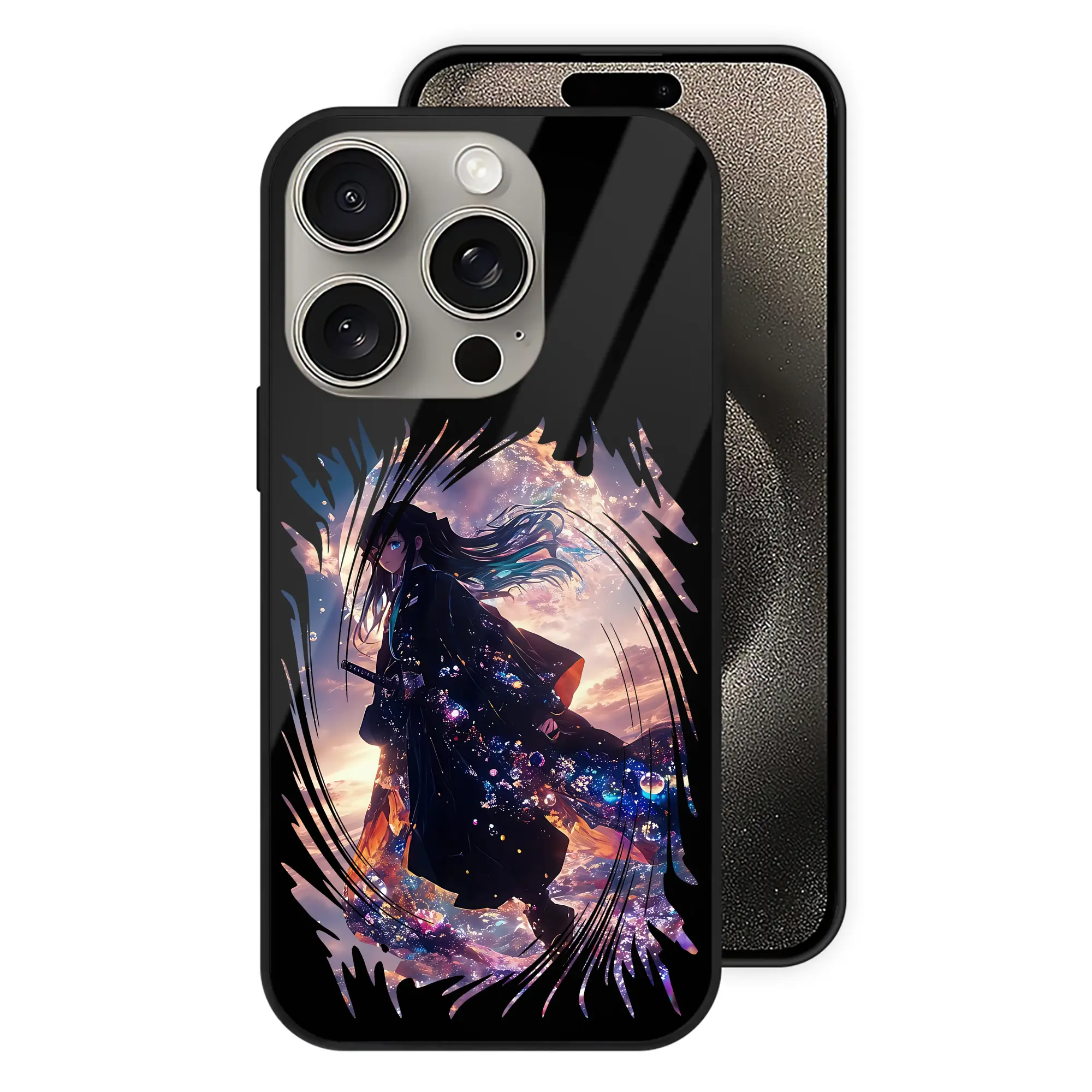 鬼滅の刃 グッズ,時透 無一郎 - IPhone15Pro対応 ・ スマホケース ・ 背面ガラス ・ TPU+強化ガラス ・ 耐衝撃 ・ 黄変防止 ・ ワイヤレス充電対応 ・ 3D立体ボタン