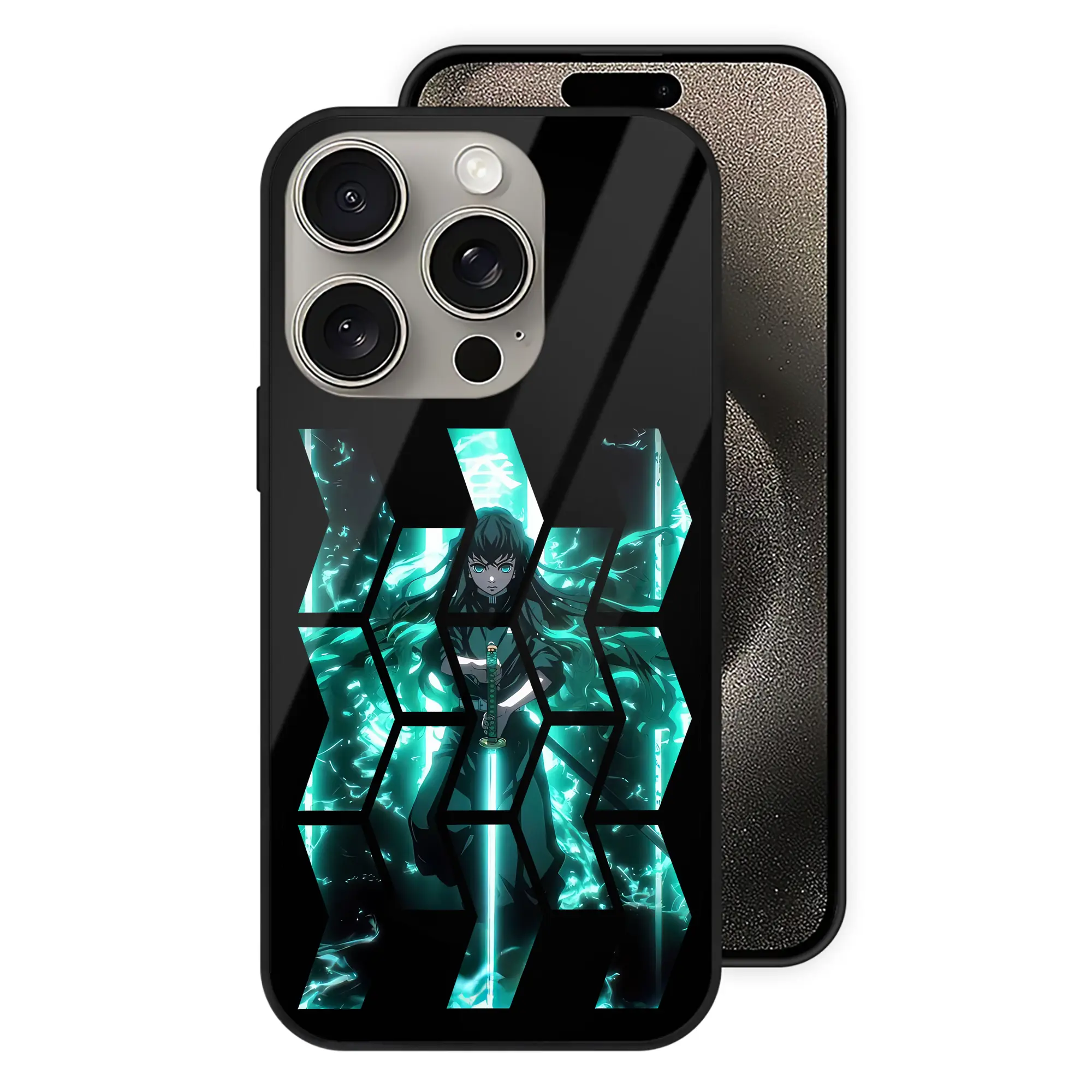 鬼滅の刃 グッズ,時透 無一郎 - IPhone15Pro対応 ・ スマホケース ・ 背面ガラス ・ TPU+強化ガラス ・ 耐衝撃 ・ 黄変防止 ・ ワイヤレス充電対応 ・ 3D立体ボタン