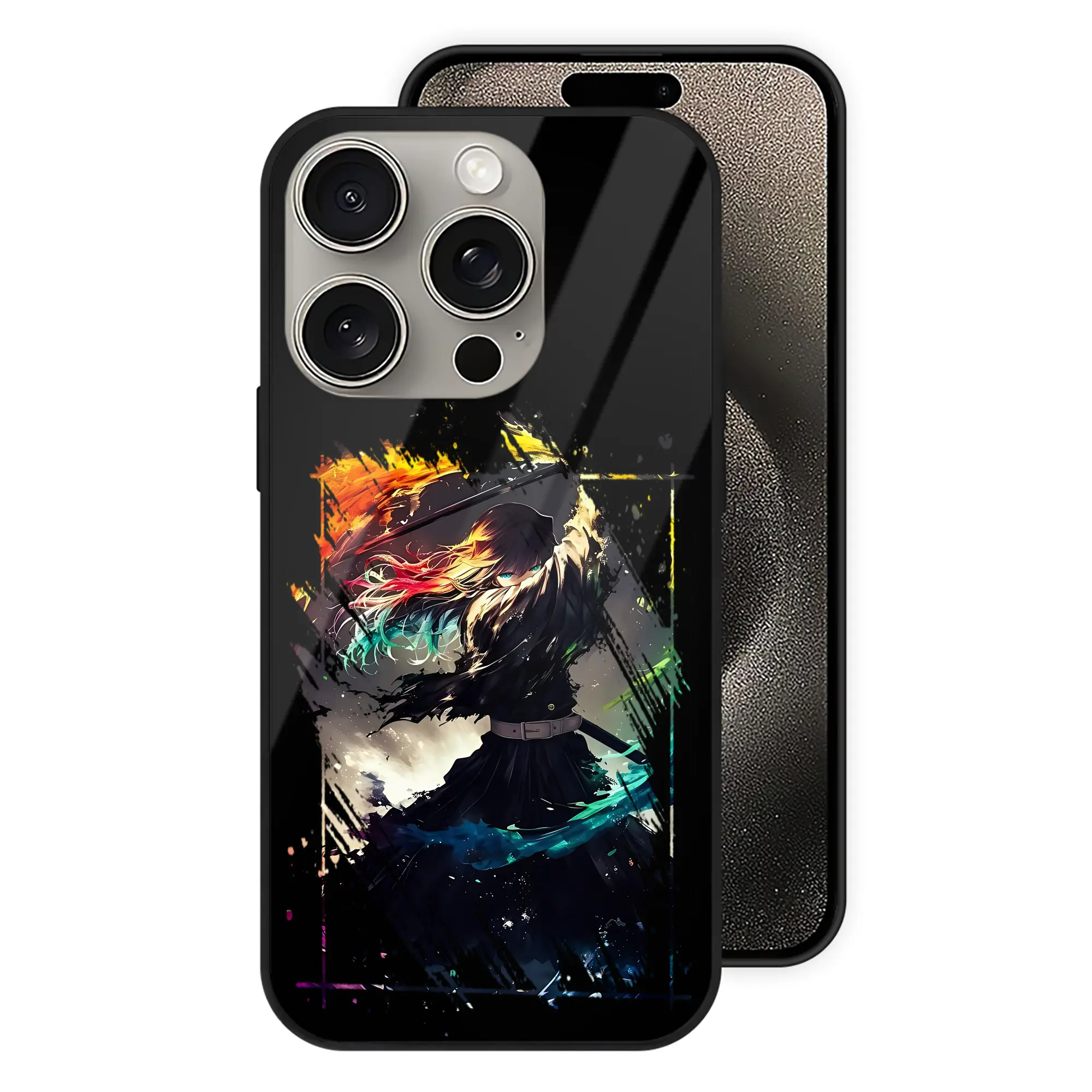 鬼滅の刃 グッズ,時透 無一郎 - IPhone15Pro対応 ・ スマホケース ・ 背面ガラス ・ TPU+強化ガラス ・ 耐衝撃 ・ 黄変防止 ・ ワイヤレス充電対応 ・ 3D立体ボタン