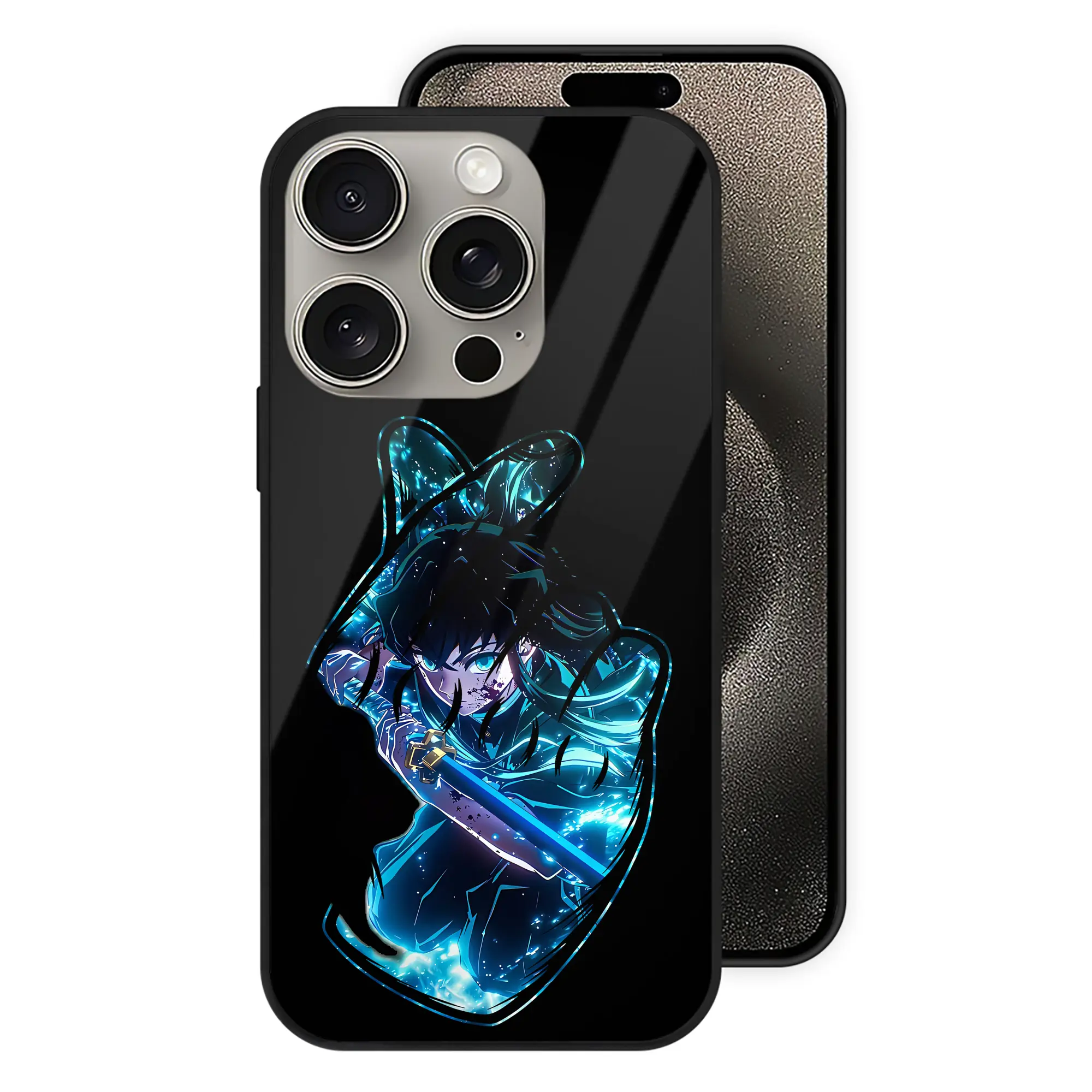 鬼滅の刃 グッズ,時透 無一郎 - IPhone15Pro対応 ・ スマホケース ・ 背面ガラス ・ TPU+強化ガラス ・ 耐衝撃 ・ 黄変防止 ・ ワイヤレス充電対応 ・ 3D立体ボタン