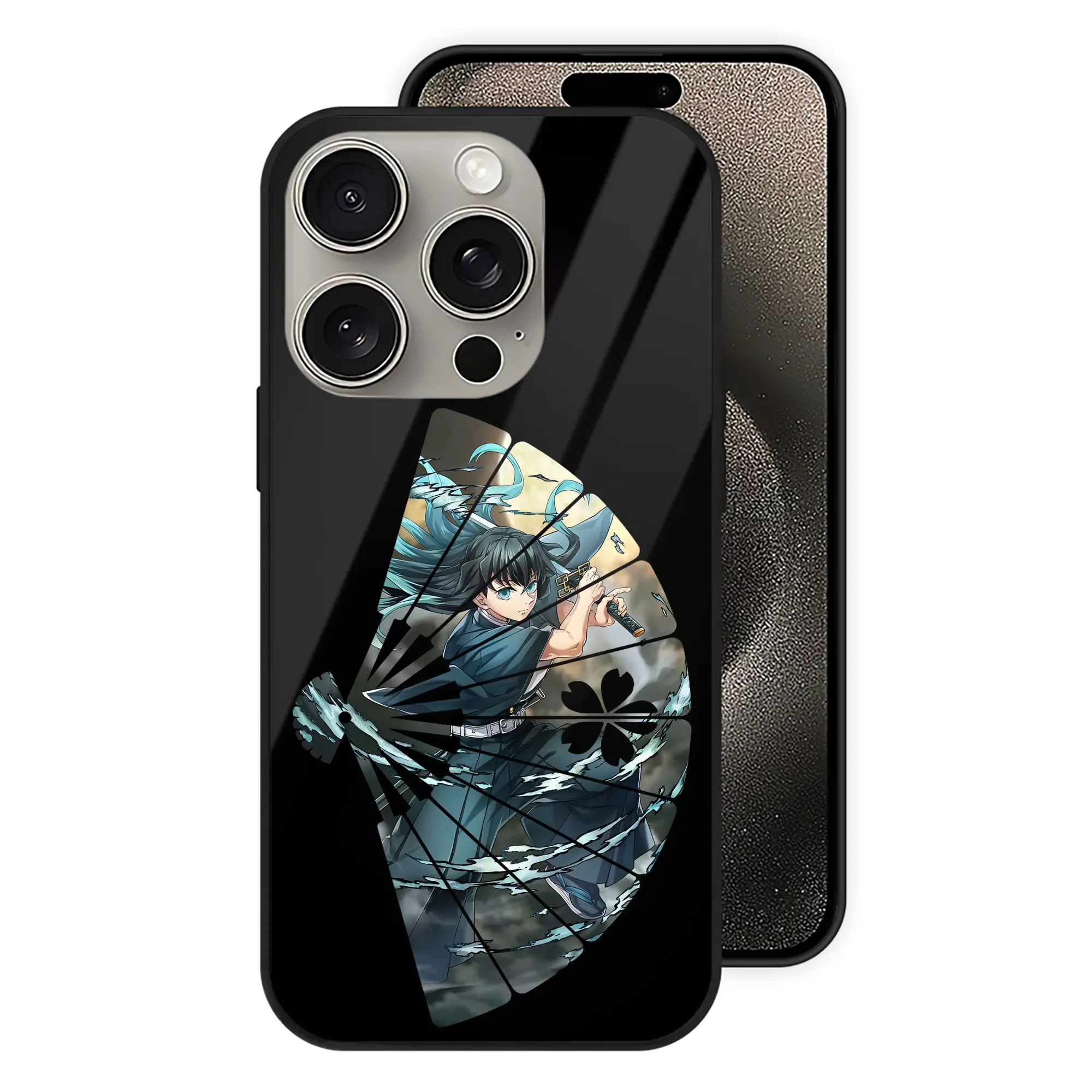 鬼滅の刃 グッズ,時透 無一郎 - IPhone15Pro対応 ・ スマホケース ・ 背面ガラス ・ TPU+強化ガラス ・ 耐衝撃 ・ 黄変防止 ・ ワイヤレス充電対応 ・ 3D立体ボタン
