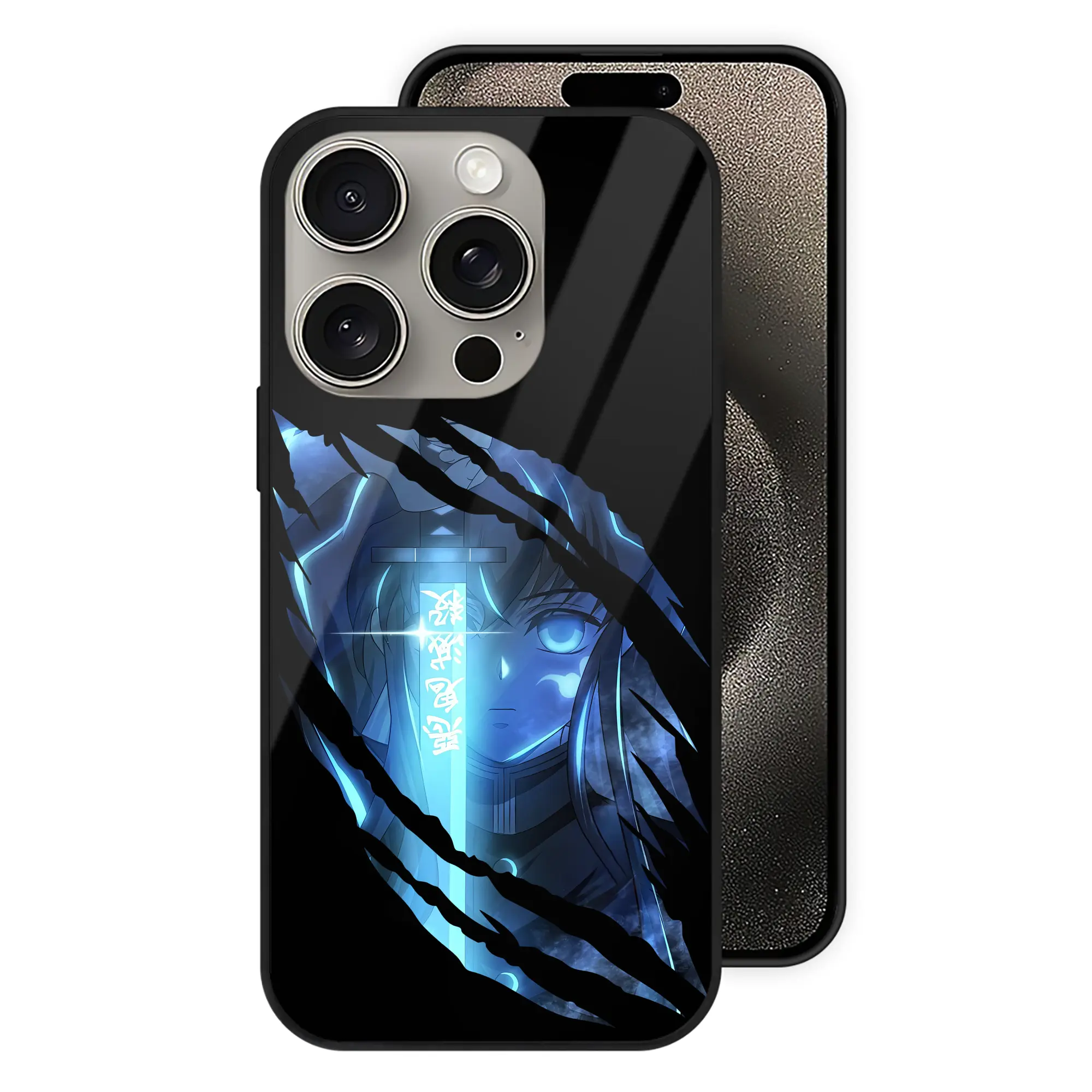 鬼滅の刃 グッズ,時透 無一郎 - IPhone15Pro対応 ・ スマホケース ・ 背面ガラス ・ TPU+強化ガラス ・ 耐衝撃 ・ 黄変防止 ・ ワイヤレス充電対応 ・ 3D立体ボタン