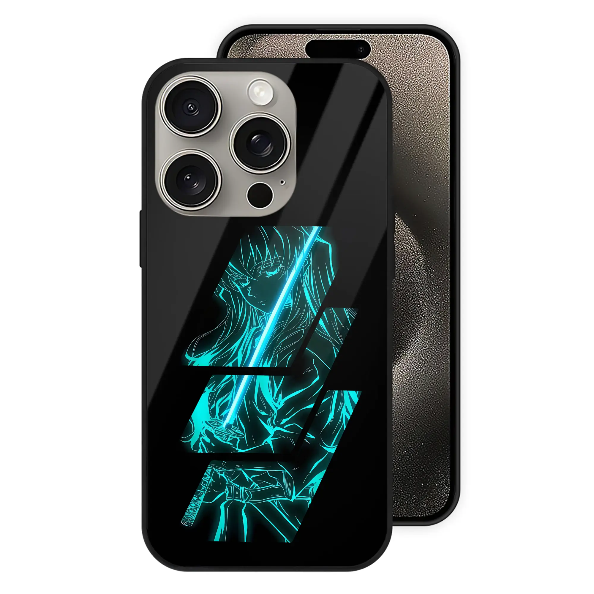 鬼滅の刃 グッズ,時透 無一郎 - IPhone15Pro対応 ・ スマホケース ・ 背面ガラス ・ TPU+強化ガラス ・ 耐衝撃 ・ 黄変防止 ・ ワイヤレス充電対応 ・ 3D立体ボタン