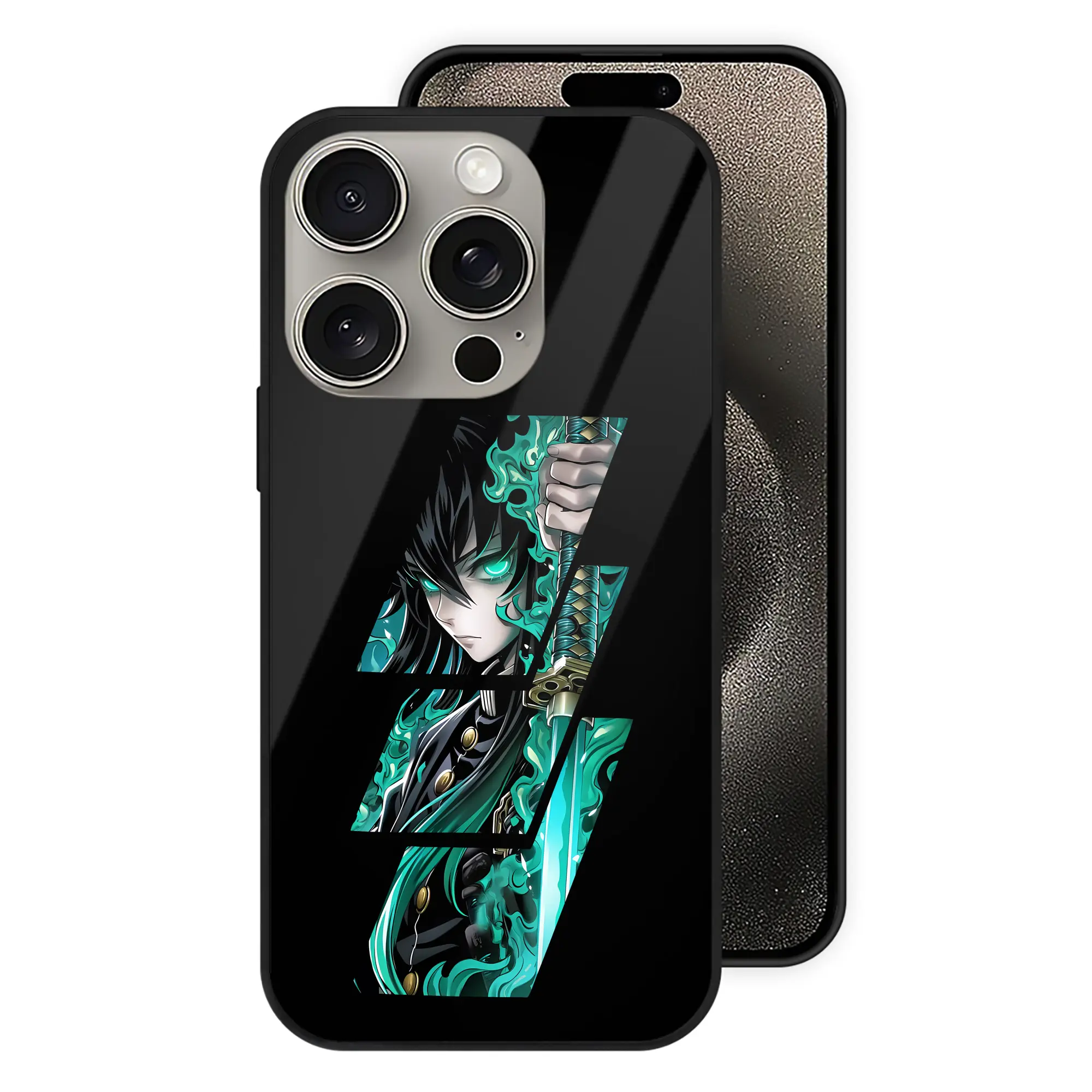 鬼滅の刃 グッズ,時透 無一郎 - IPhone15Pro対応 ・ スマホケース ・ 背面ガラス ・ TPU+強化ガラス ・ 耐衝撃 ・ 黄変防止 ・ ワイヤレス充電対応 ・ 3D立体ボタン
