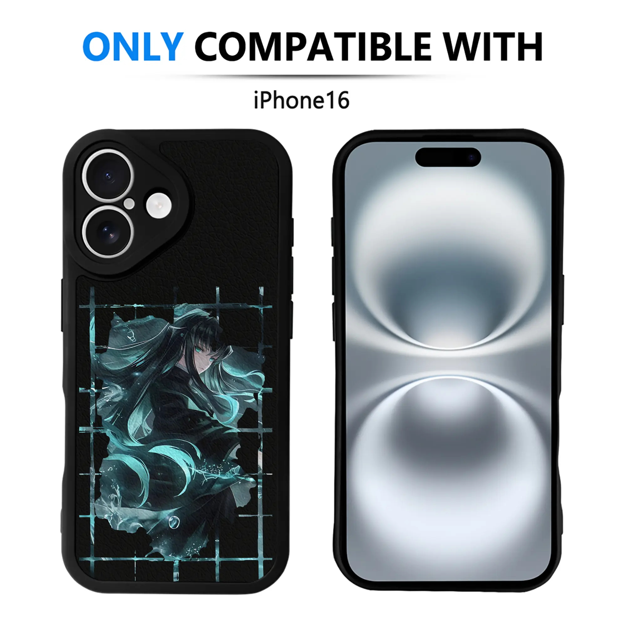 鬼滅の刃 グッズ,時透 無一郎 - IPhone 16シリーズ対応 ・ シリコンスマホケース ・ レザー調 ・ 高精度フィット ・ 耐衝撃 ・ ワイヤレス充電対応 ・ 精密カット