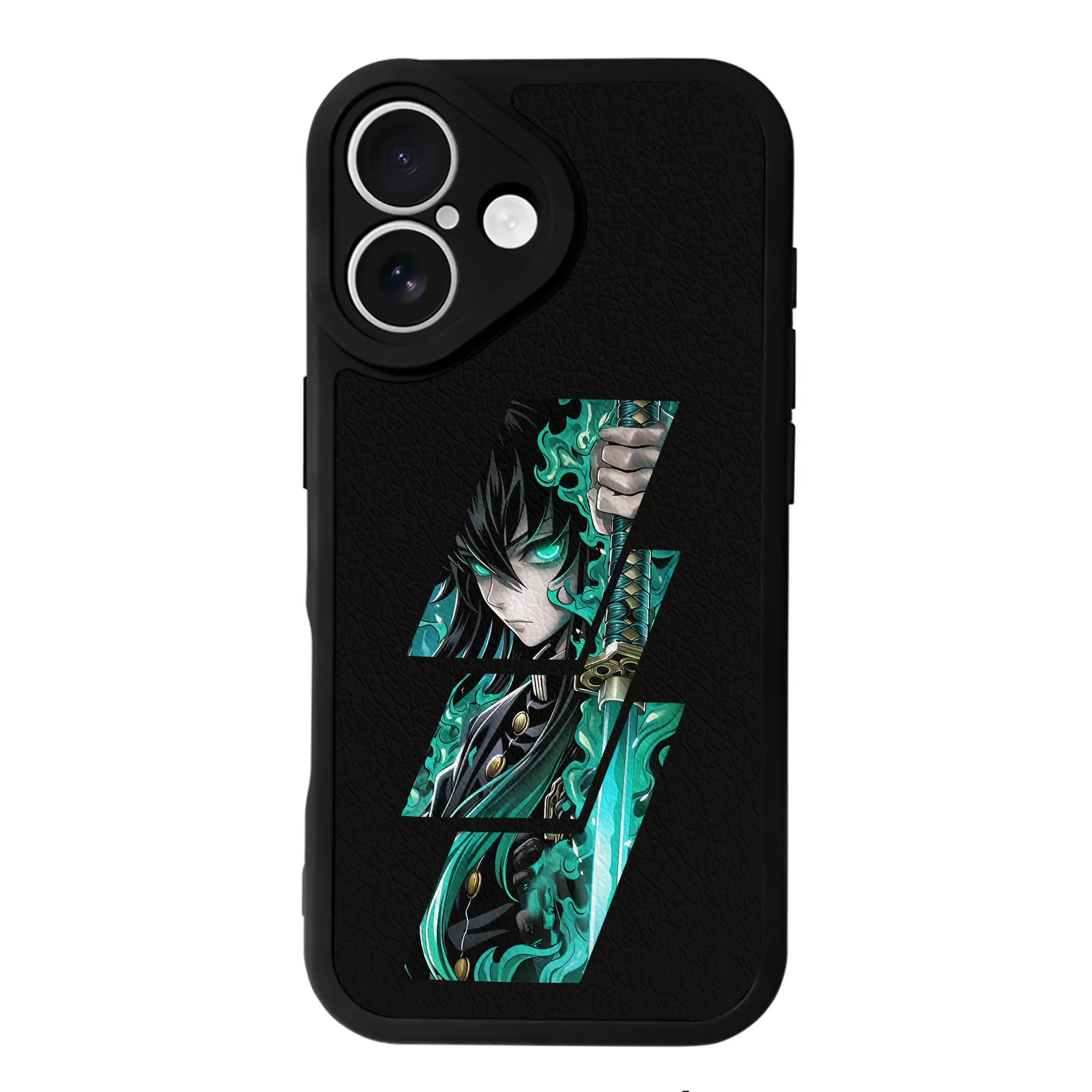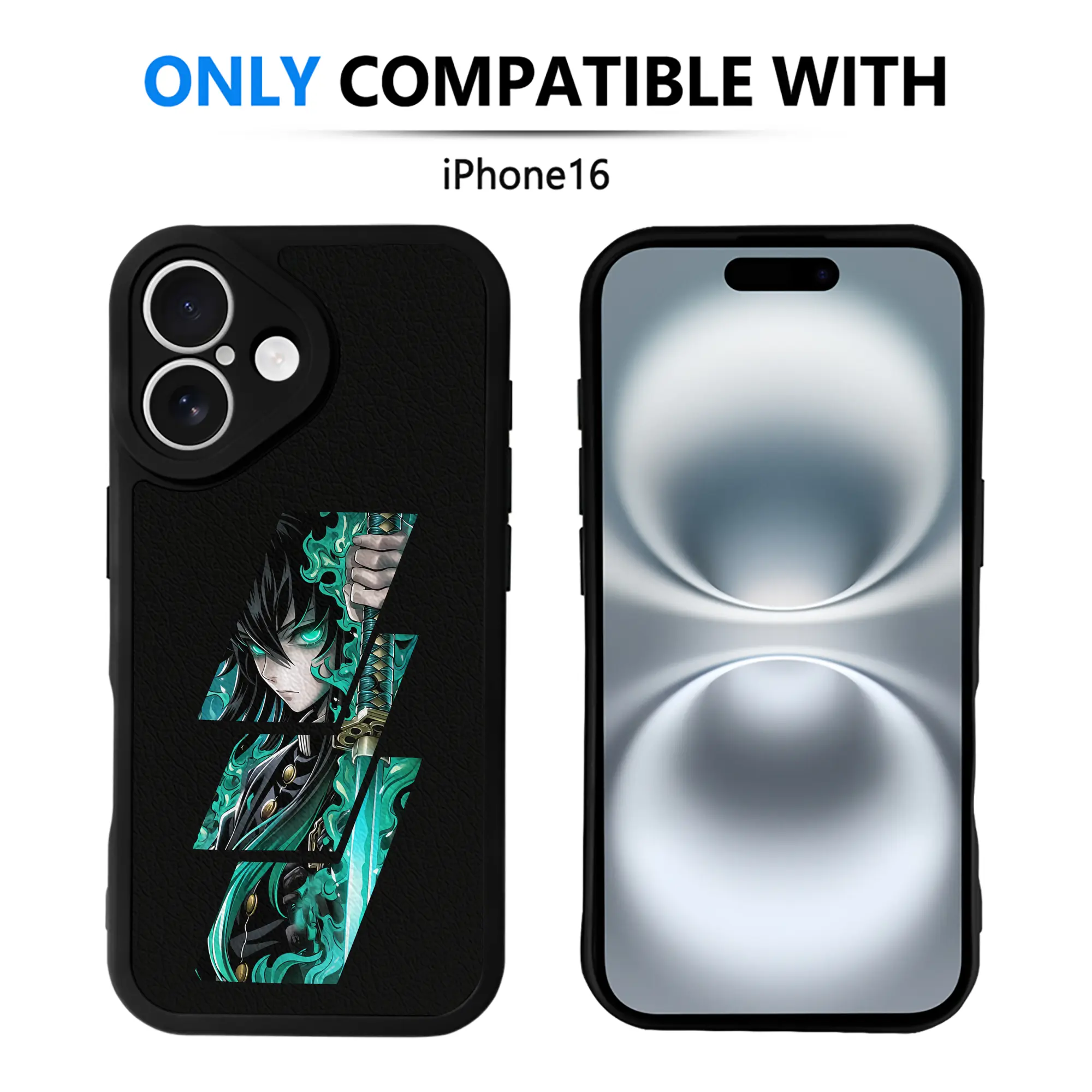 鬼滅の刃 グッズ,時透 無一郎 - IPhone 16シリーズ対応 ・ シリコンスマホケース ・ レザー調 ・ 高精度フィット ・ 耐衝撃 ・ ワイヤレス充電対応 ・ 精密カット