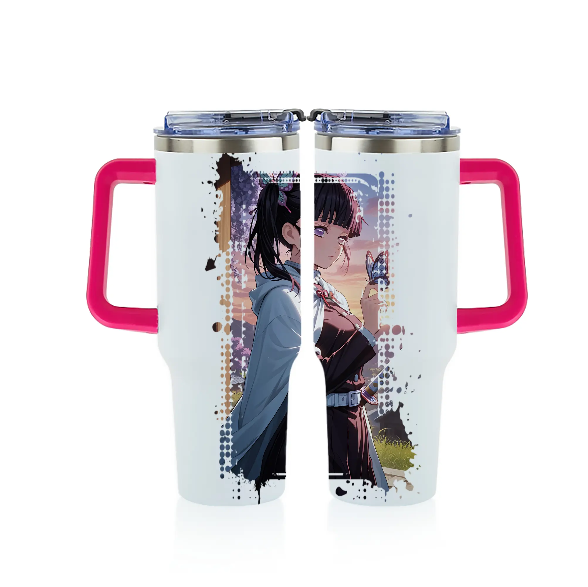 鬼滅の刃 グッズ,栗花落 カナヲ - 1200mL フルプリント車用タンブラー ・ 304ステンレス 内側 ・ 201ステンレス 外側 ・ 保温 保冷 ・ 通勤 ドライブ アウトドア用