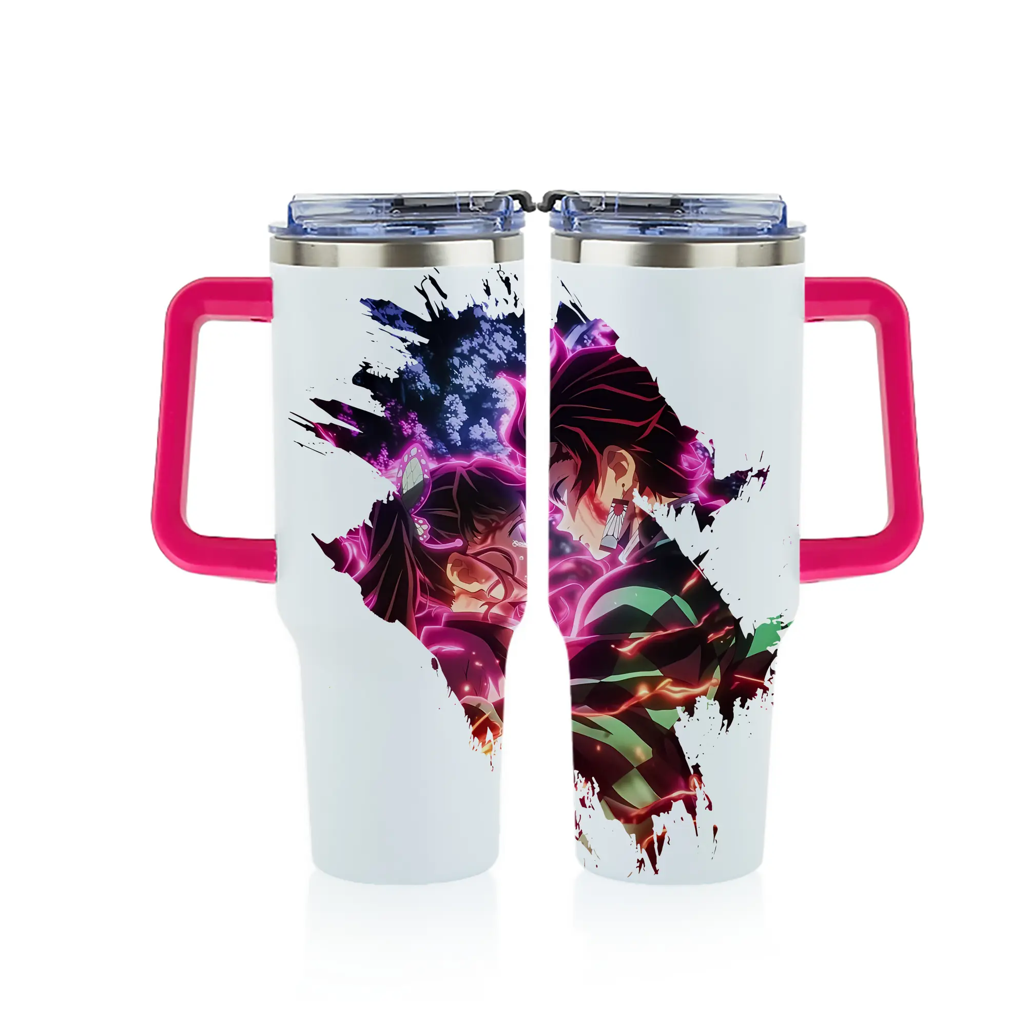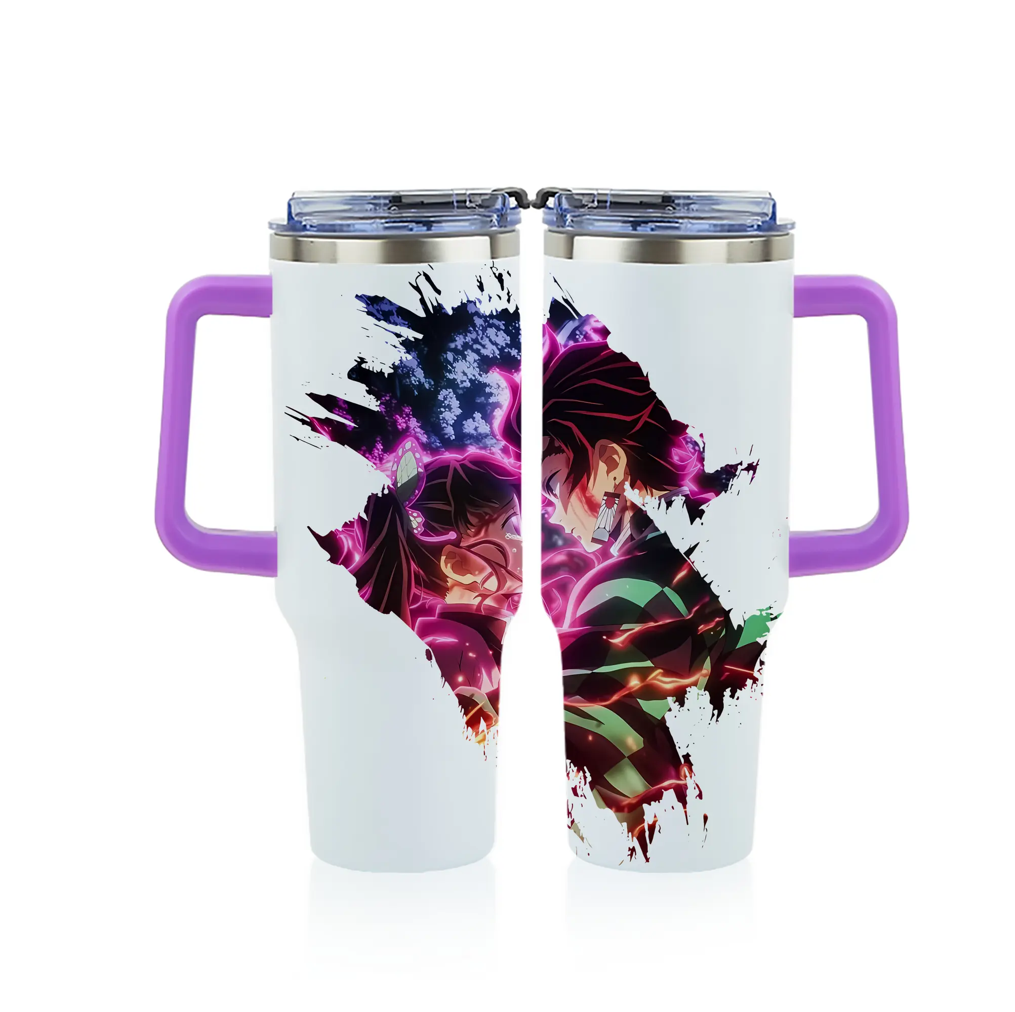 鬼滅の刃 グッズ,栗花落 カナヲ - 1200mL フルプリント車用タンブラー ・ 304ステンレス 内側 ・ 201ステンレス 外側 ・ 保温 保冷 ・ 通勤 ドライブ アウトドア用