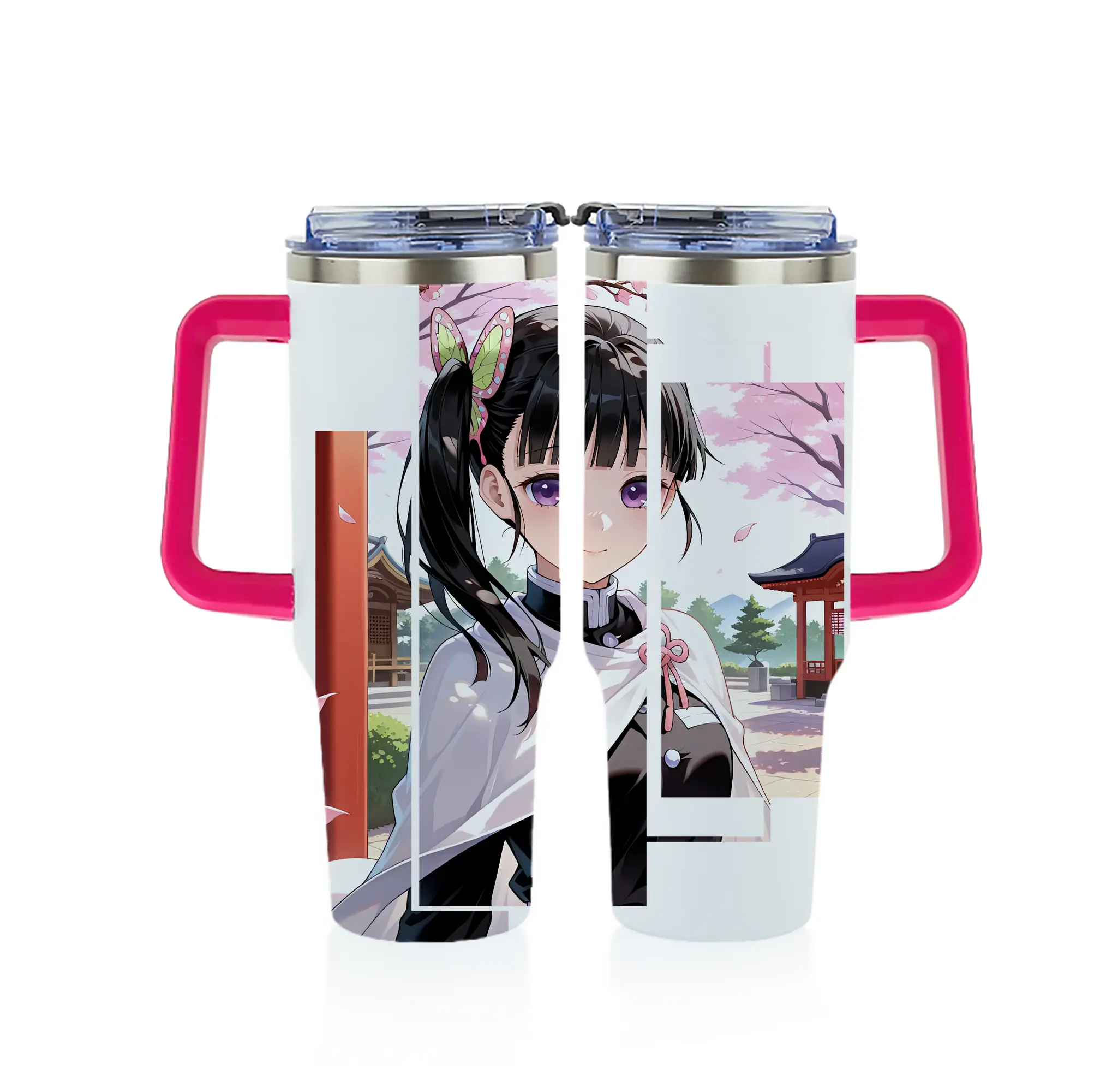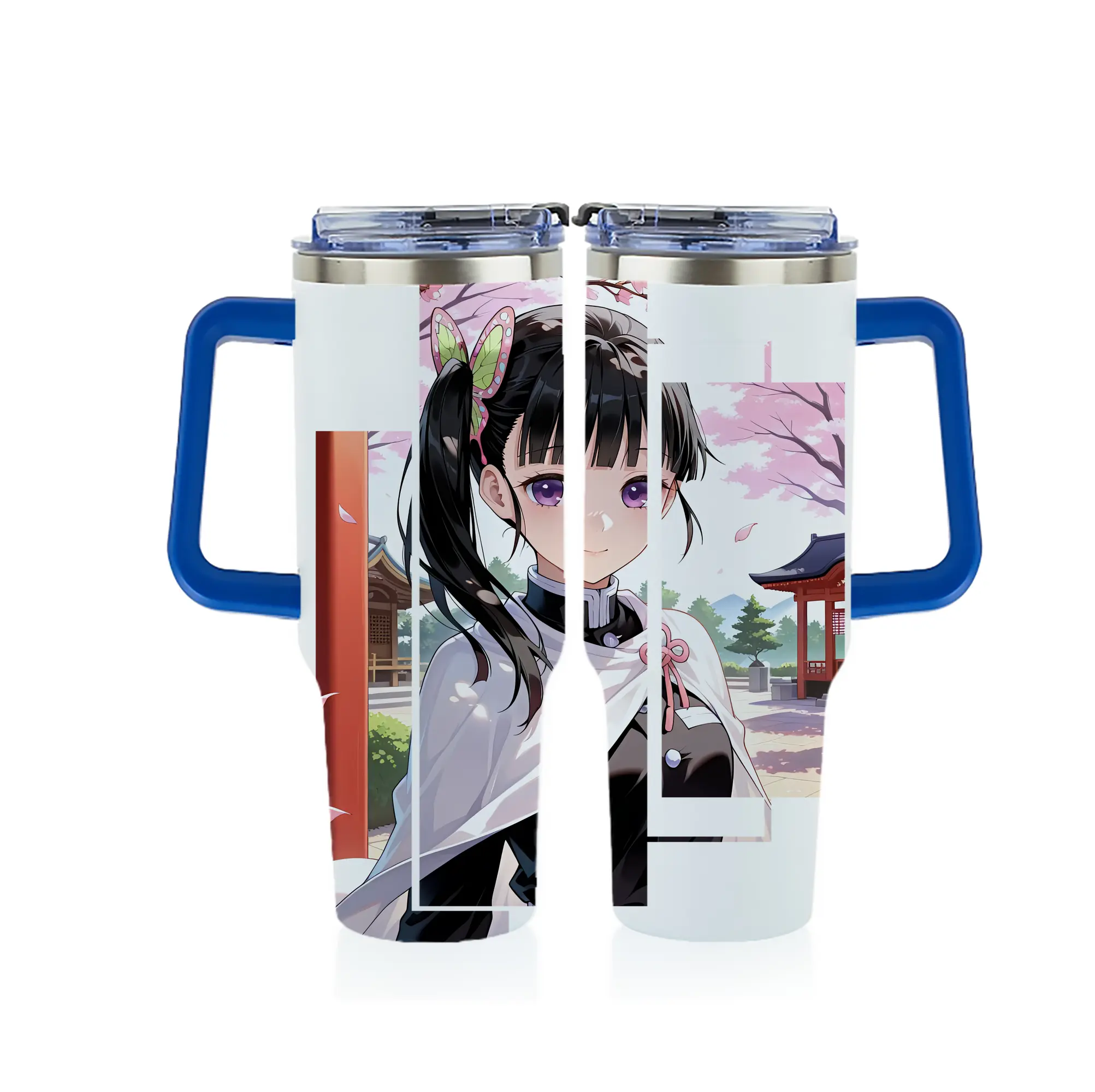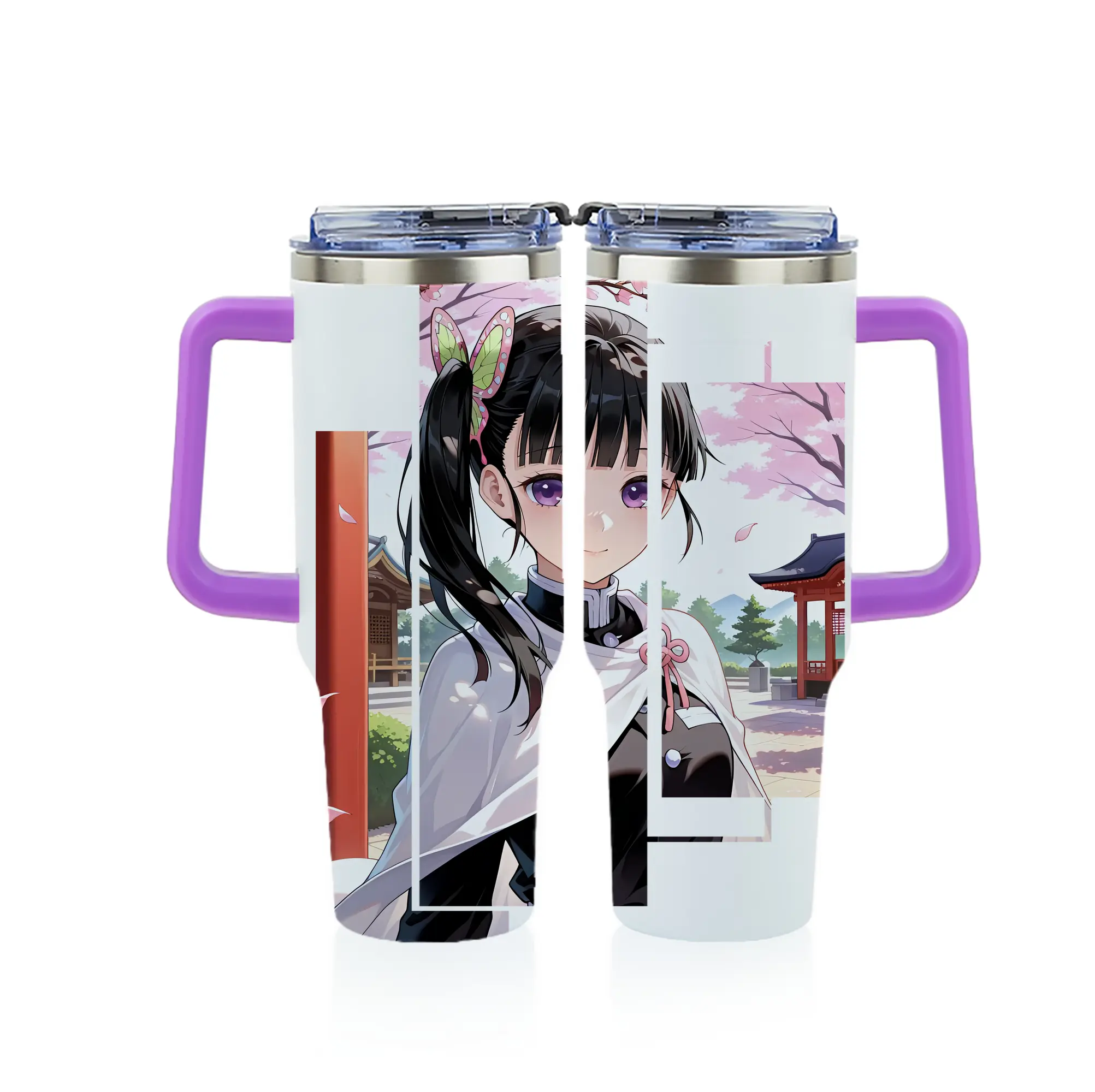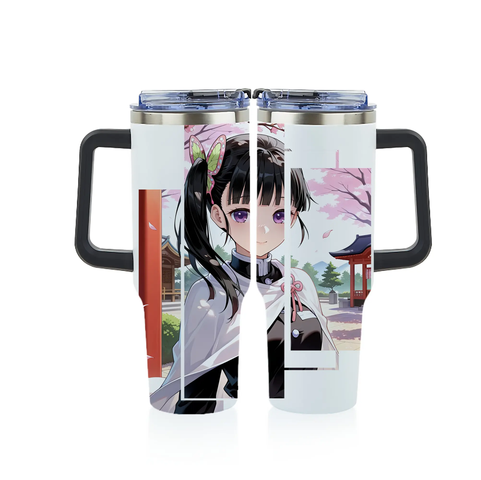 鬼滅の刃 グッズ,栗花落 カナヲ - 1200mL フルプリント車用タンブラー ・ 304ステンレス 内側 ・ 201ステンレス 外側 ・ 保温 保冷 ・ 通勤 ドライブ アウトドア用