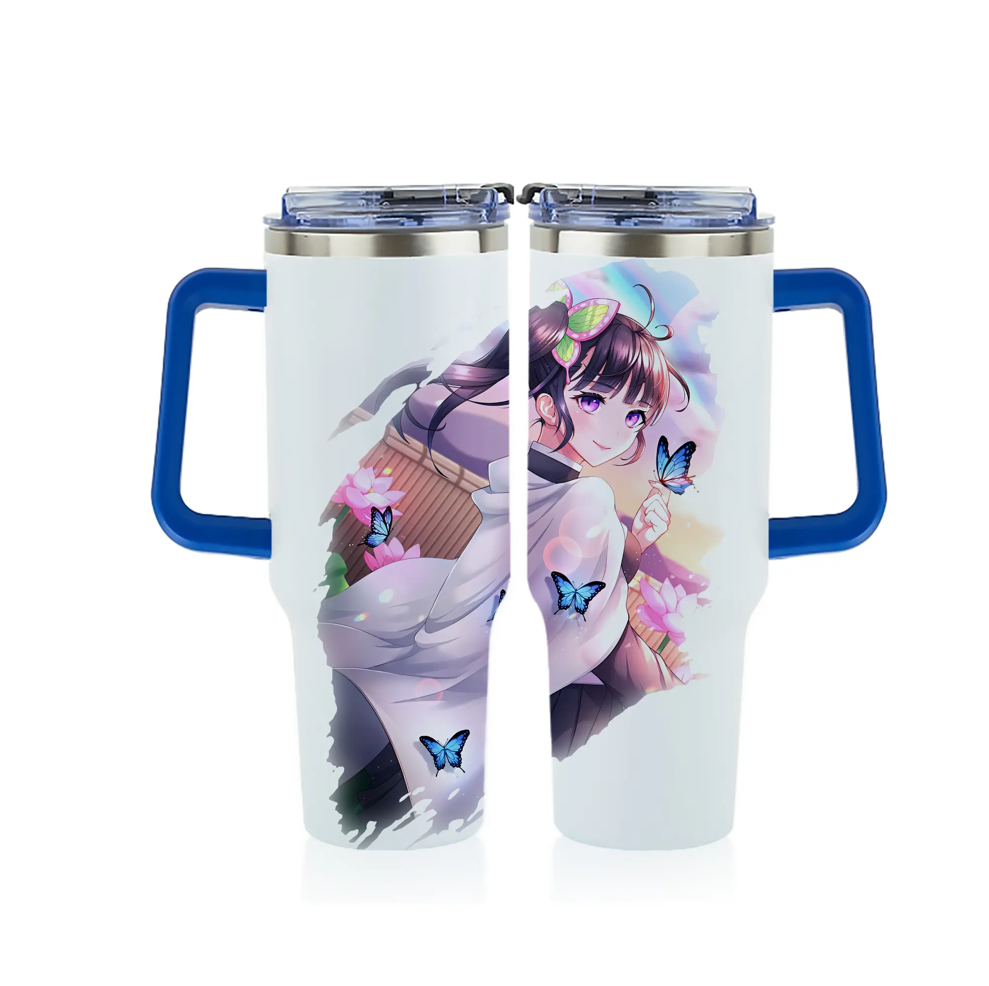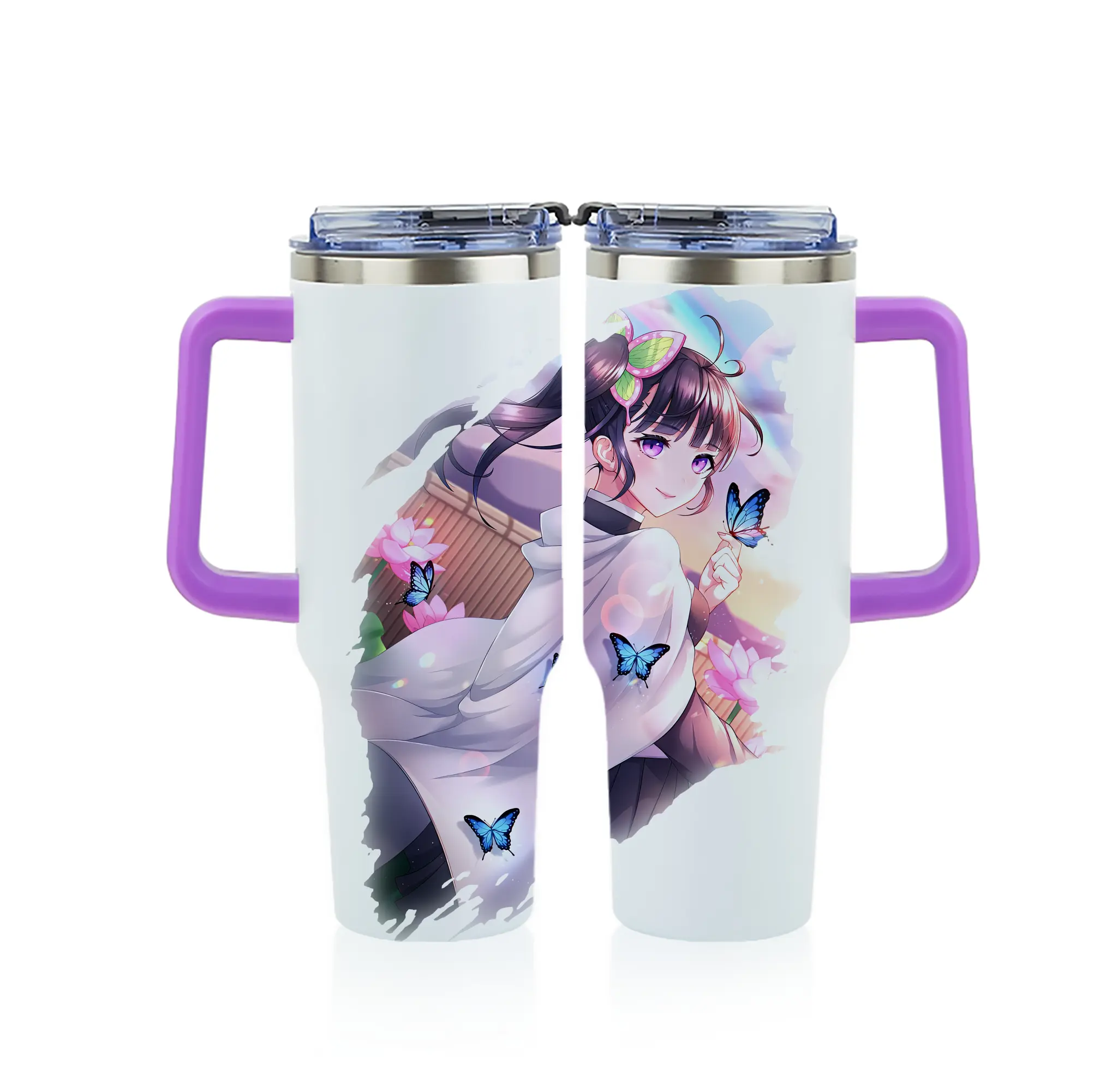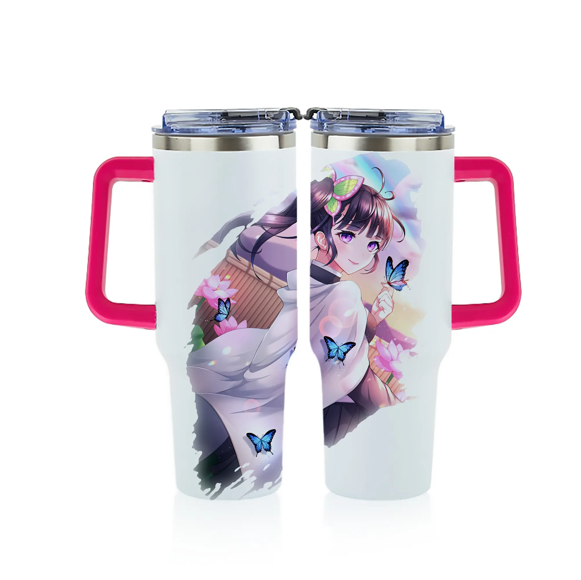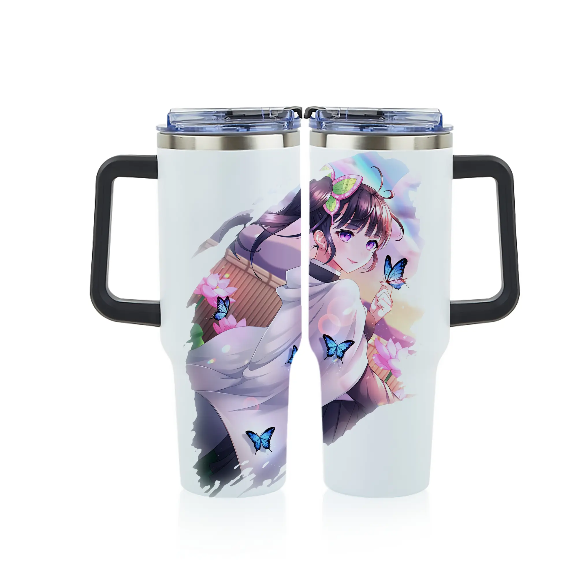 鬼滅の刃 グッズ,栗花落 カナヲ - 1200mL フルプリント車用タンブラー ・ 304ステンレス 内側 ・ 201ステンレス 外側 ・ 保温 保冷 ・ 通勤 ドライブ アウトドア用