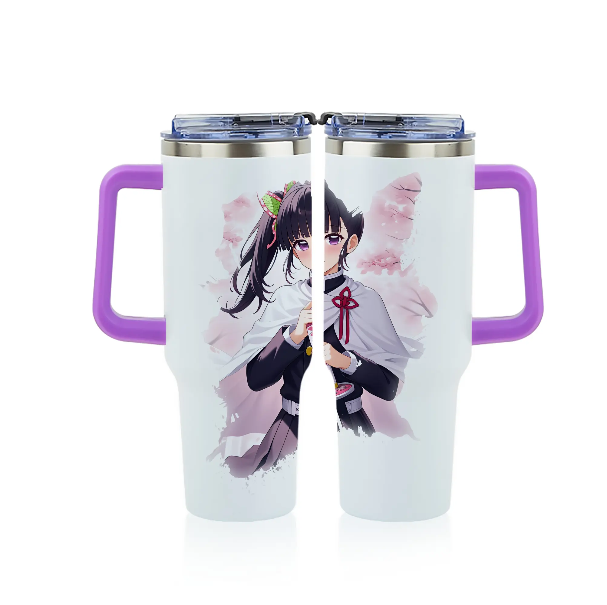 鬼滅の刃 グッズ,栗花落 カナヲ - 1200mL フルプリント車用タンブラー ・ 304ステンレス 内側 ・ 201ステンレス 外側 ・ 保温 保冷 ・ 通勤 ドライブ アウトドア用