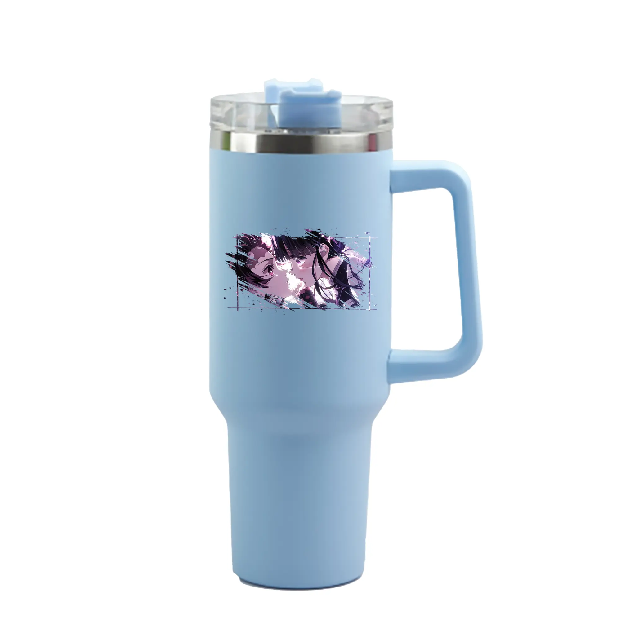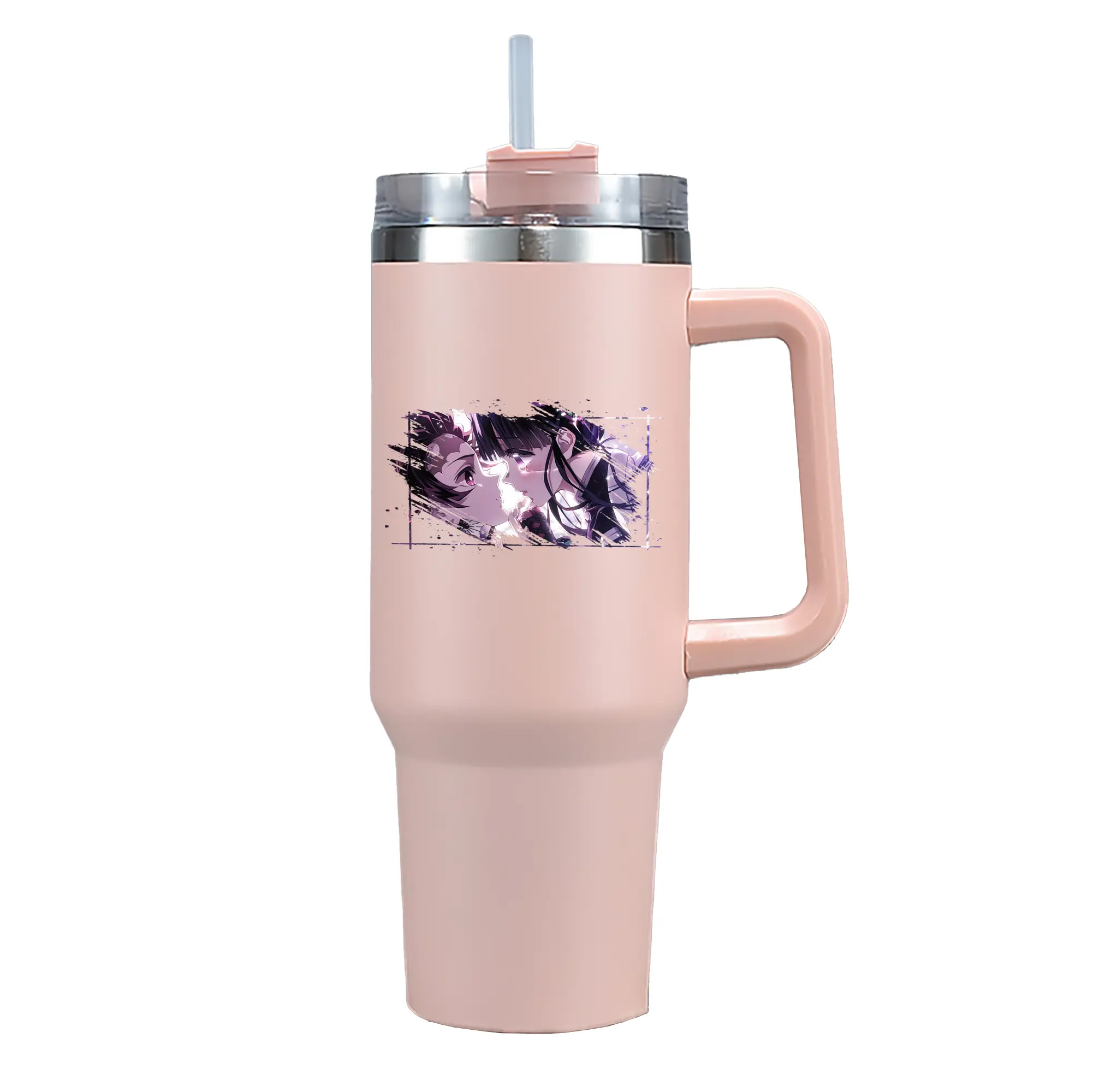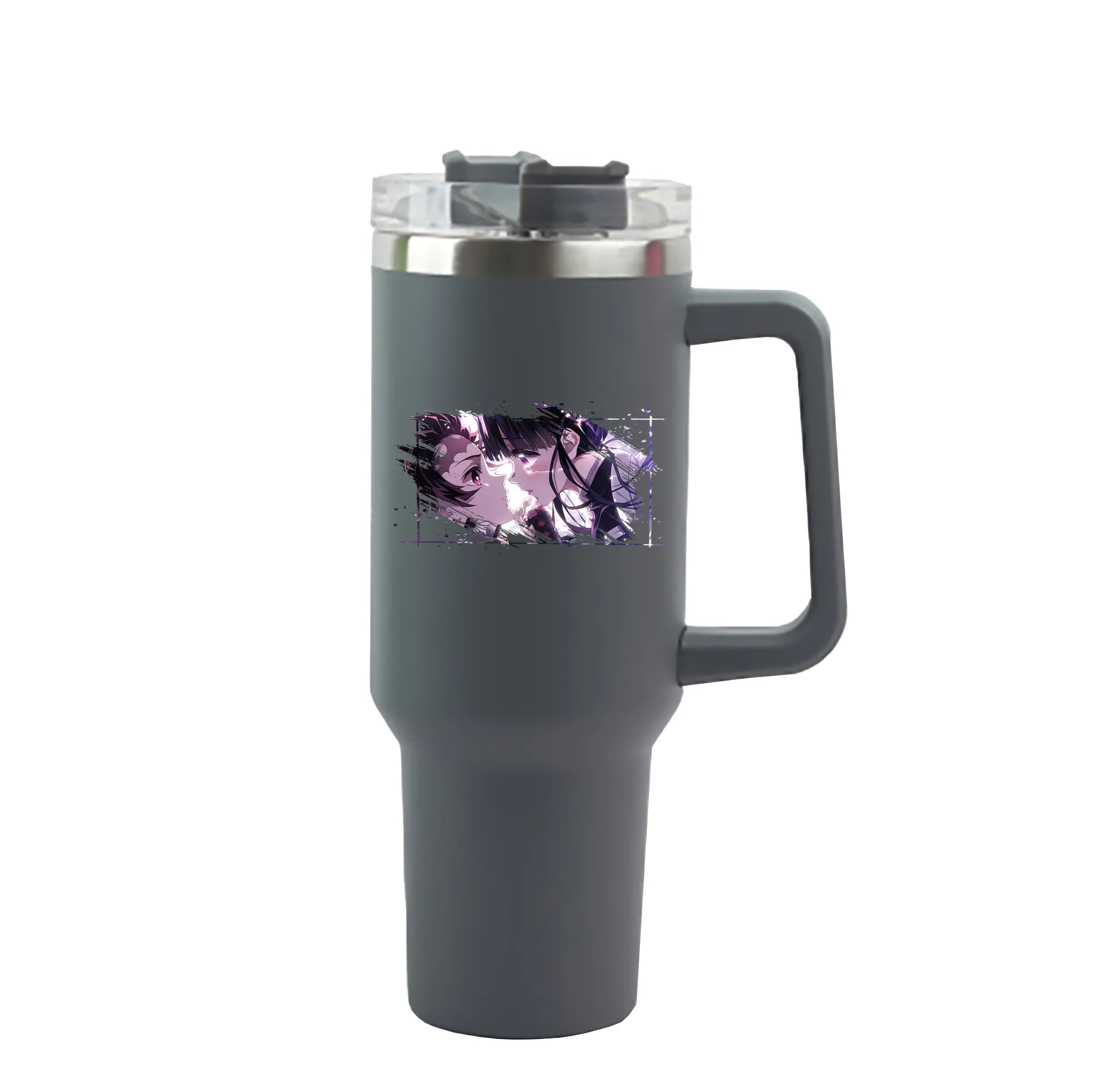 鬼滅の刃 グッズ,栗花落 カナヲ - 1200mL 車用タンブラー ・ クリスタルステッカー ・ 304ステンレス 内側 ・ 201ステンレス 外側 ・ 保温 保冷 ・ ハンドル&ストロー付き ・ 通勤 ドライブ アウトドア用