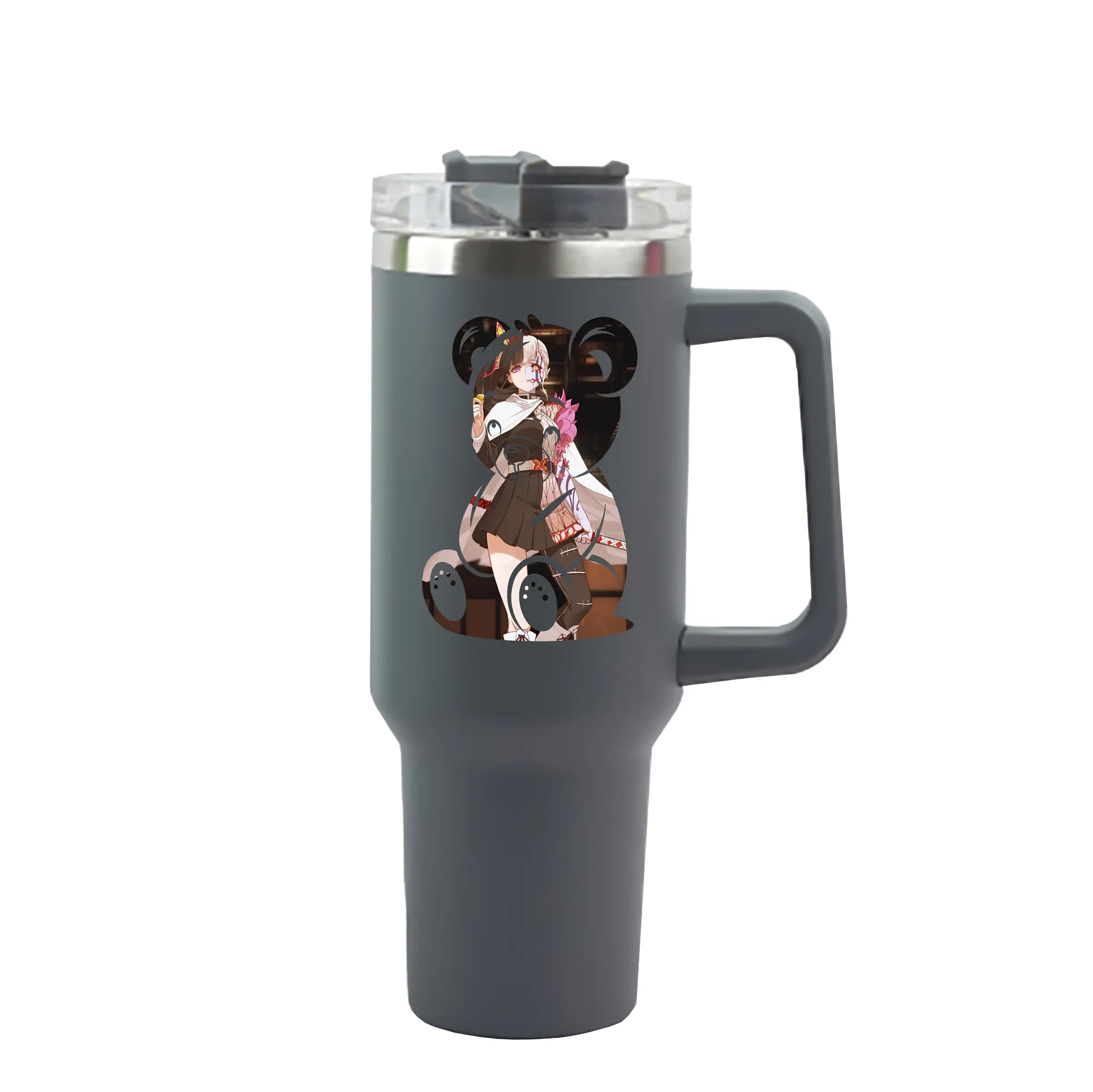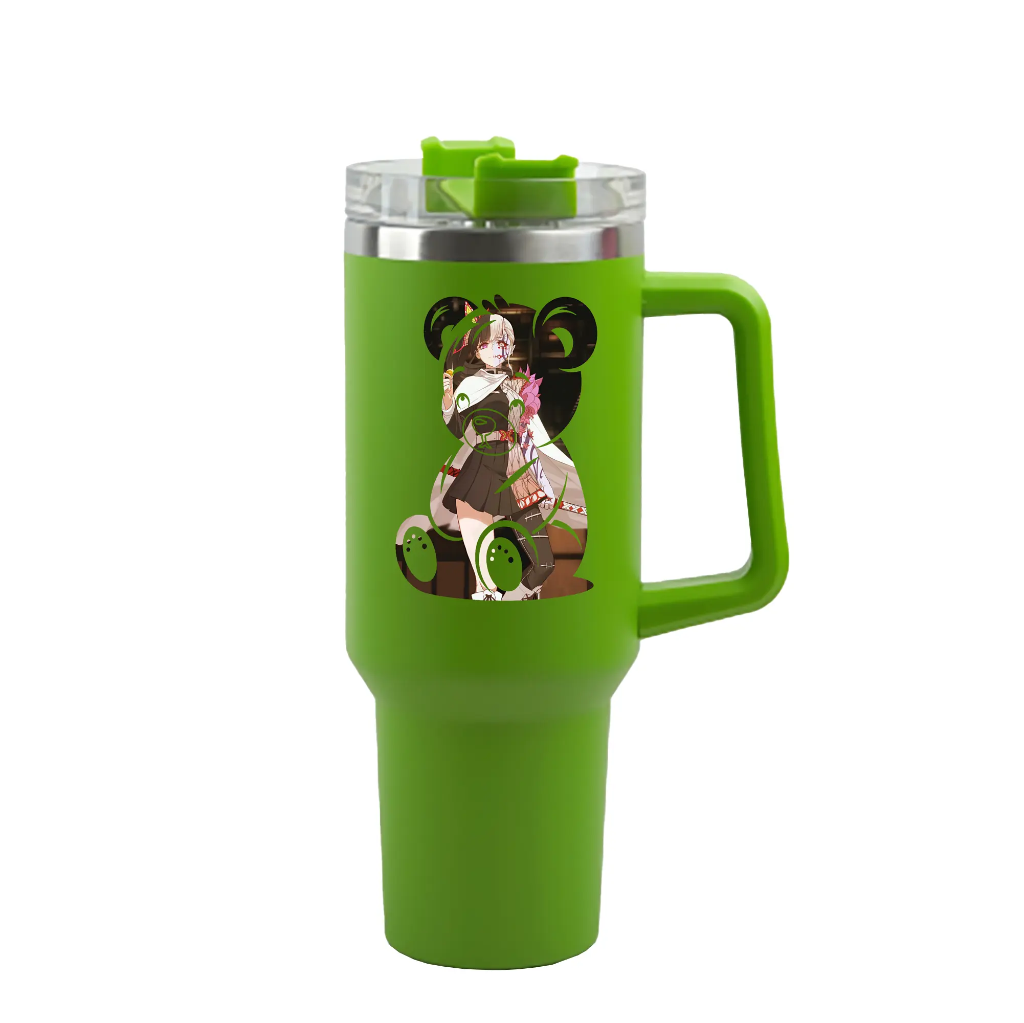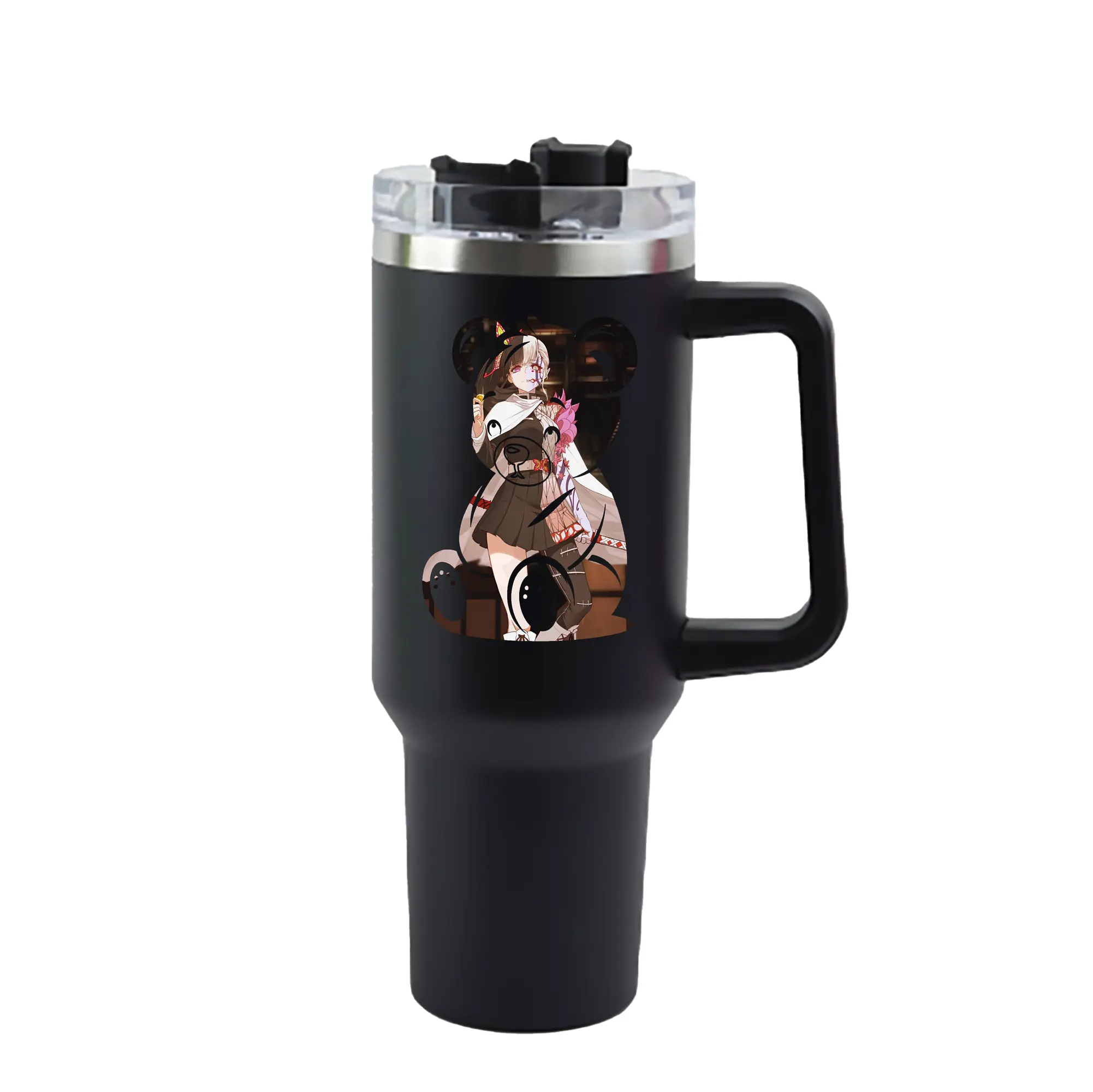 鬼滅の刃 グッズ,栗花落 カナヲ - 1200mL 車用タンブラー ・ クリスタルステッカー ・ 304ステンレス 内側 ・ 201ステンレス 外側 ・ 保温 保冷 ・ ハンドル&ストロー付き ・ 通勤 ドライブ アウトドア用