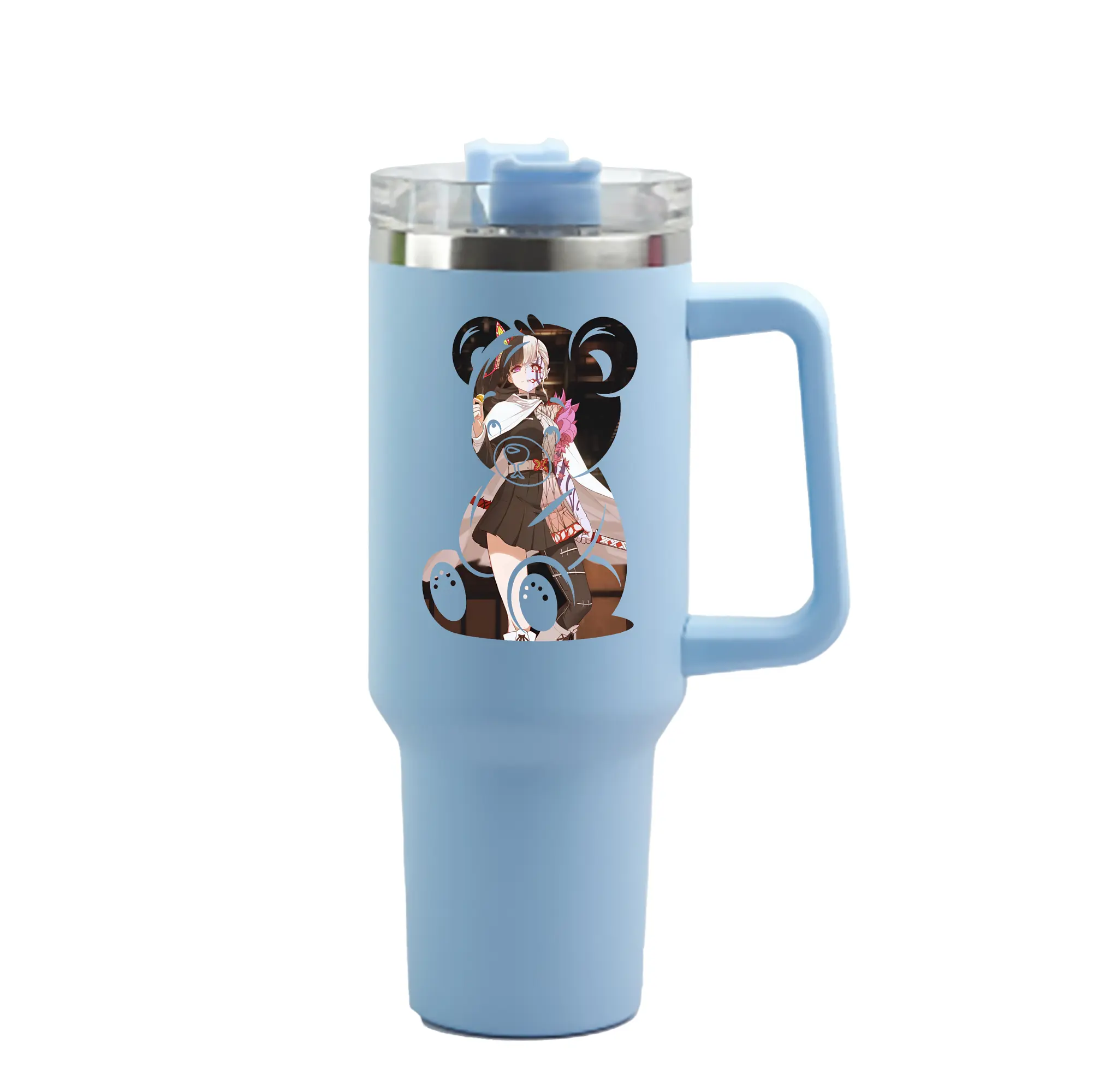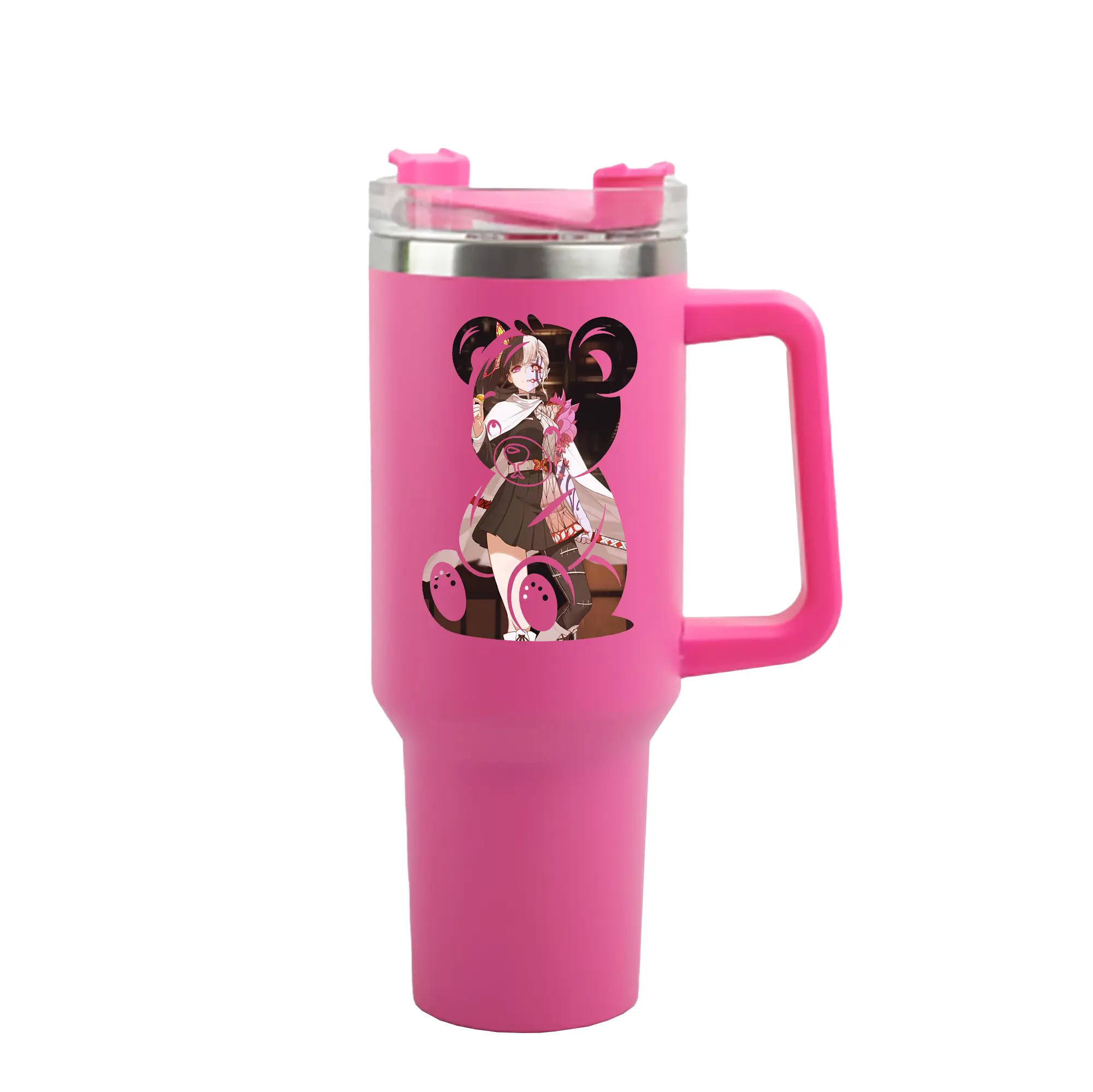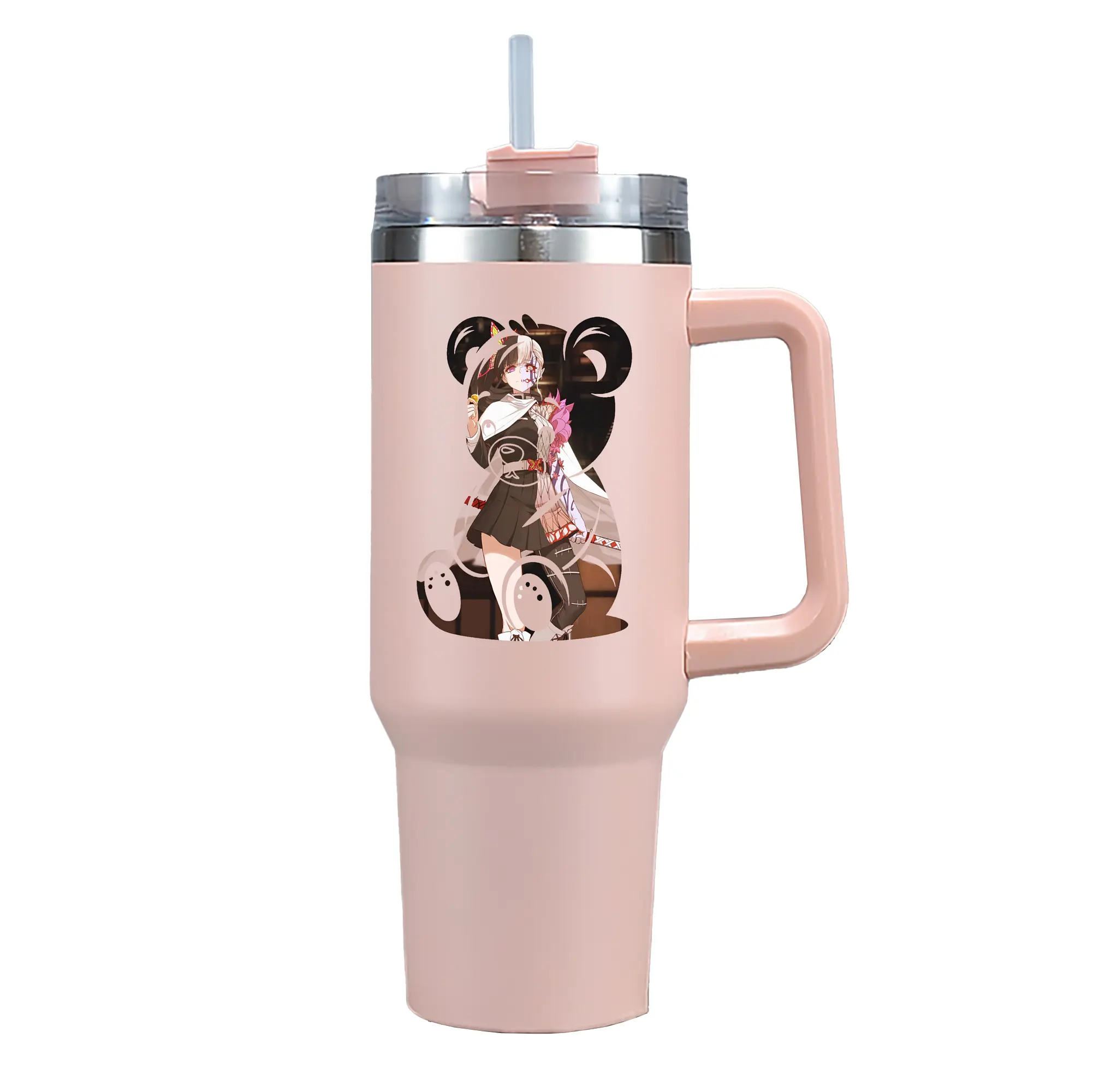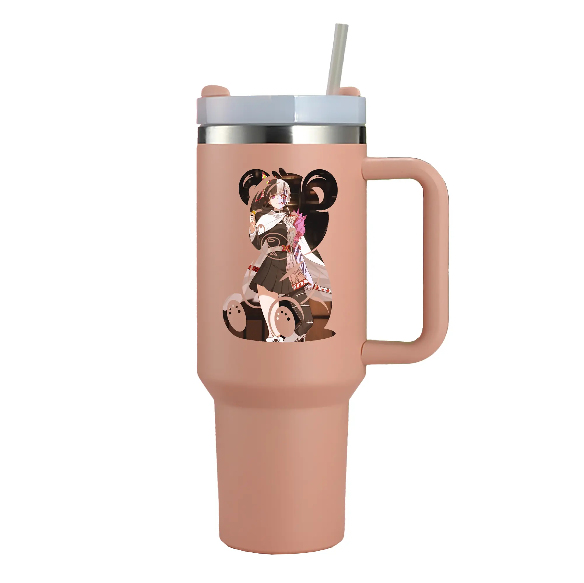 鬼滅の刃 グッズ,栗花落 カナヲ - 1200mL 車用タンブラー ・ クリスタルステッカー ・ 304ステンレス 内側 ・ 201ステンレス 外側 ・ 保温 保冷 ・ ハンドル&ストロー付き ・ 通勤 ドライブ アウトドア用
