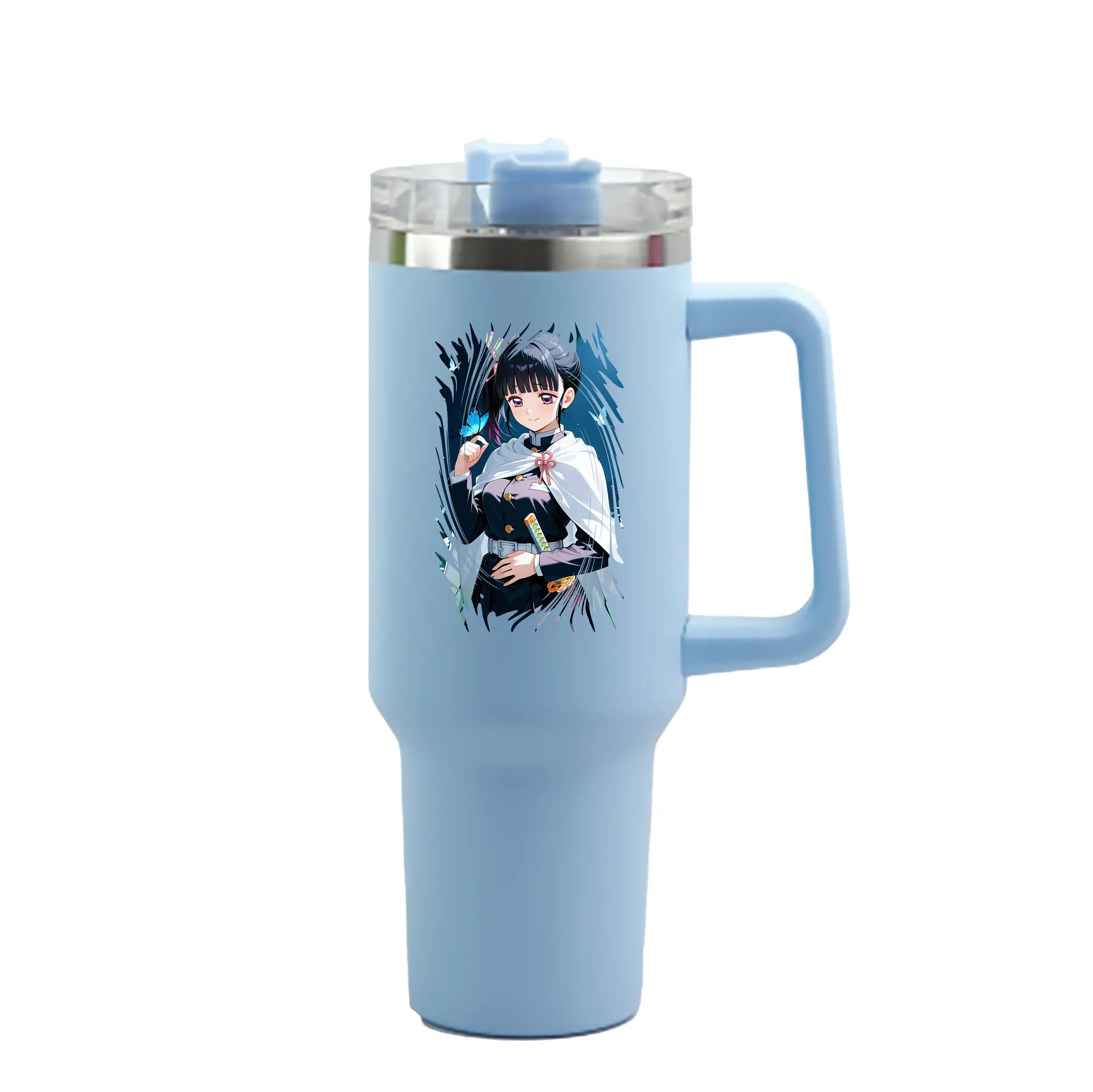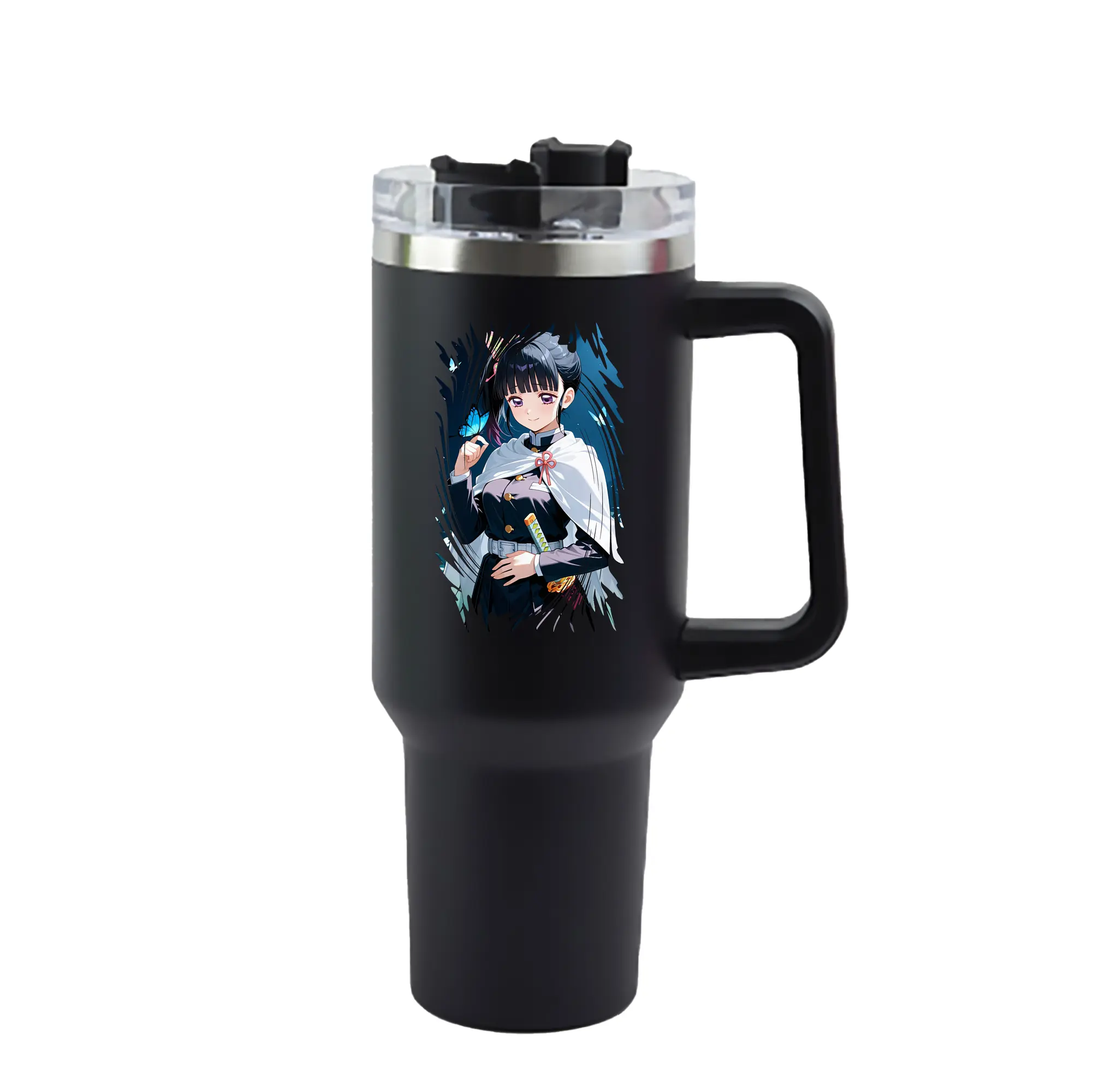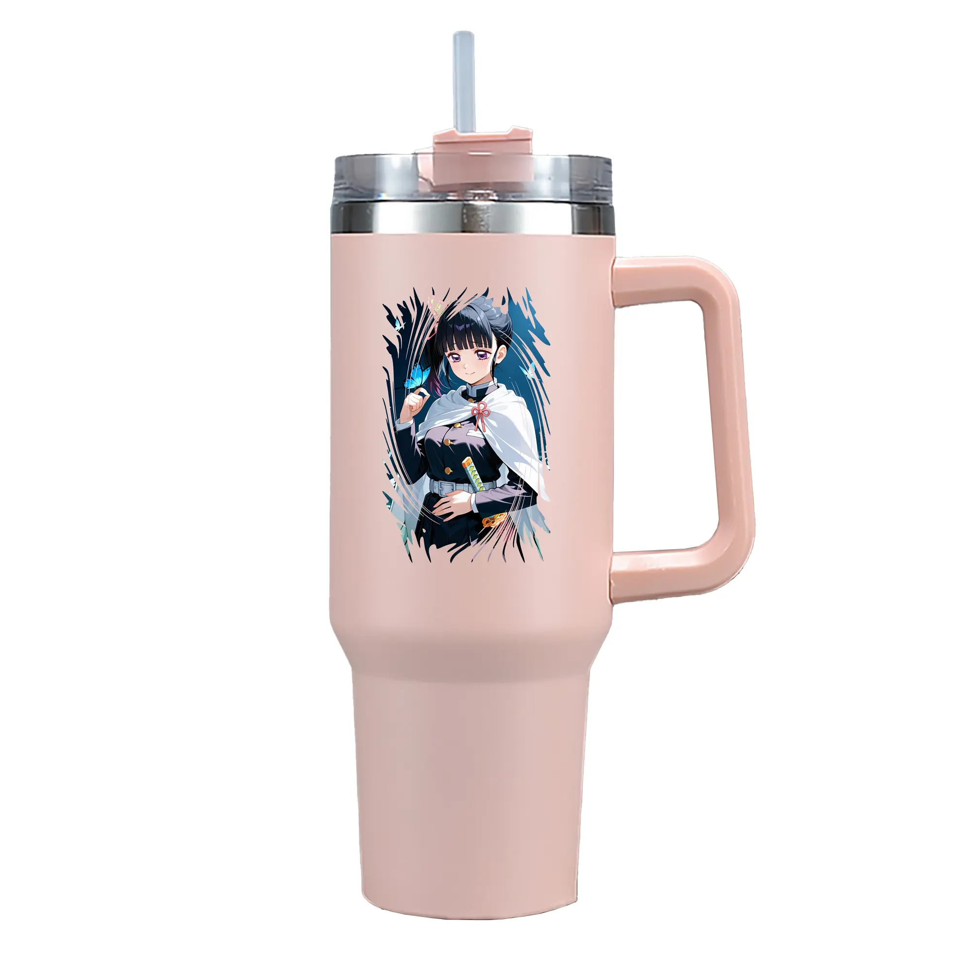 鬼滅の刃 グッズ,栗花落 カナヲ - 1200mL 車用タンブラー ・ クリスタルステッカー ・ 304ステンレス 内側 ・ 201ステンレス 外側 ・ 保温 保冷 ・ ハンドル&ストロー付き ・ 通勤 ドライブ アウトドア用