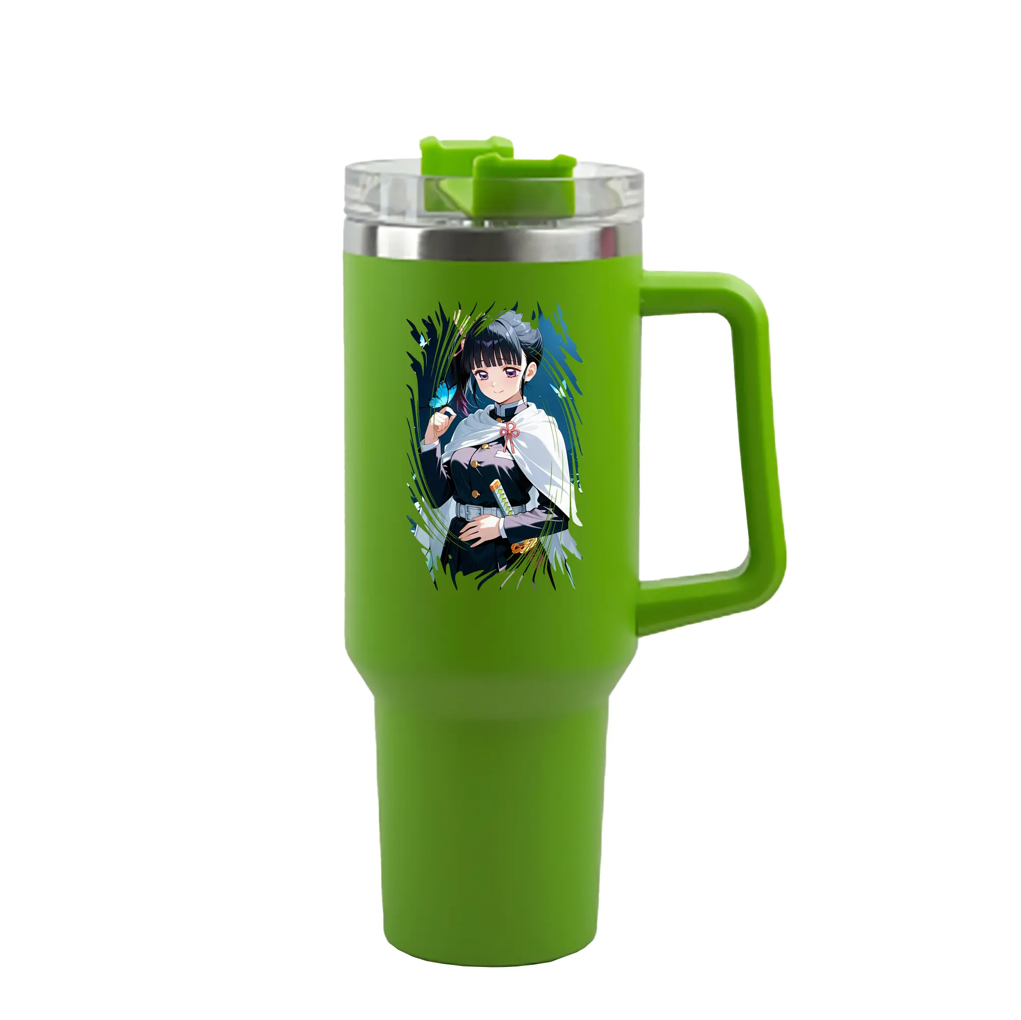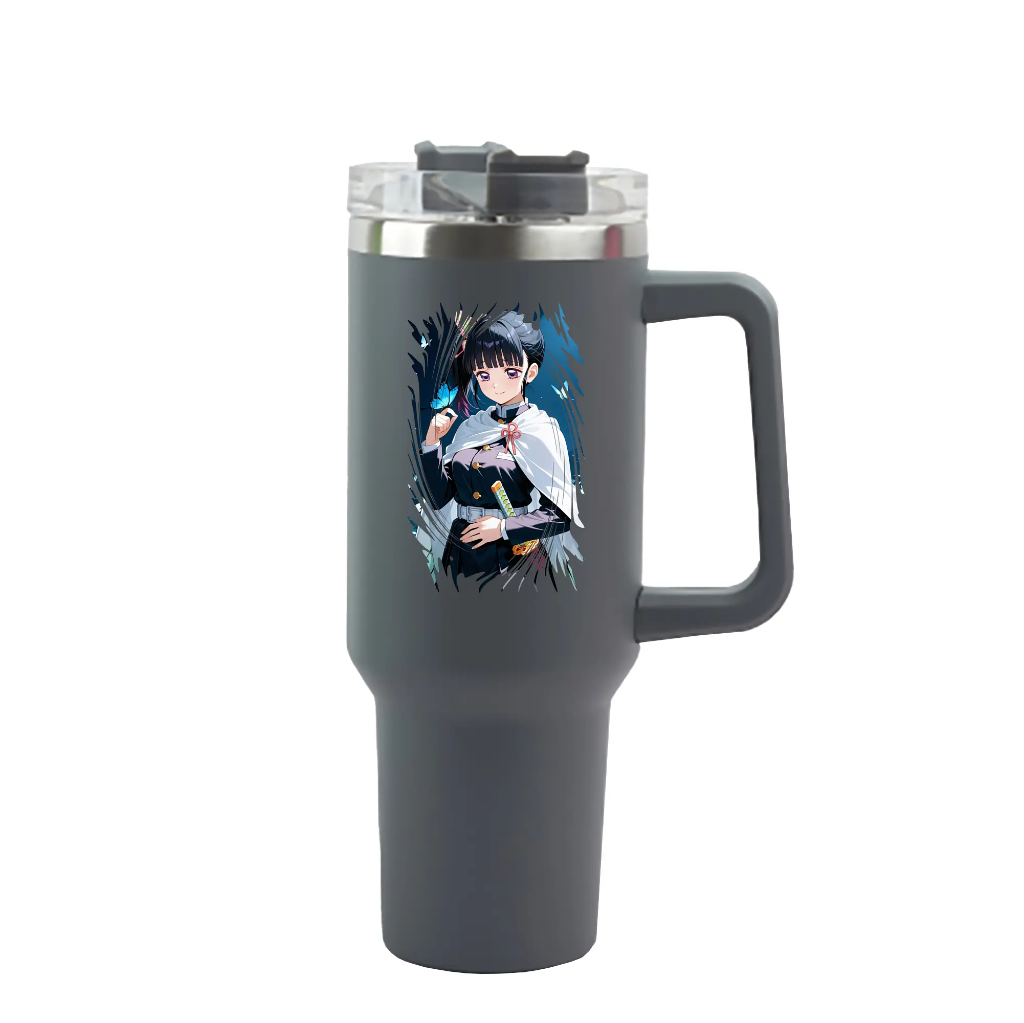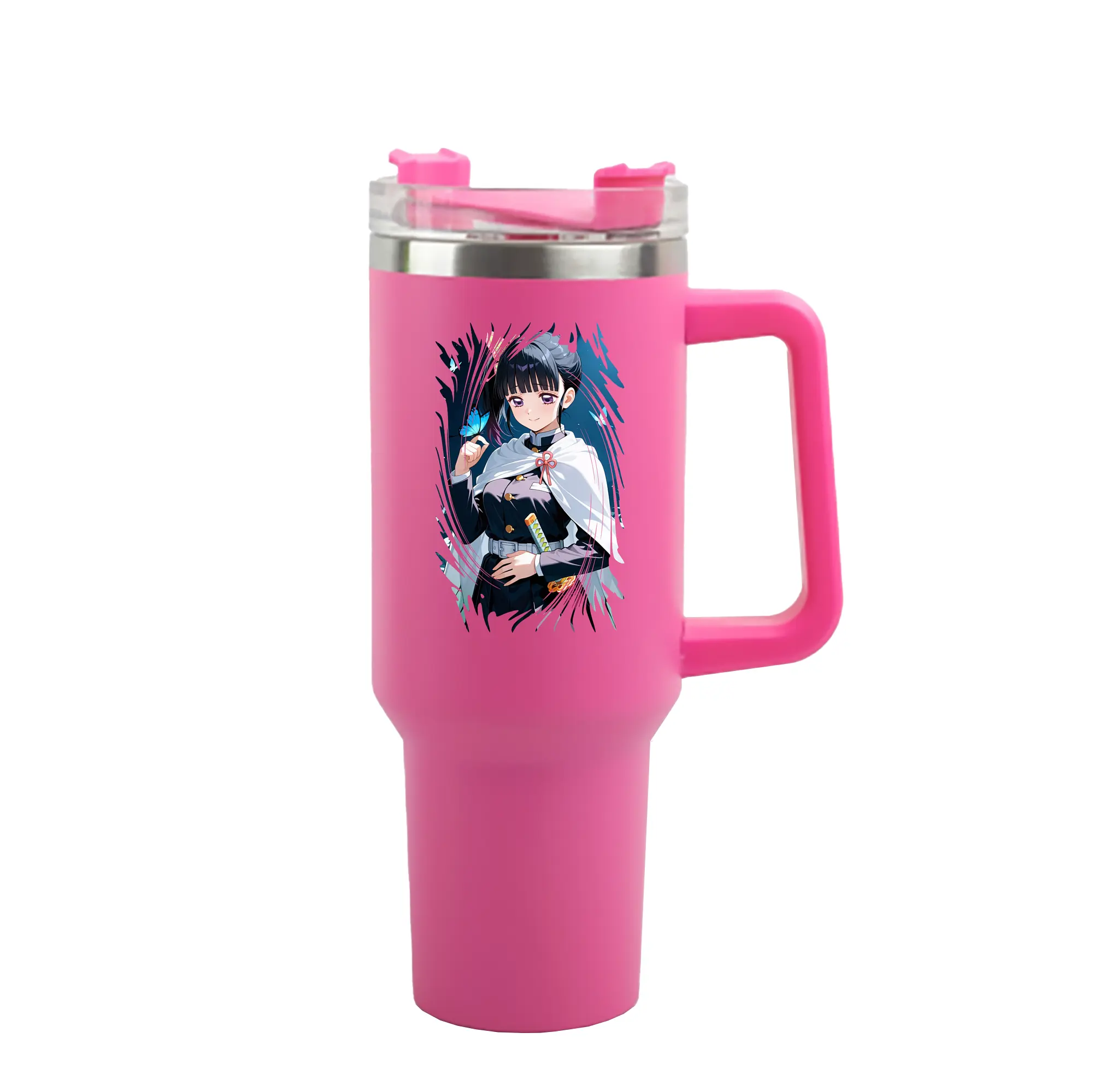 鬼滅の刃 グッズ,栗花落 カナヲ - 1200mL 車用タンブラー ・ クリスタルステッカー ・ 304ステンレス 内側 ・ 201ステンレス 外側 ・ 保温 保冷 ・ ハンドル&ストロー付き ・ 通勤 ドライブ アウトドア用