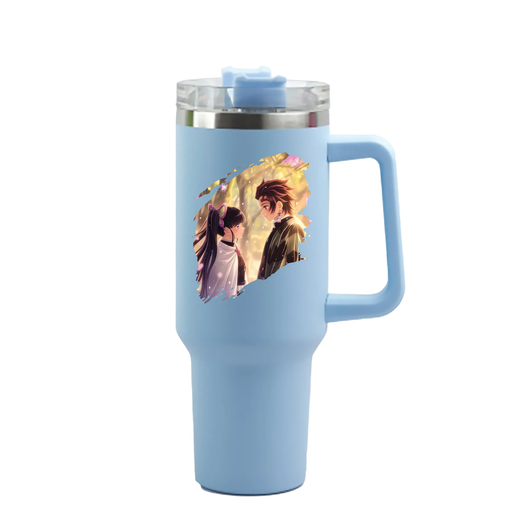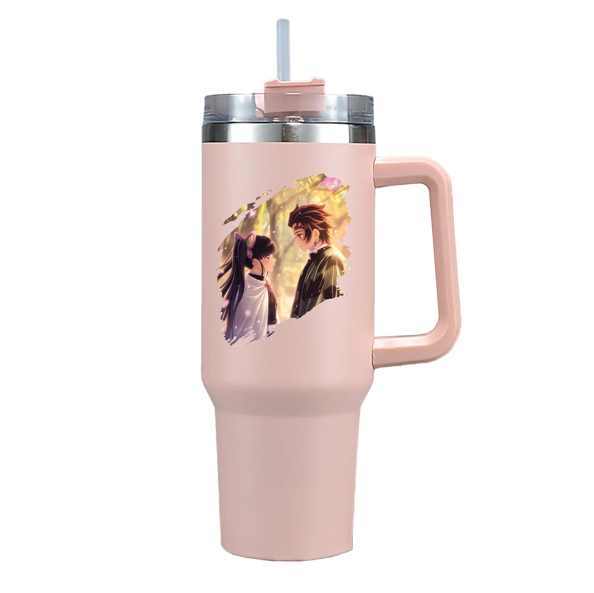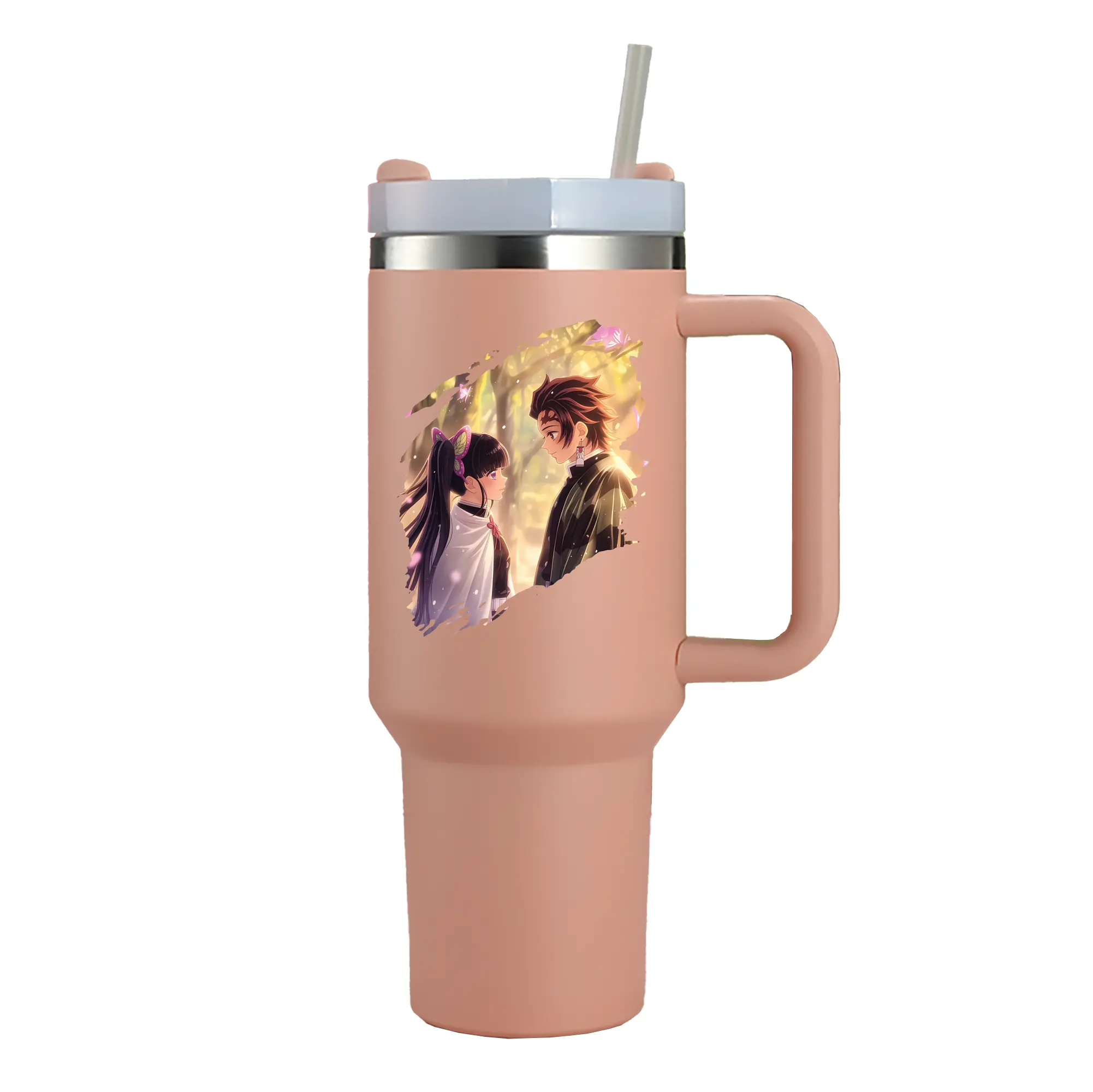鬼滅の刃 グッズ,栗花落 カナヲ - 1200mL 車用タンブラー ・ クリスタルステッカー ・ 304ステンレス 内側 ・ 201ステンレス 外側 ・ 保温 保冷 ・ ハンドル&ストロー付き ・ 通勤 ドライブ アウトドア用