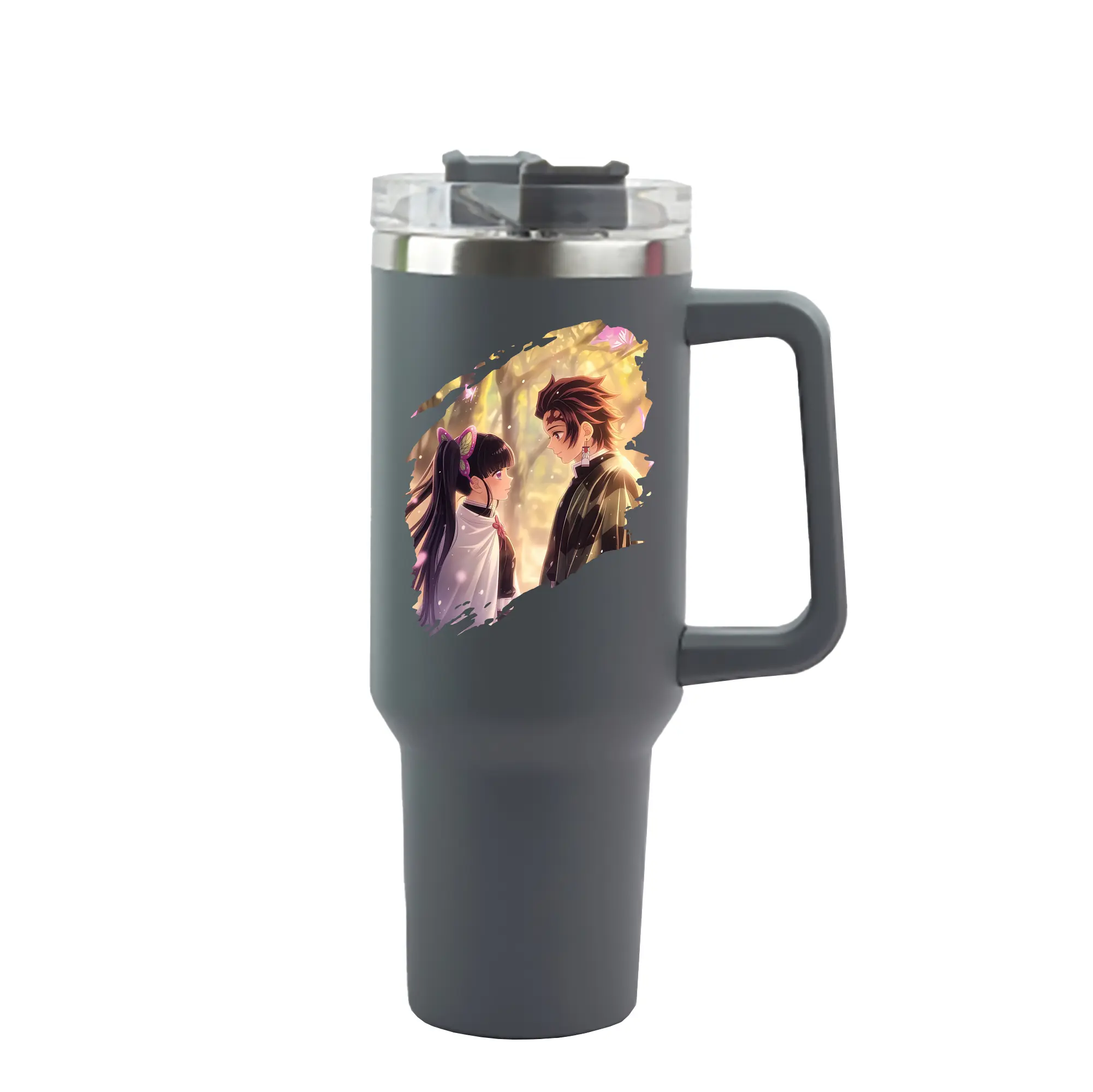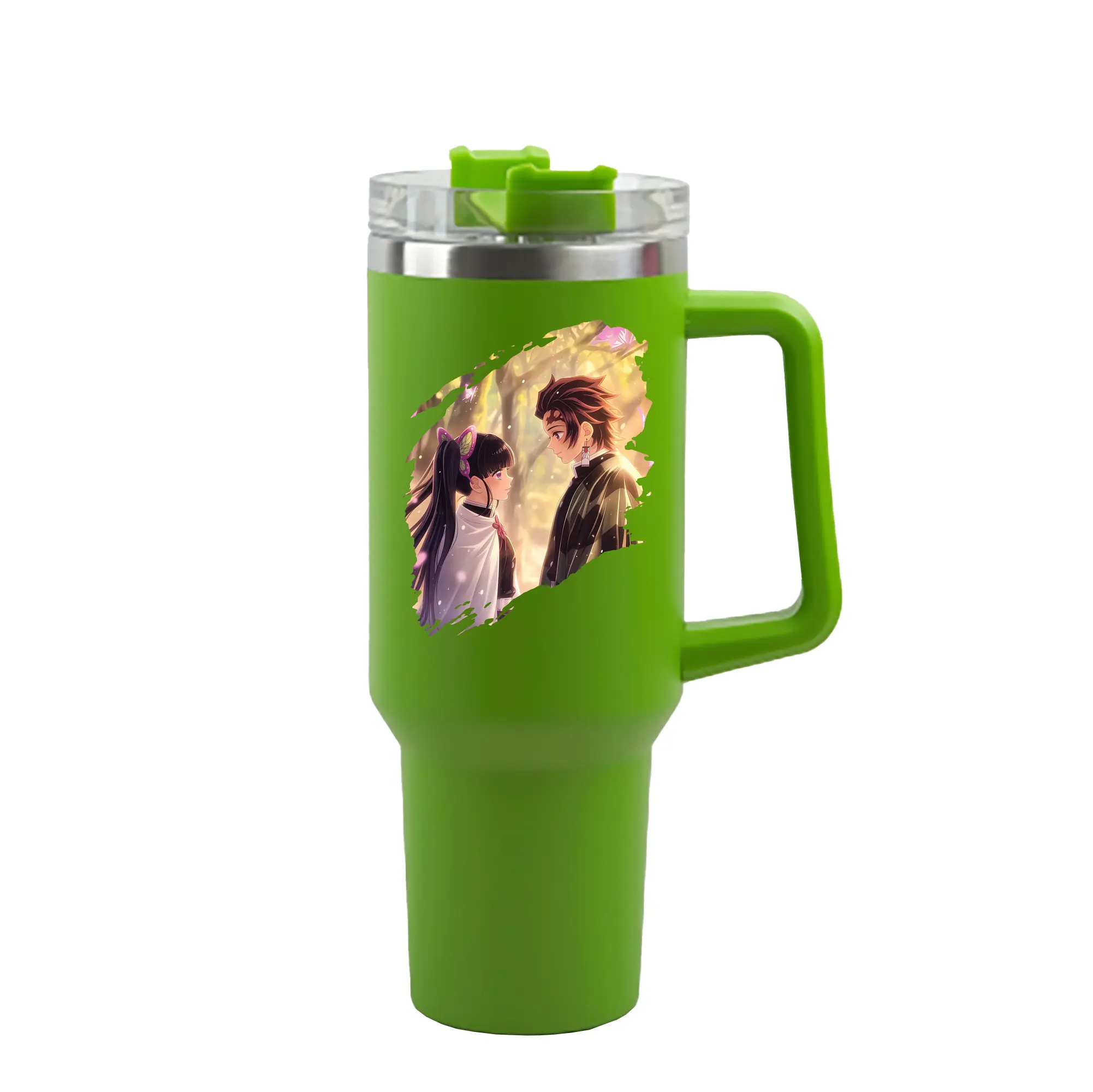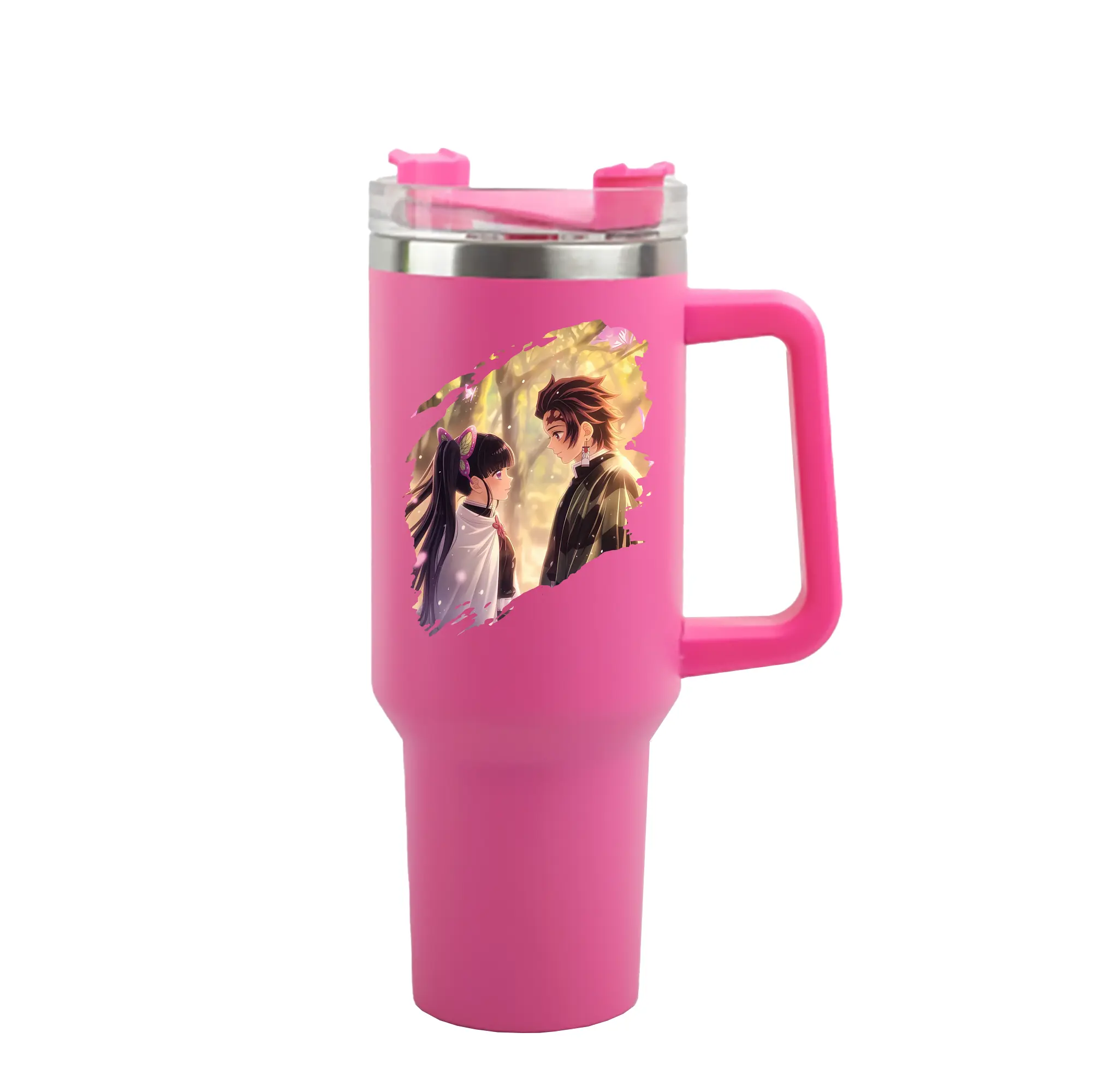 鬼滅の刃 グッズ,栗花落 カナヲ - 1200mL 車用タンブラー ・ クリスタルステッカー ・ 304ステンレス 内側 ・ 201ステンレス 外側 ・ 保温 保冷 ・ ハンドル&ストロー付き ・ 通勤 ドライブ アウトドア用