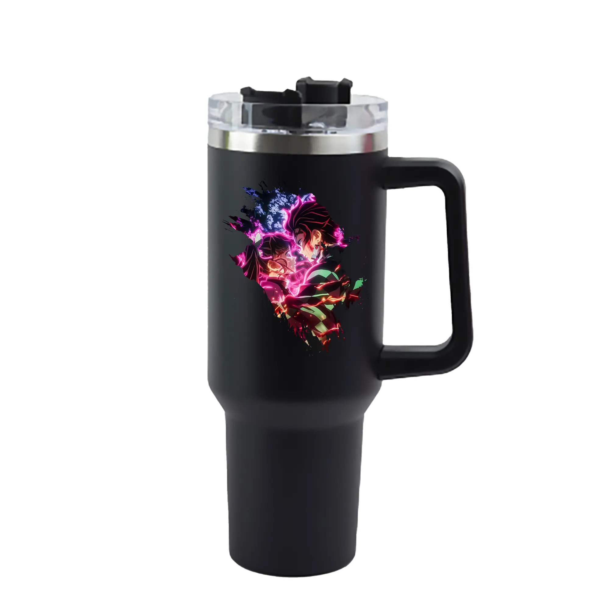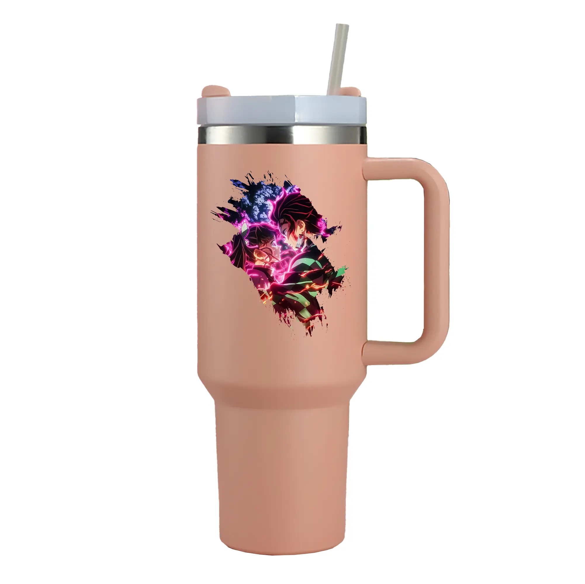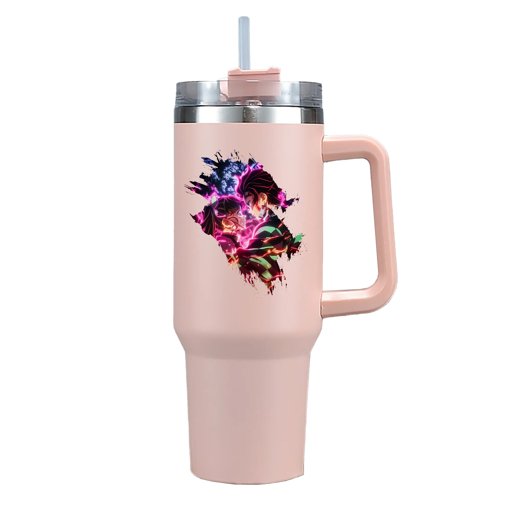鬼滅の刃 グッズ,栗花落 カナヲ - 1200mL 車用タンブラー ・ クリスタルステッカー ・ 304ステンレス 内側 ・ 201ステンレス 外側 ・ 保温 保冷 ・ ハンドル&ストロー付き ・ 通勤 ドライブ アウトドア用