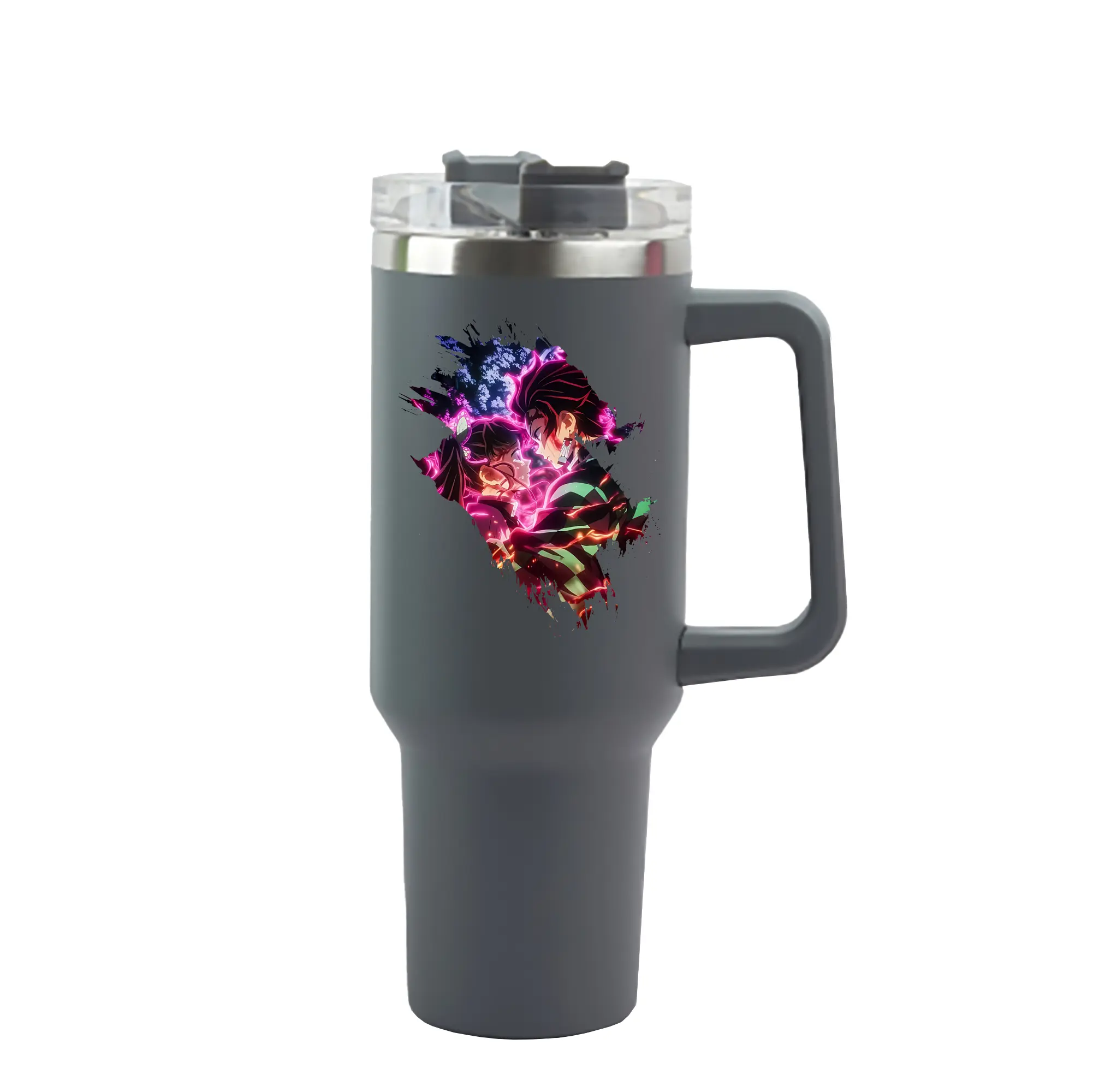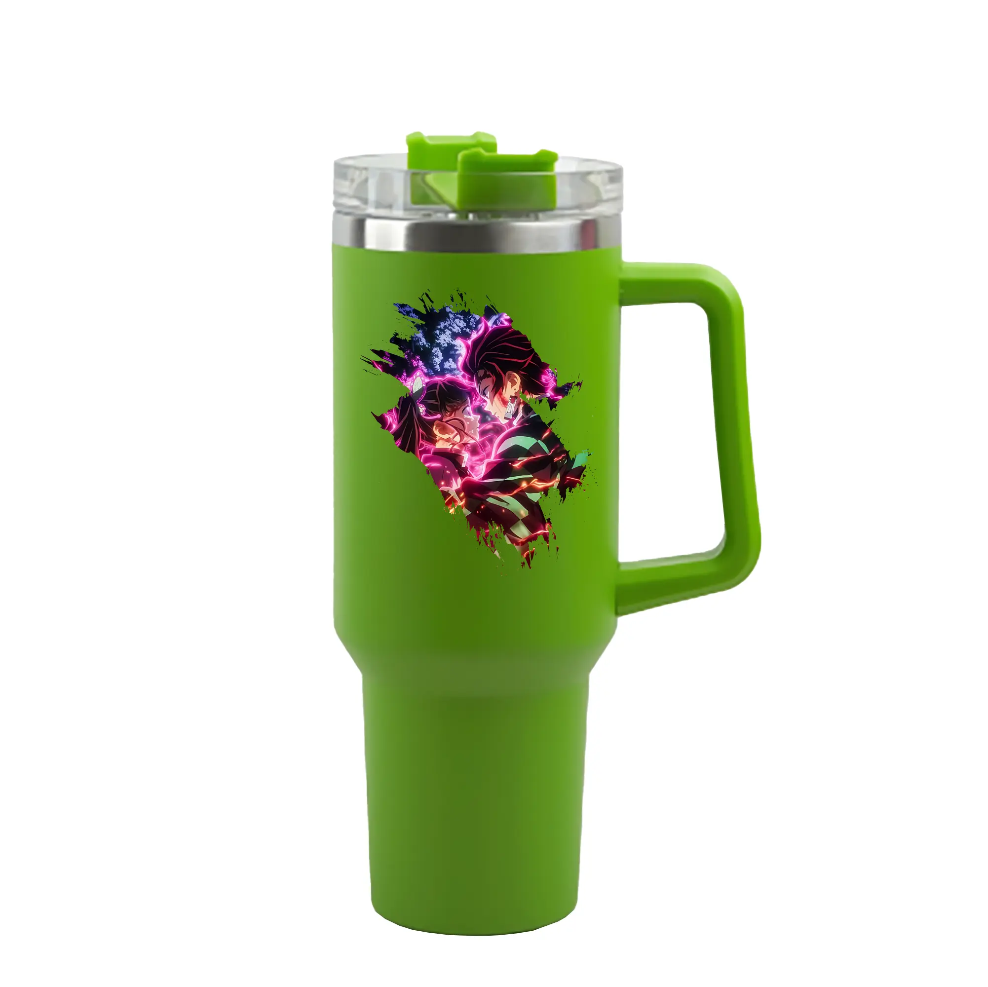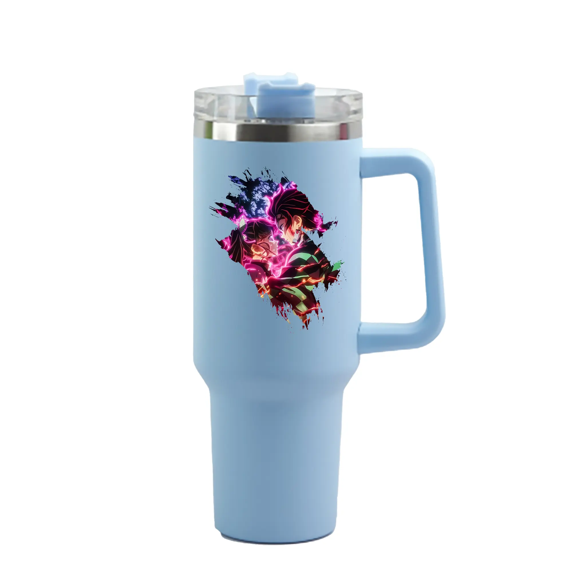 鬼滅の刃 グッズ,栗花落 カナヲ - 1200mL 車用タンブラー ・ クリスタルステッカー ・ 304ステンレス 内側 ・ 201ステンレス 外側 ・ 保温 保冷 ・ ハンドル&ストロー付き ・ 通勤 ドライブ アウトドア用