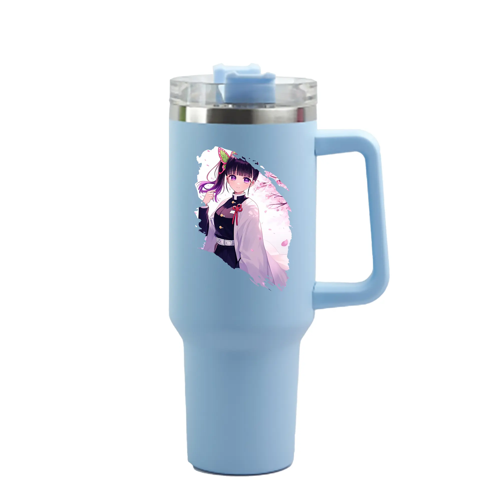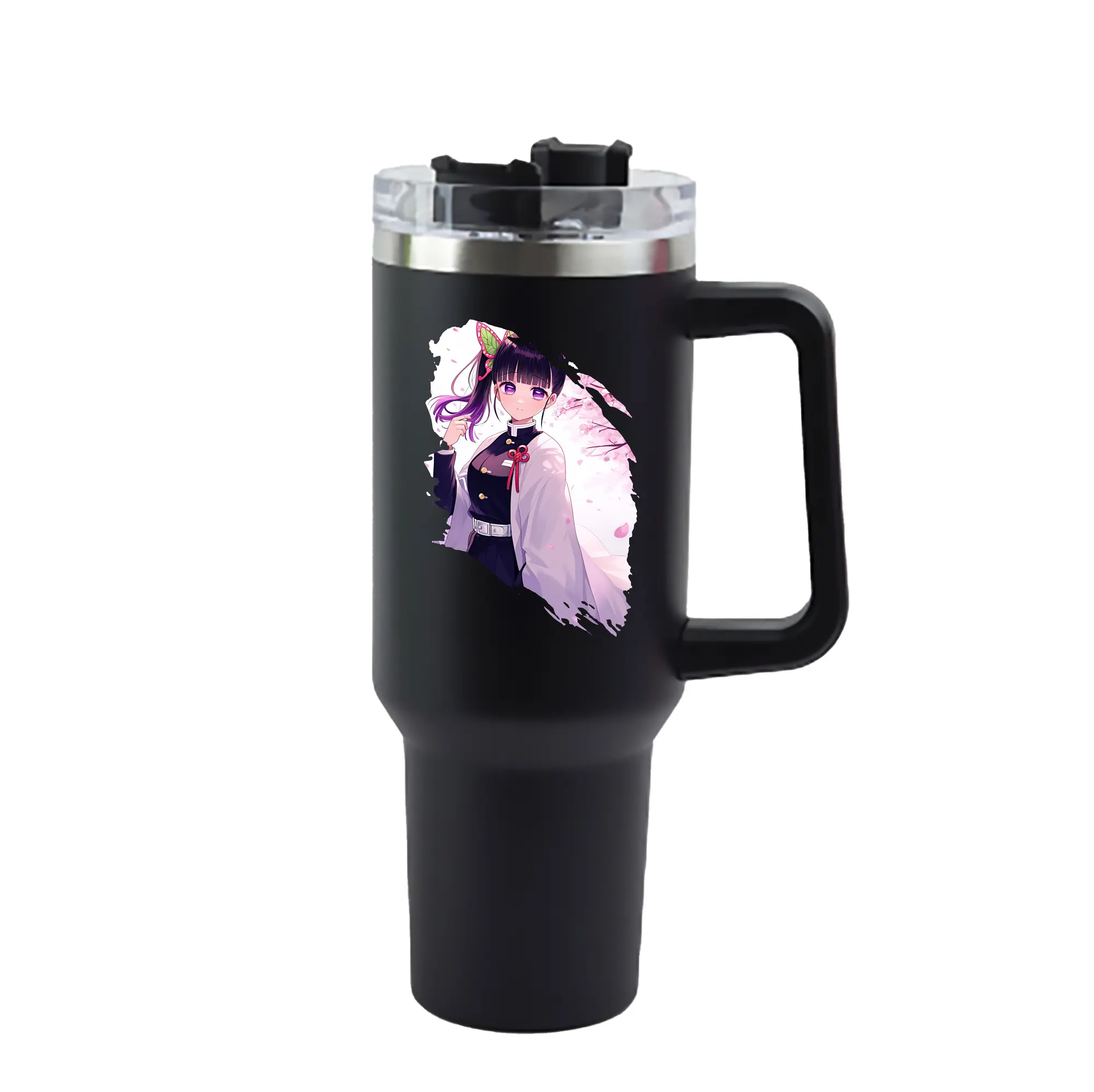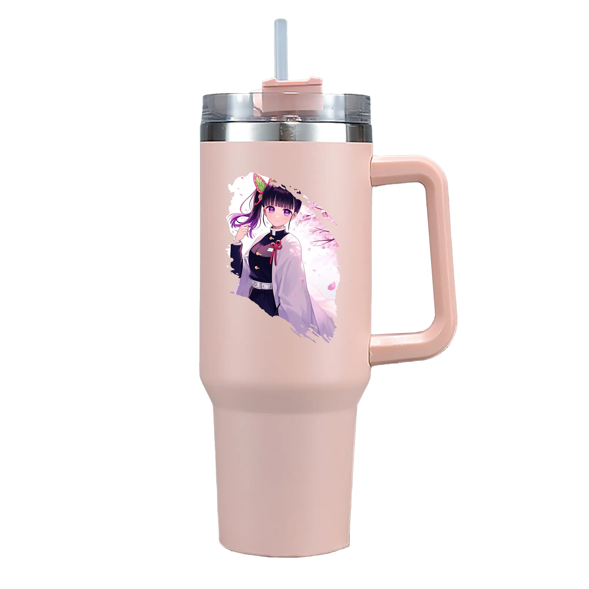 鬼滅の刃 グッズ,栗花落 カナヲ - 1200mL 車用タンブラー ・ クリスタルステッカー ・ 304ステンレス 内側 ・ 201ステンレス 外側 ・ 保温 保冷 ・ ハンドル&ストロー付き ・ 通勤 ドライブ アウトドア用