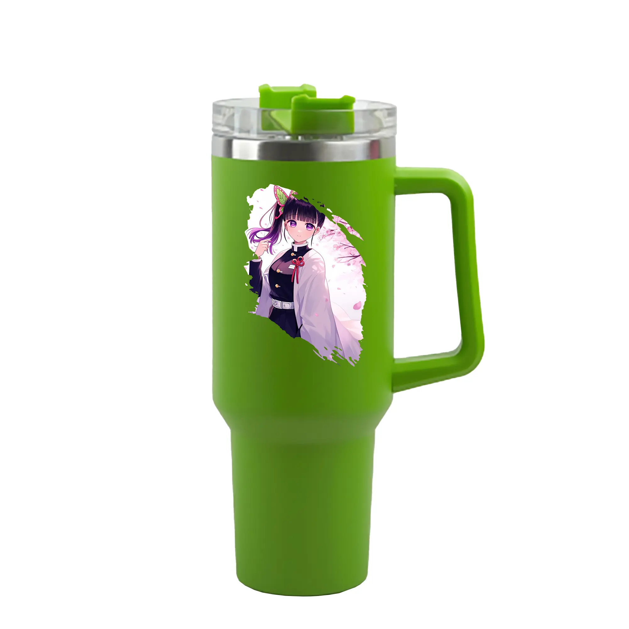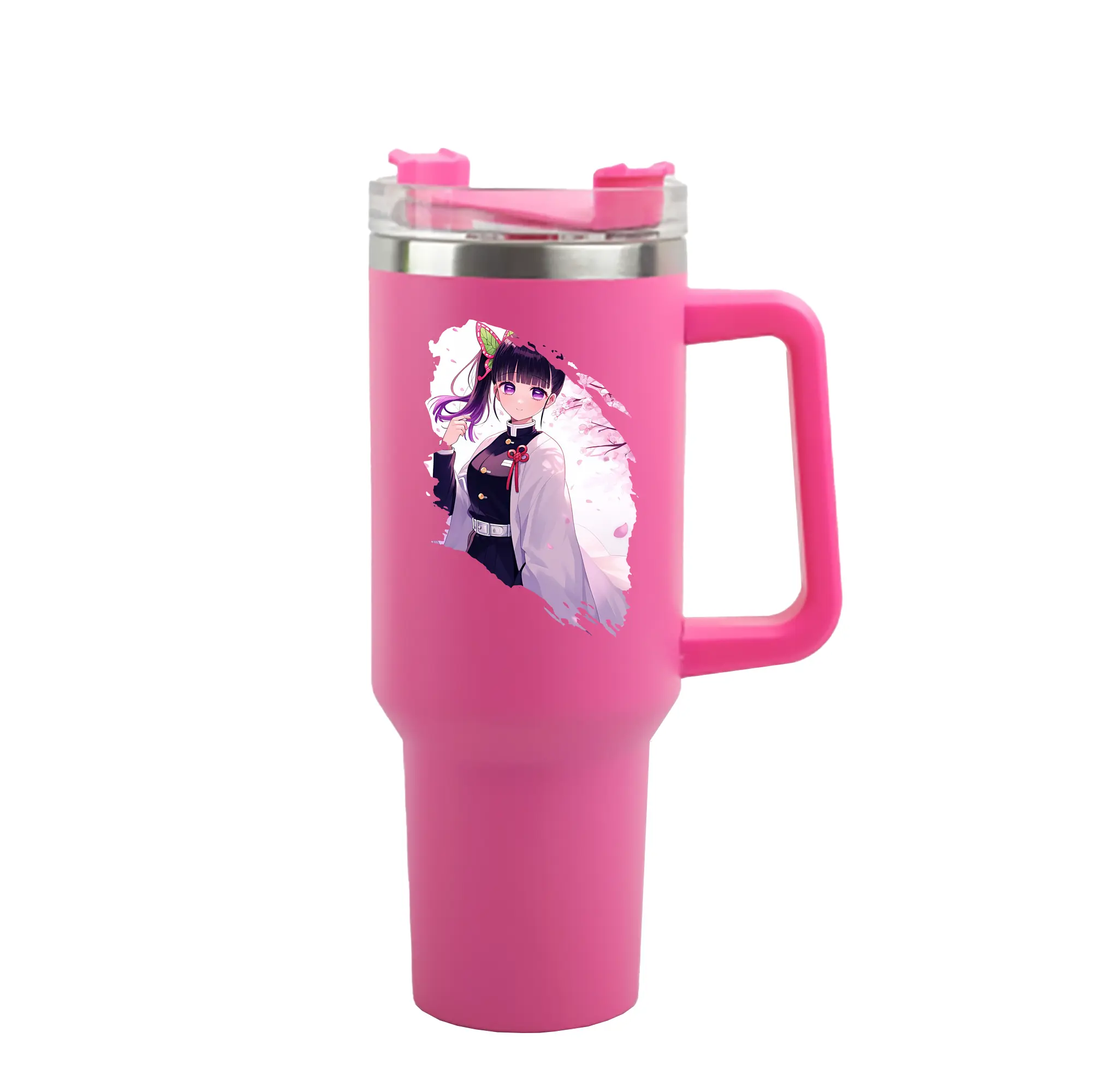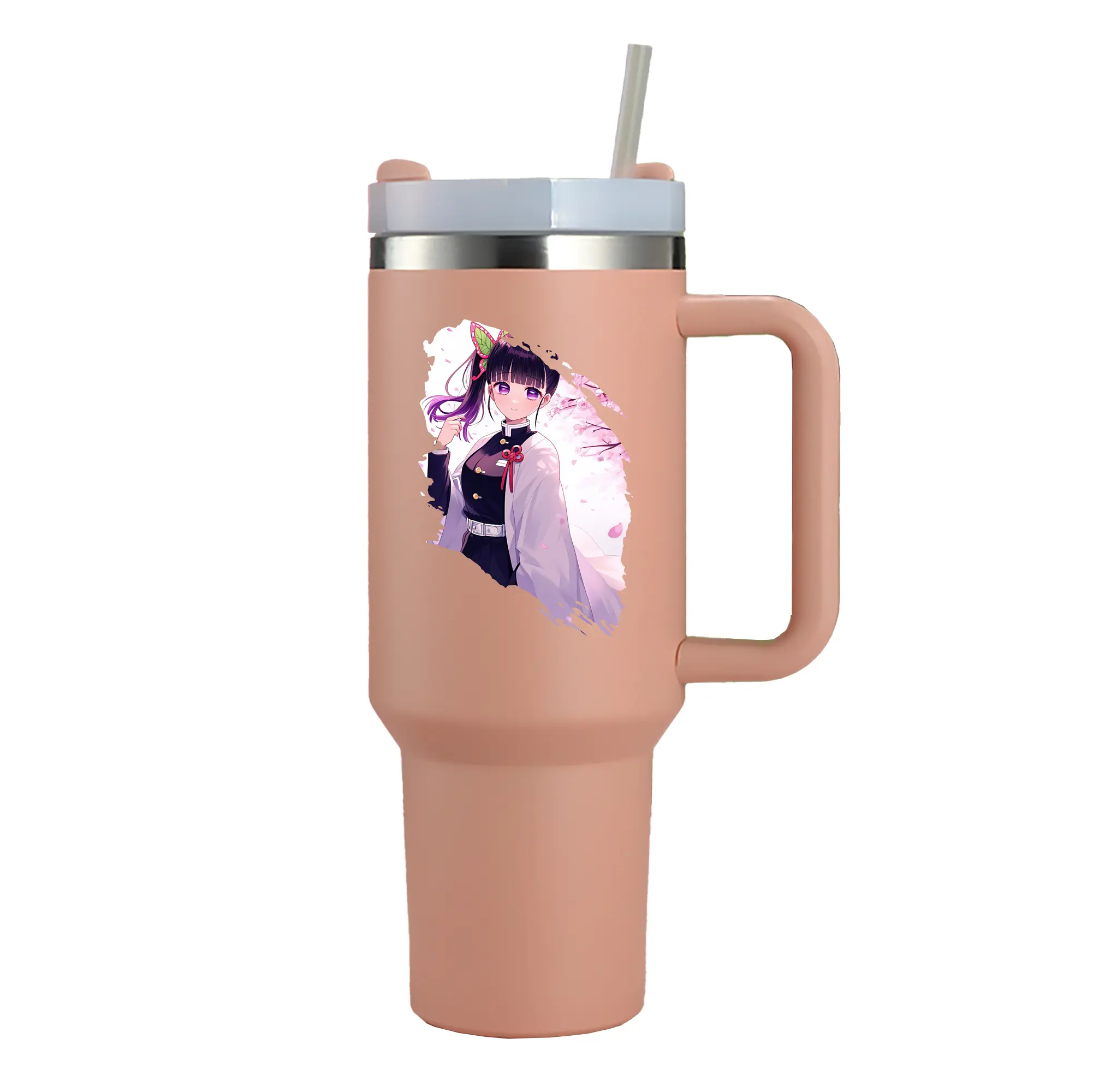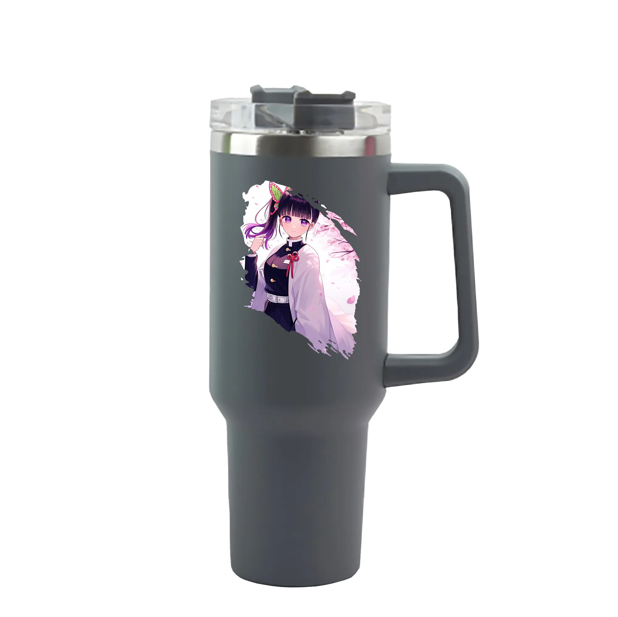 鬼滅の刃 グッズ,栗花落 カナヲ - 1200mL 車用タンブラー ・ クリスタルステッカー ・ 304ステンレス 内側 ・ 201ステンレス 外側 ・ 保温 保冷 ・ ハンドル&ストロー付き ・ 通勤 ドライブ アウトドア用