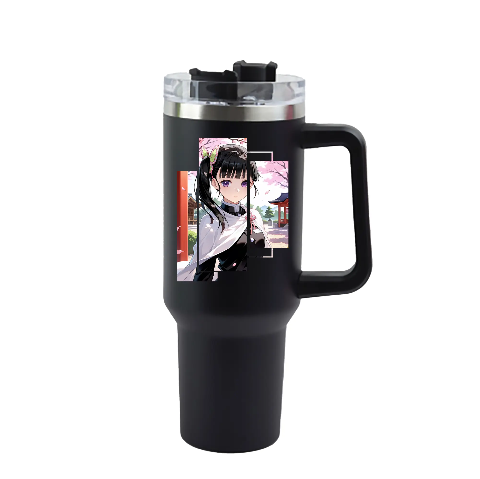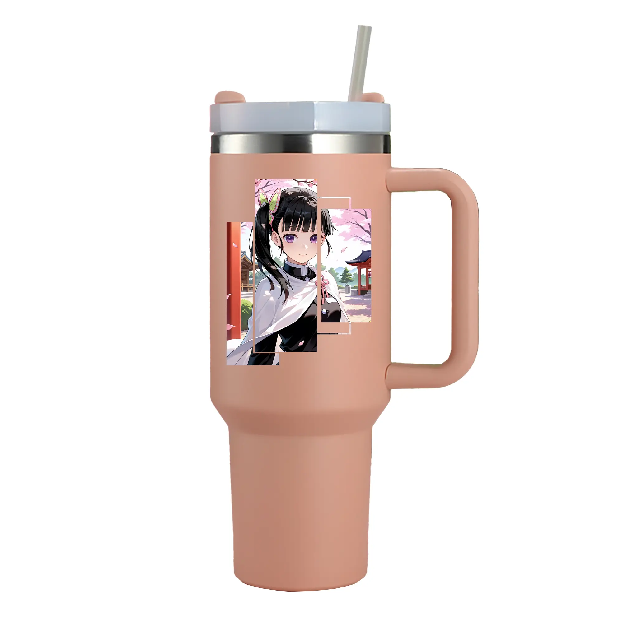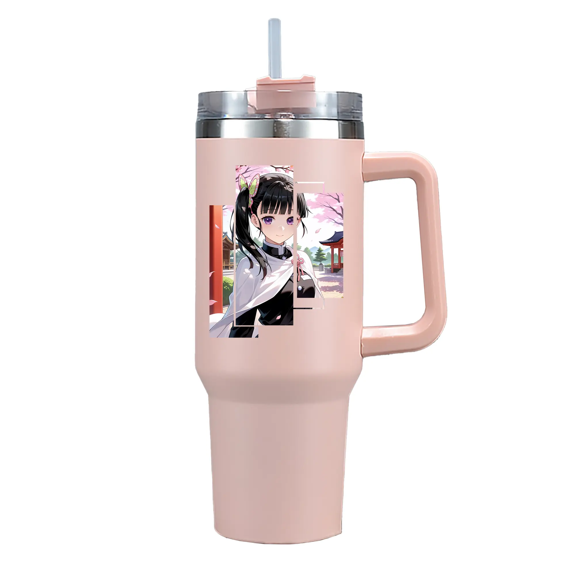 鬼滅の刃 グッズ,栗花落 カナヲ - 1200mL 車用タンブラー ・ クリスタルステッカー ・ 304ステンレス 内側 ・ 201ステンレス 外側 ・ 保温 保冷 ・ ハンドル&ストロー付き ・ 通勤 ドライブ アウトドア用