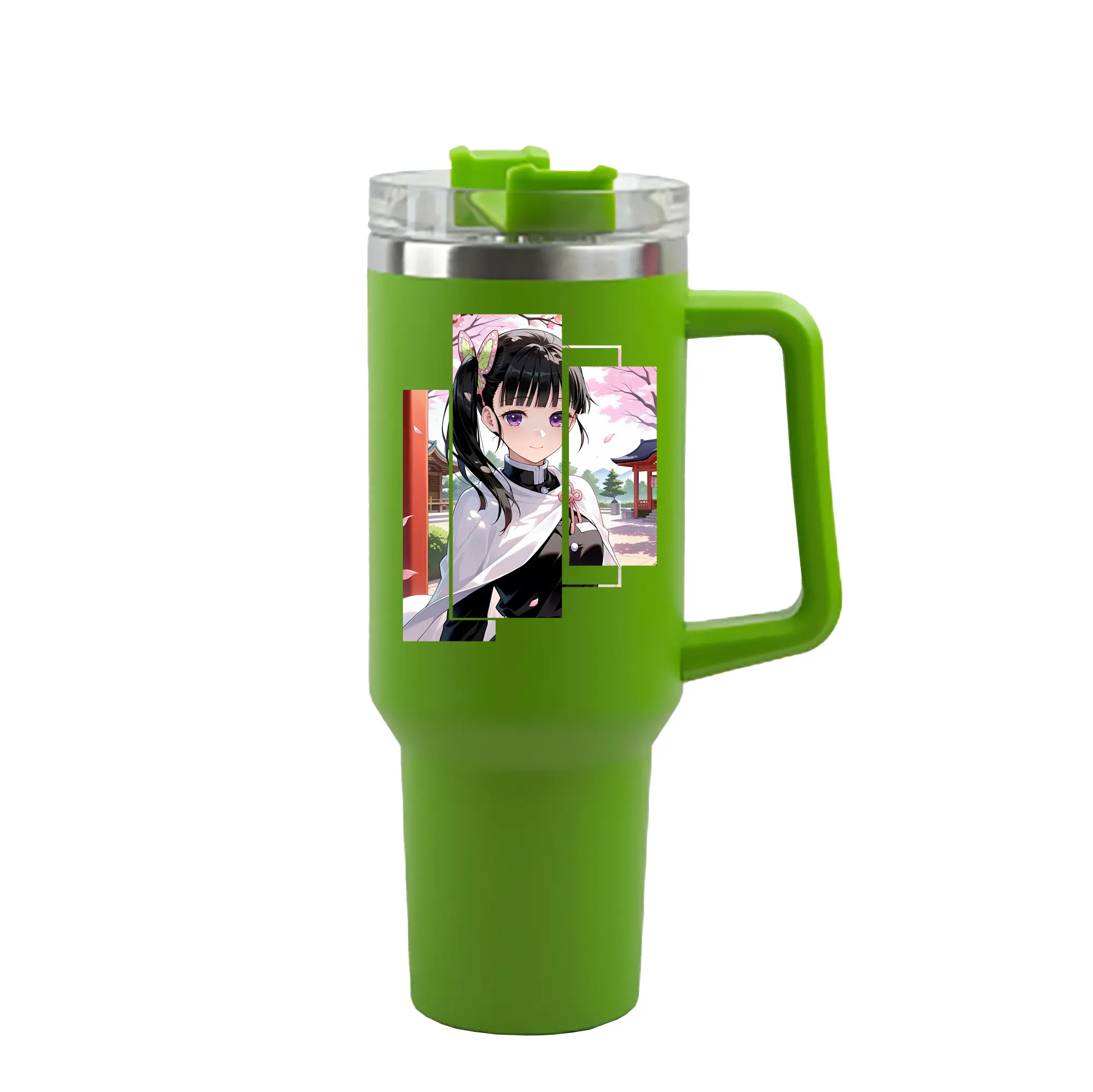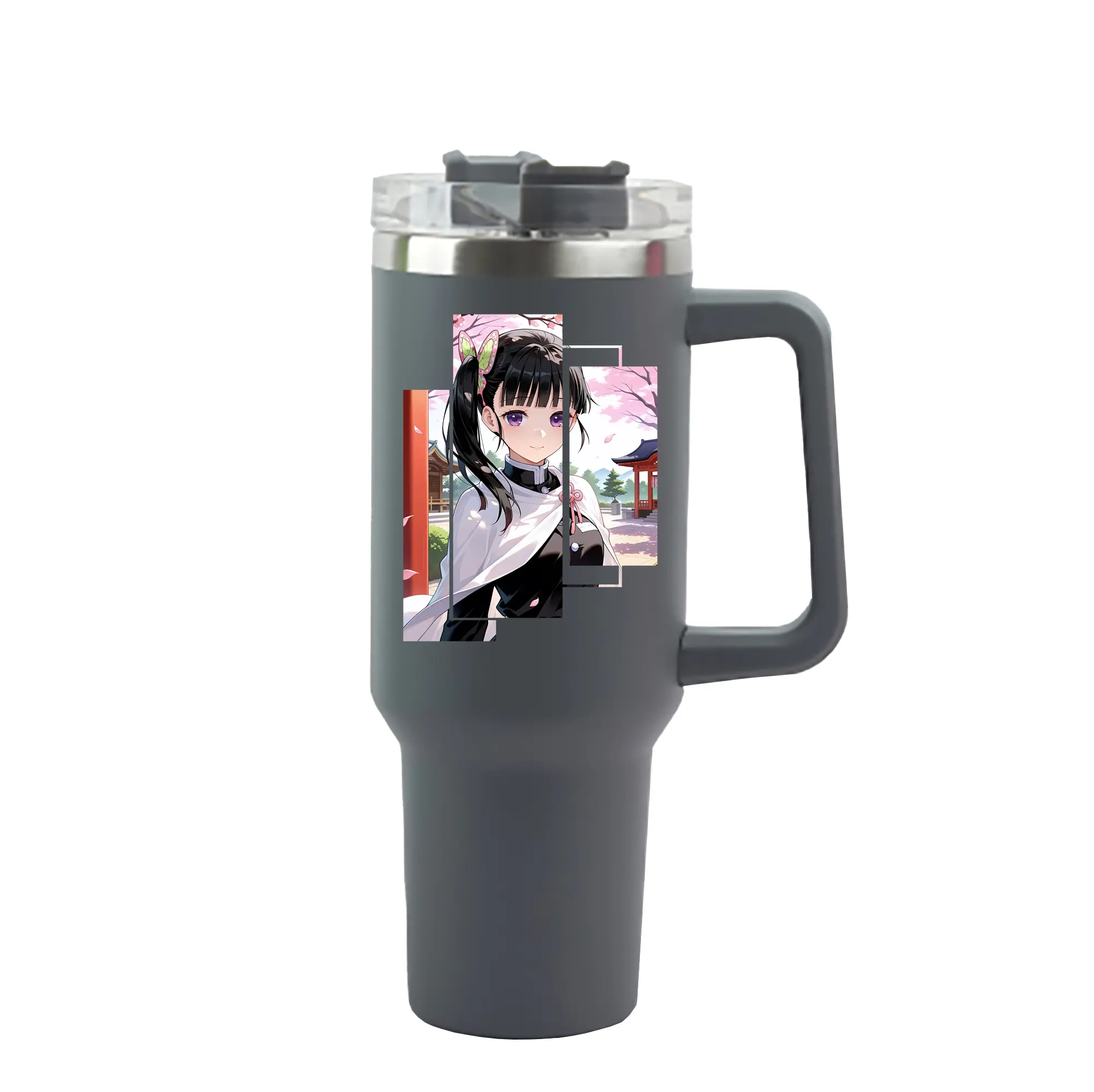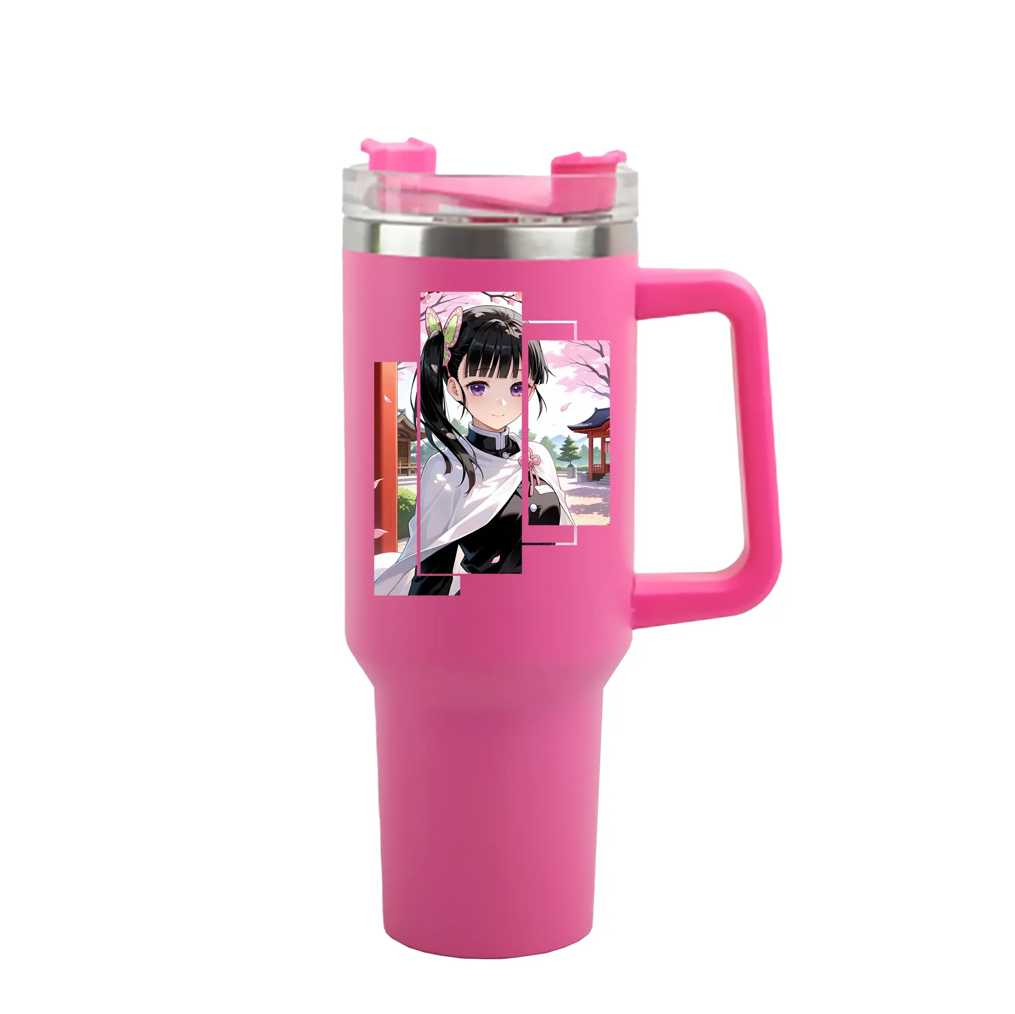 鬼滅の刃 グッズ,栗花落 カナヲ - 1200mL 車用タンブラー ・ クリスタルステッカー ・ 304ステンレス 内側 ・ 201ステンレス 外側 ・ 保温 保冷 ・ ハンドル&ストロー付き ・ 通勤 ドライブ アウトドア用