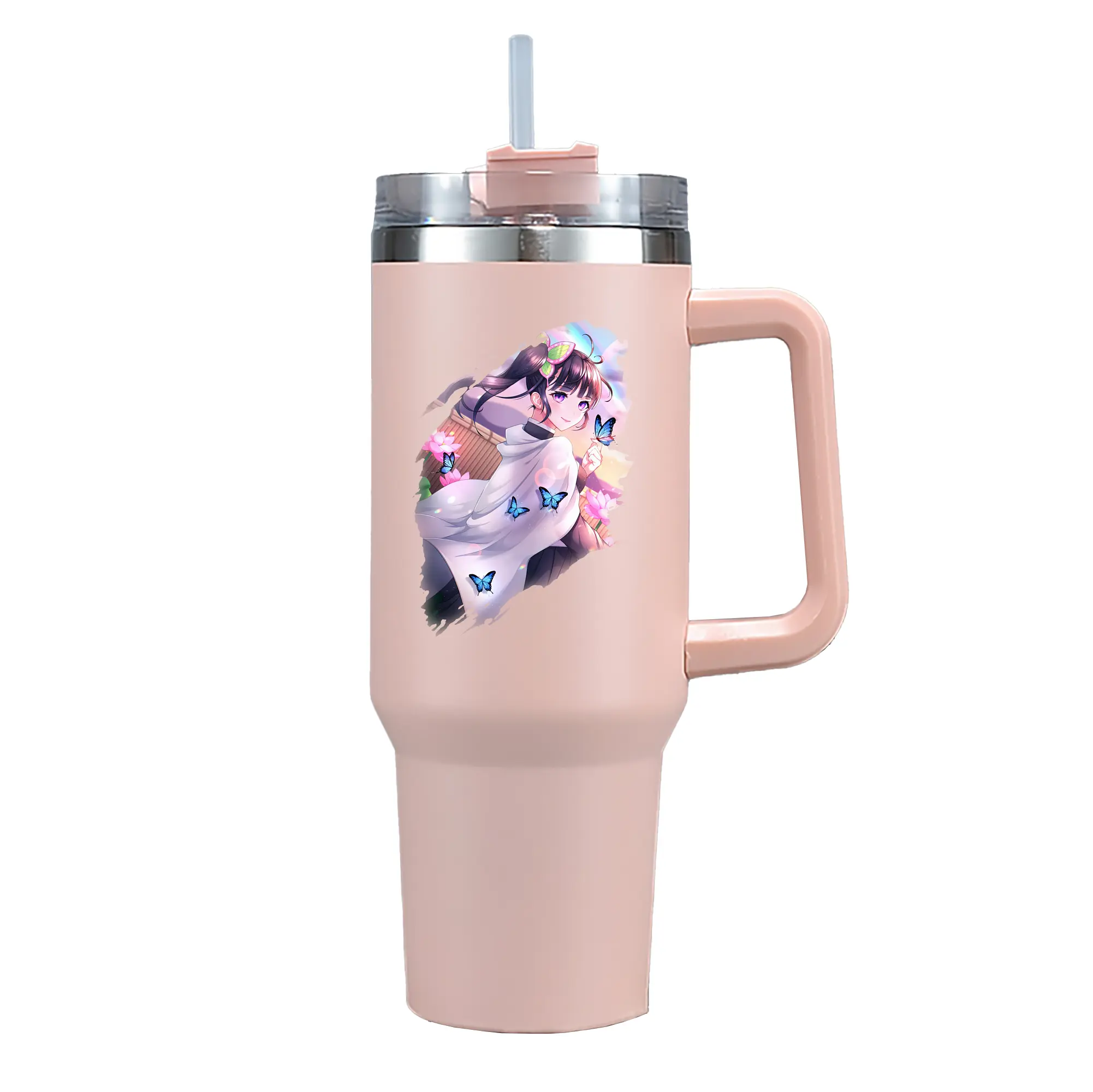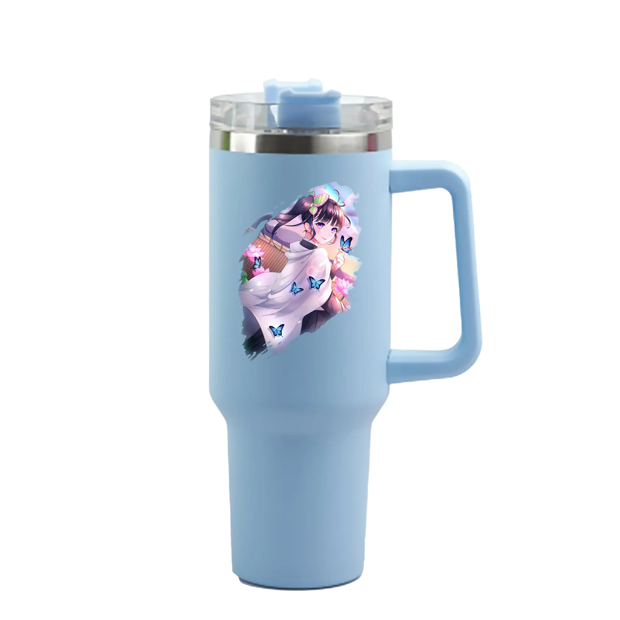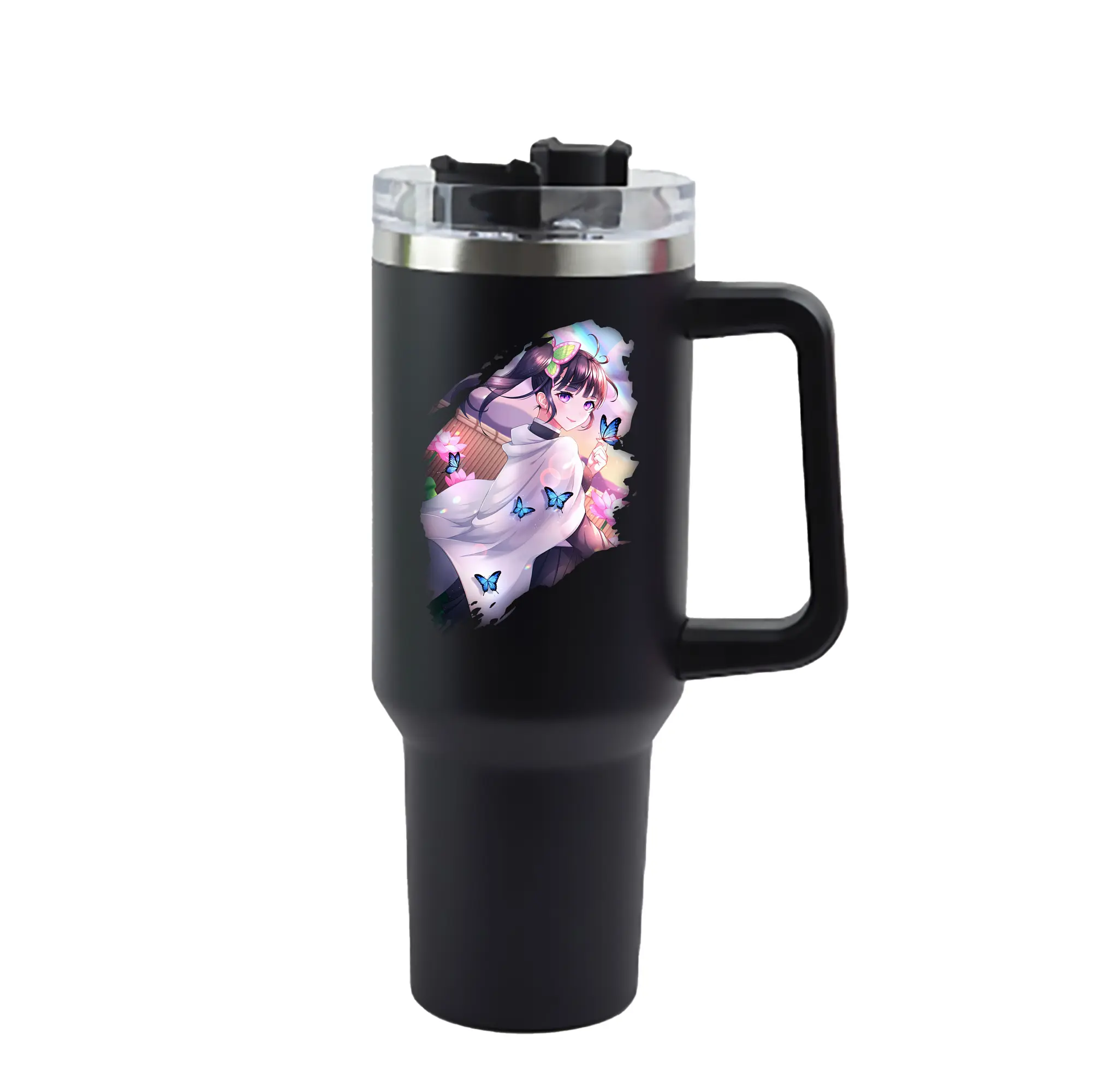 鬼滅の刃 グッズ,栗花落 カナヲ - 1200mL 車用タンブラー ・ クリスタルステッカー ・ 304ステンレス 内側 ・ 201ステンレス 外側 ・ 保温 保冷 ・ ハンドル&ストロー付き ・ 通勤 ドライブ アウトドア用