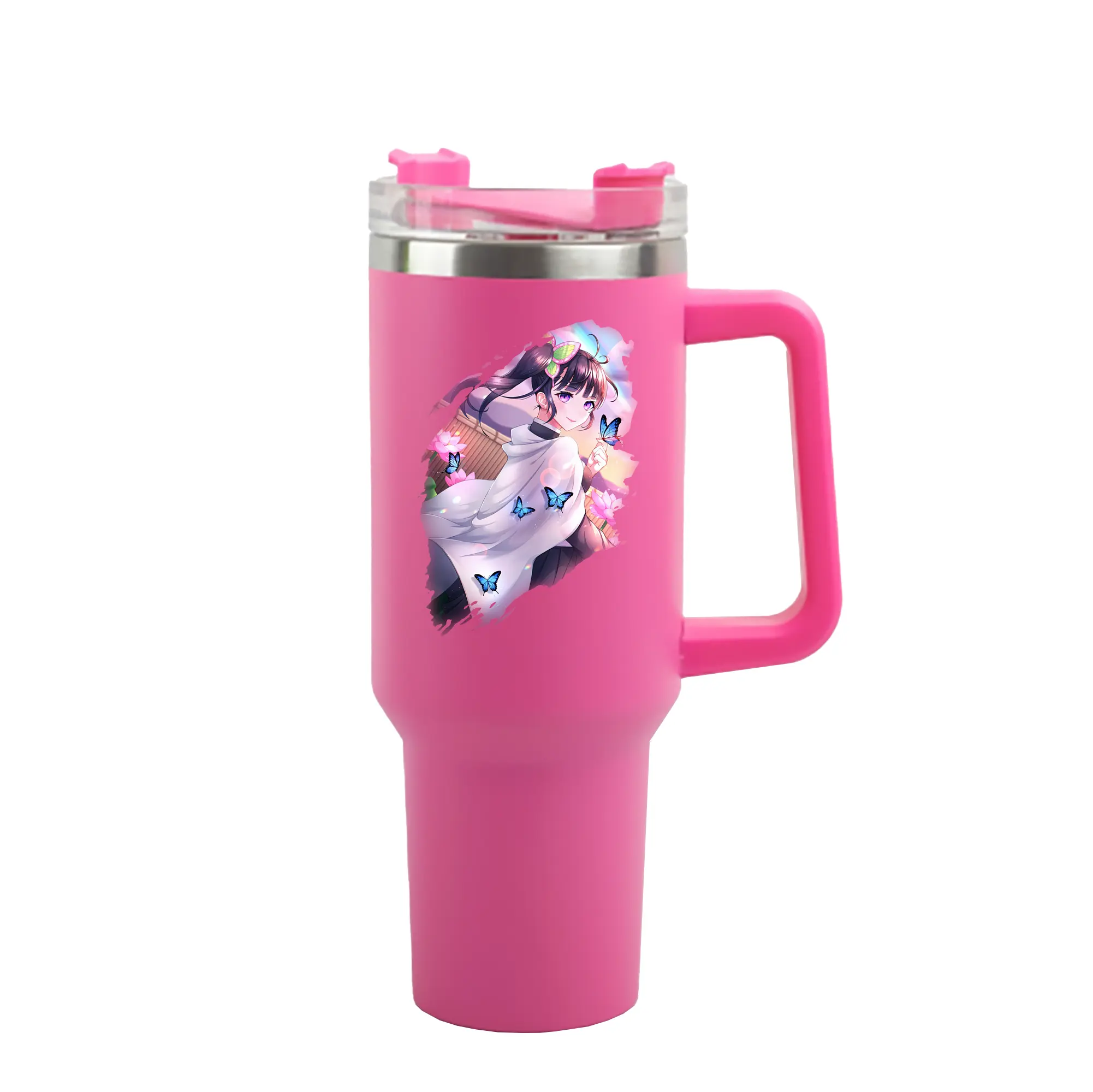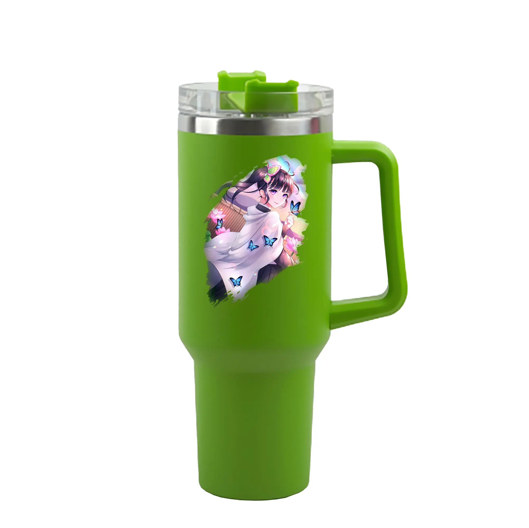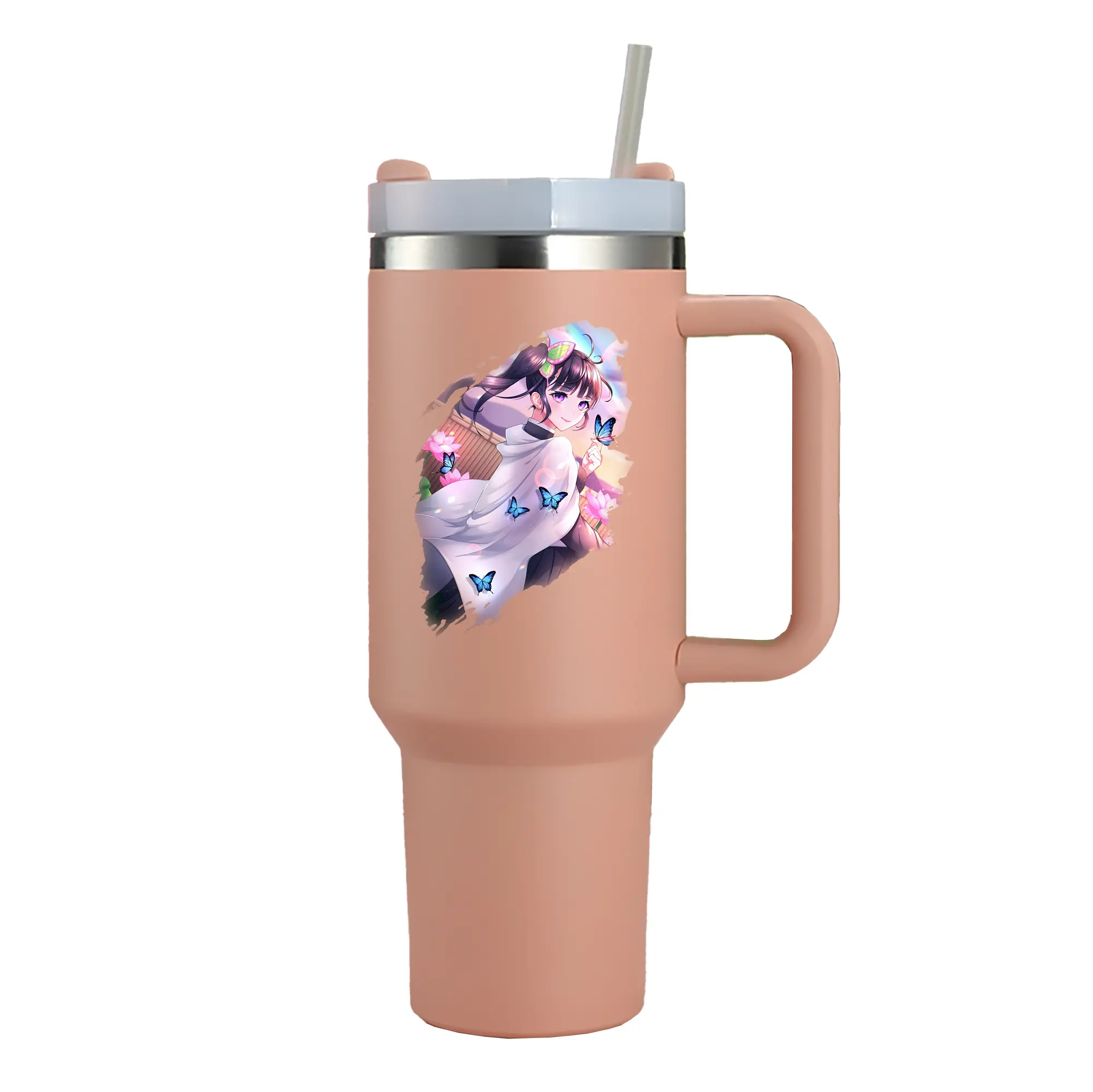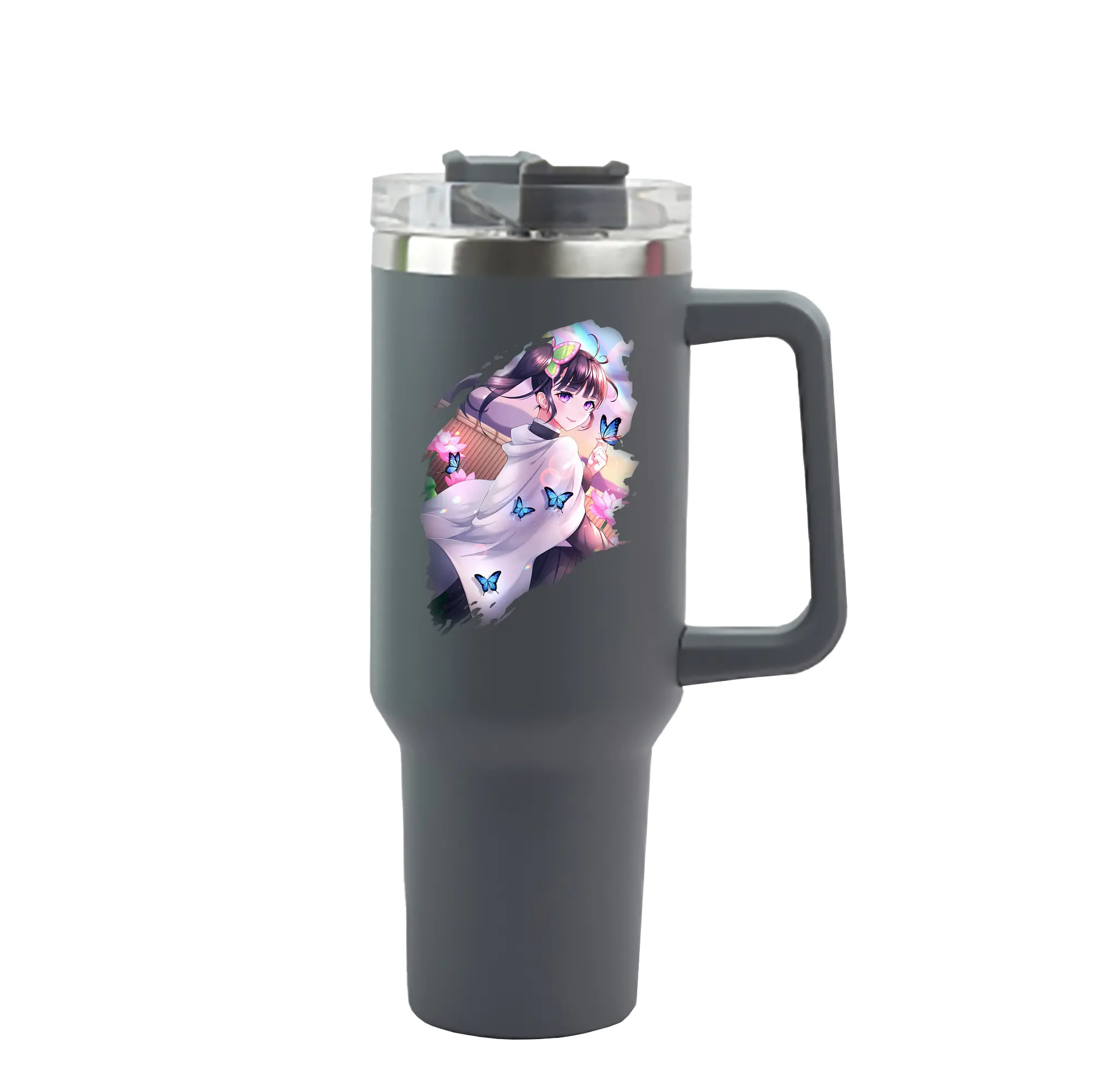 鬼滅の刃 グッズ,栗花落 カナヲ - 1200mL 車用タンブラー ・ クリスタルステッカー ・ 304ステンレス 内側 ・ 201ステンレス 外側 ・ 保温 保冷 ・ ハンドル&ストロー付き ・ 通勤 ドライブ アウトドア用
