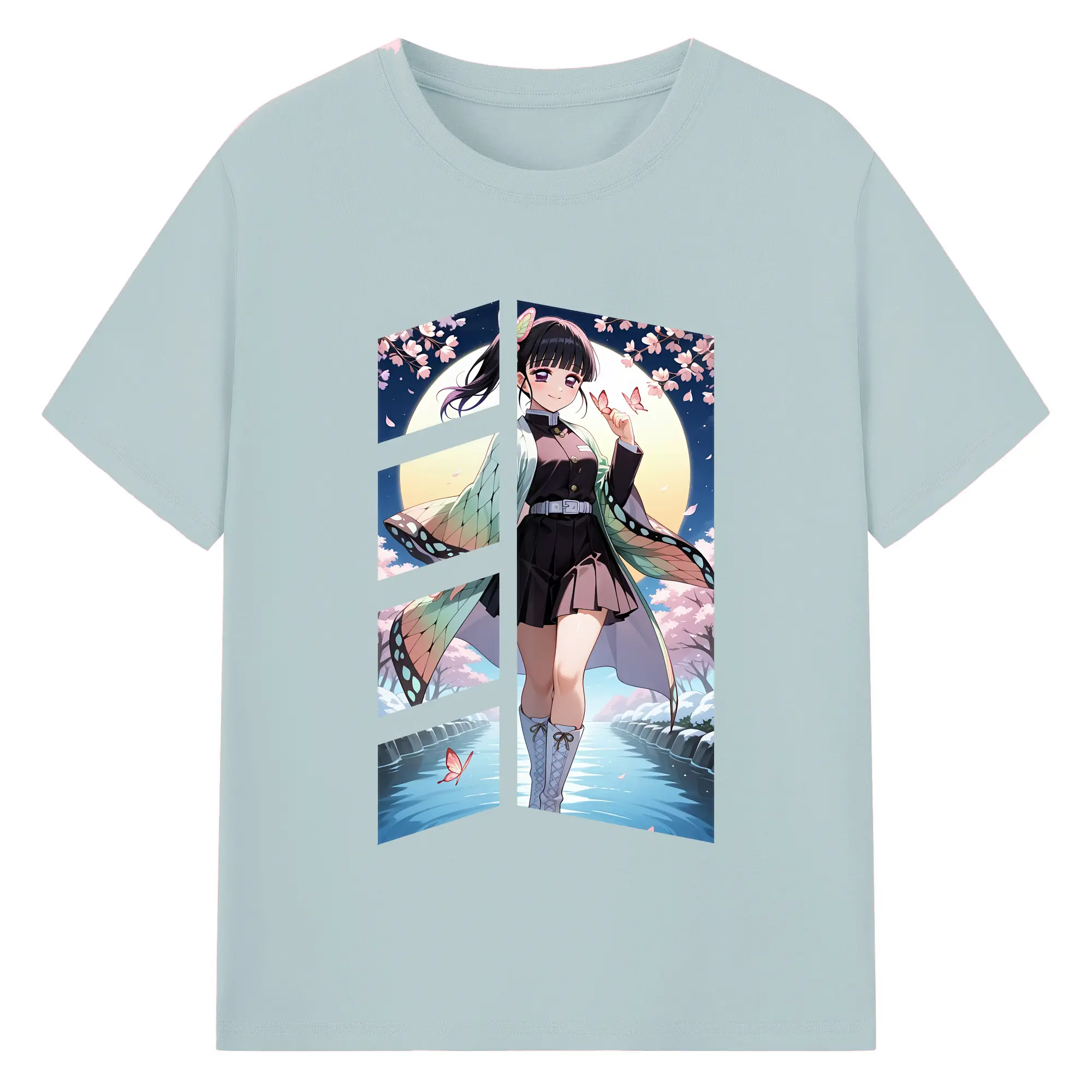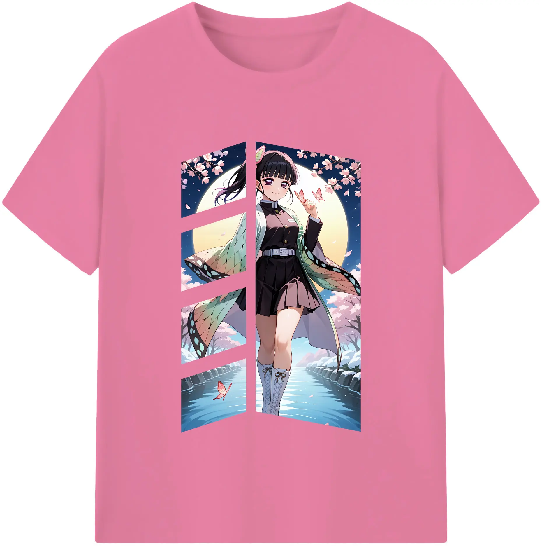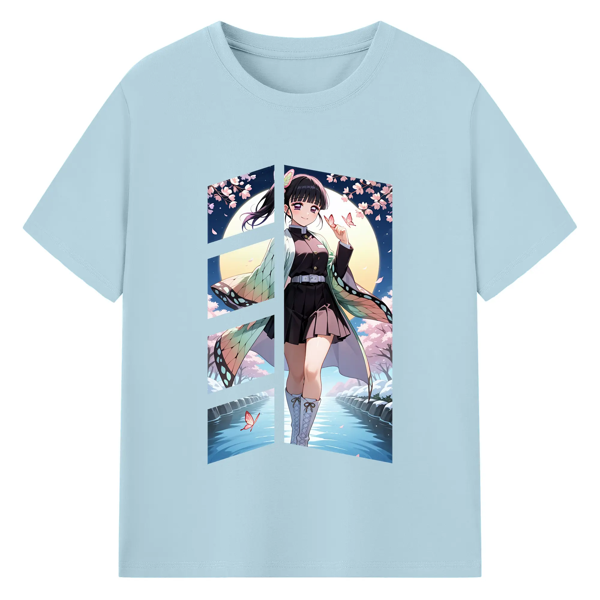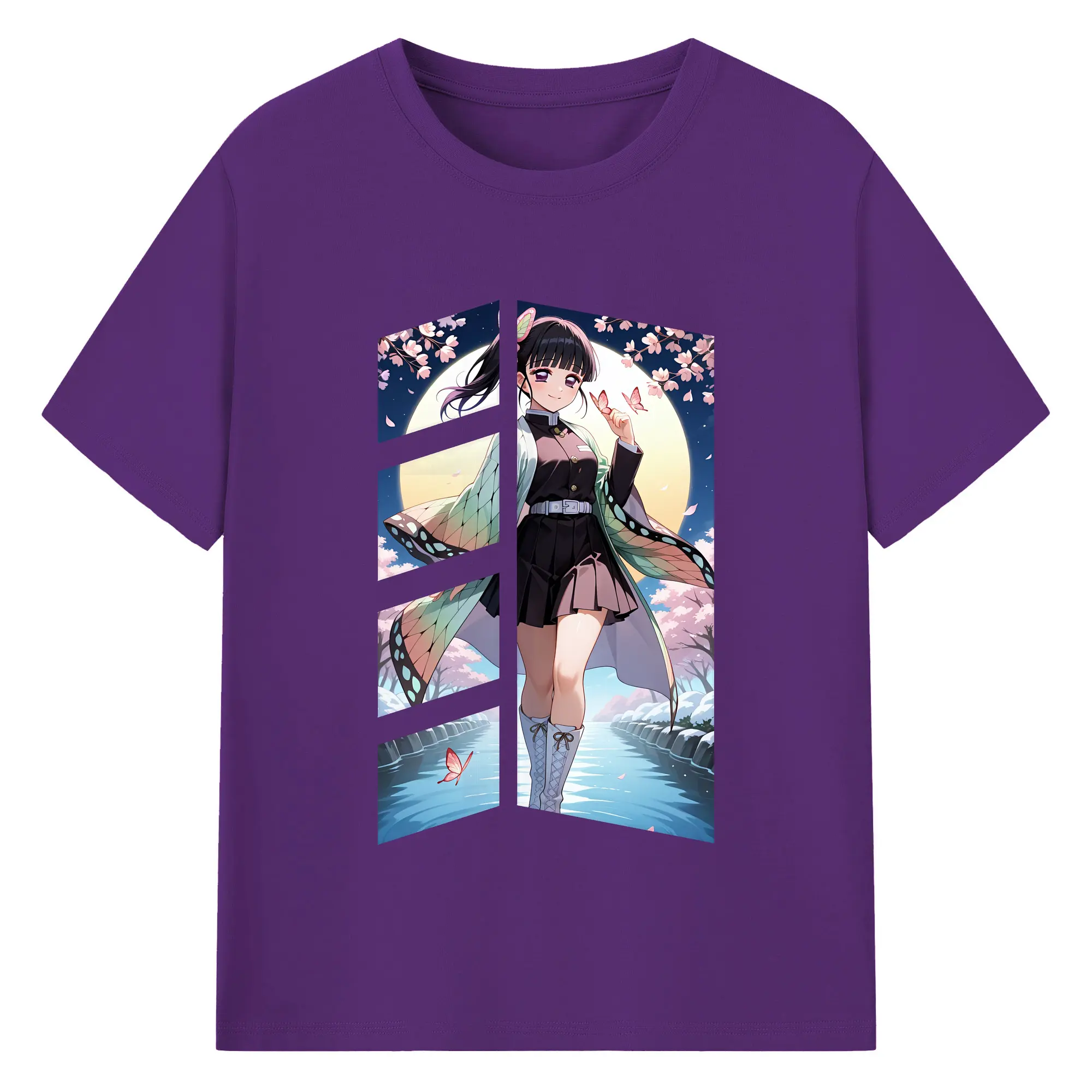 鬼滅の刃 グッズ,栗花落 カナヲ - 綿100% 半袖Tシャツ ・ バックプリント ・ 快適 通気性 ・ 日常使い 散歩 スポーツ用