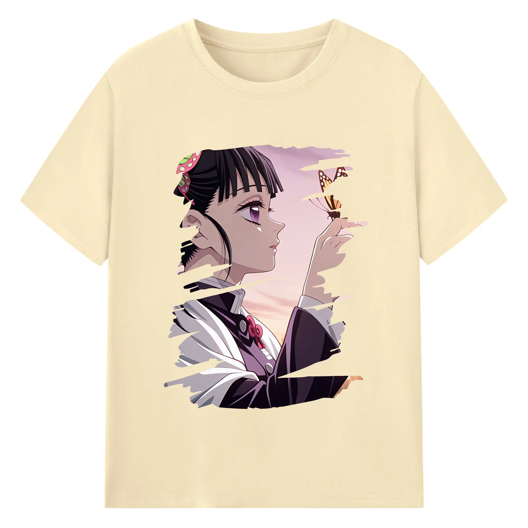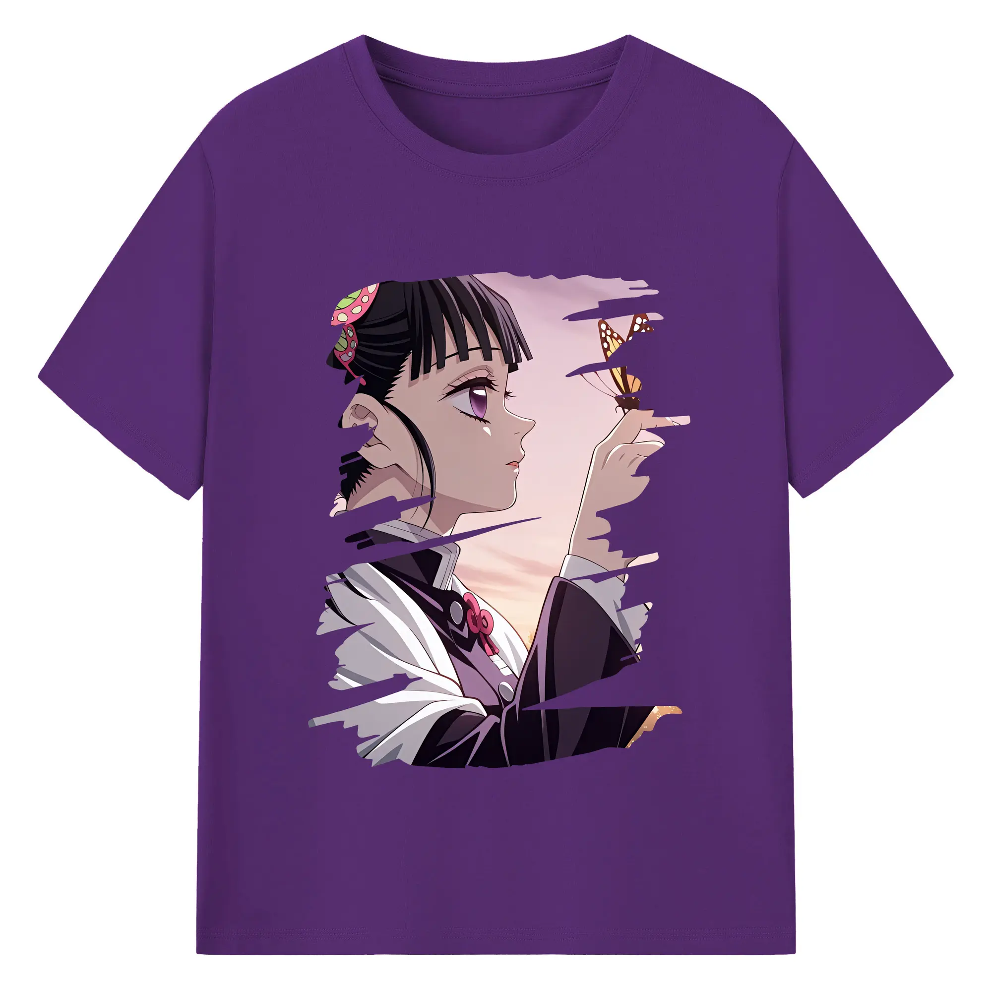 鬼滅の刃 グッズ,栗花落 カナヲ - 綿100% 半袖Tシャツ ・ バックプリント ・ 快適 通気性 ・ 日常使い 散歩 スポーツ用