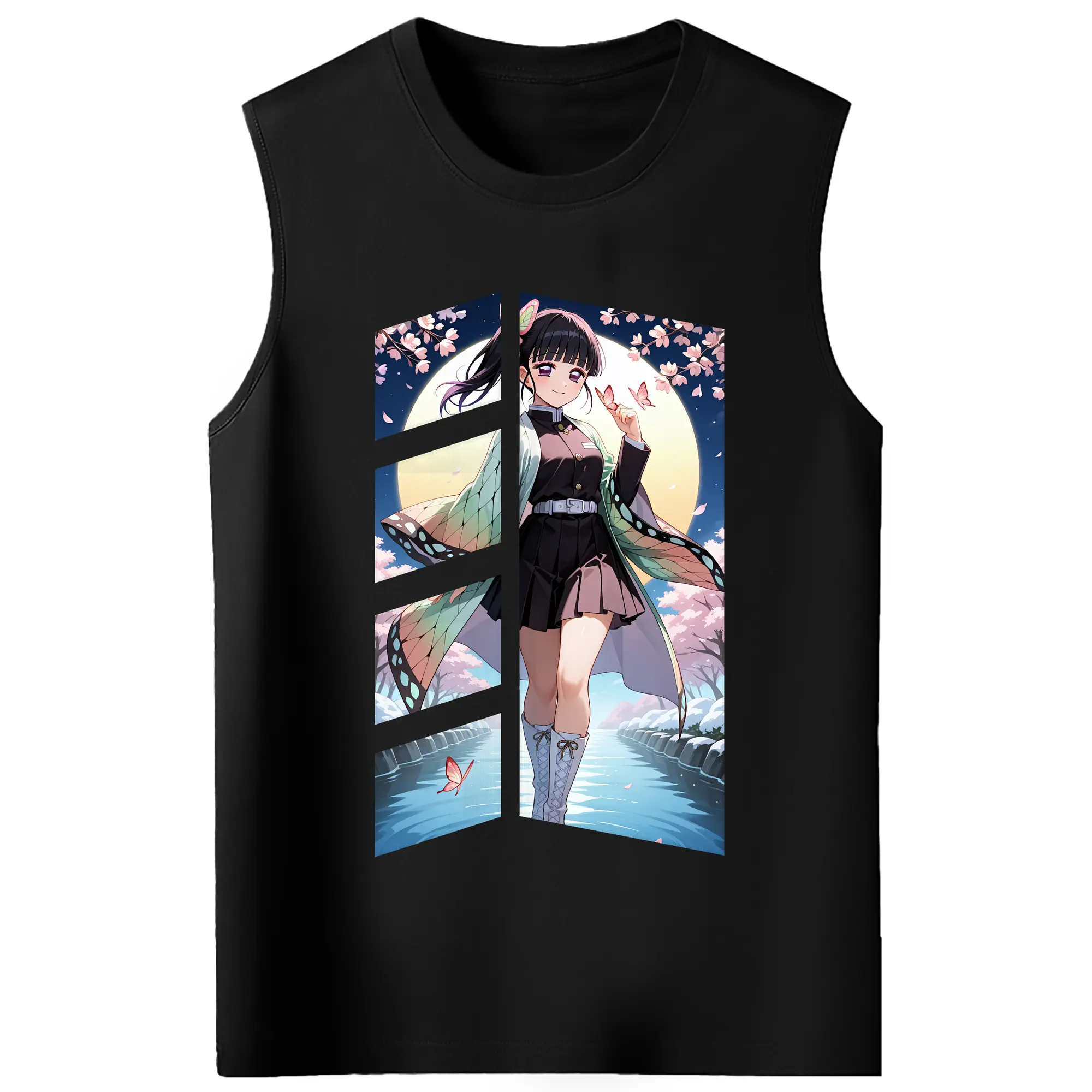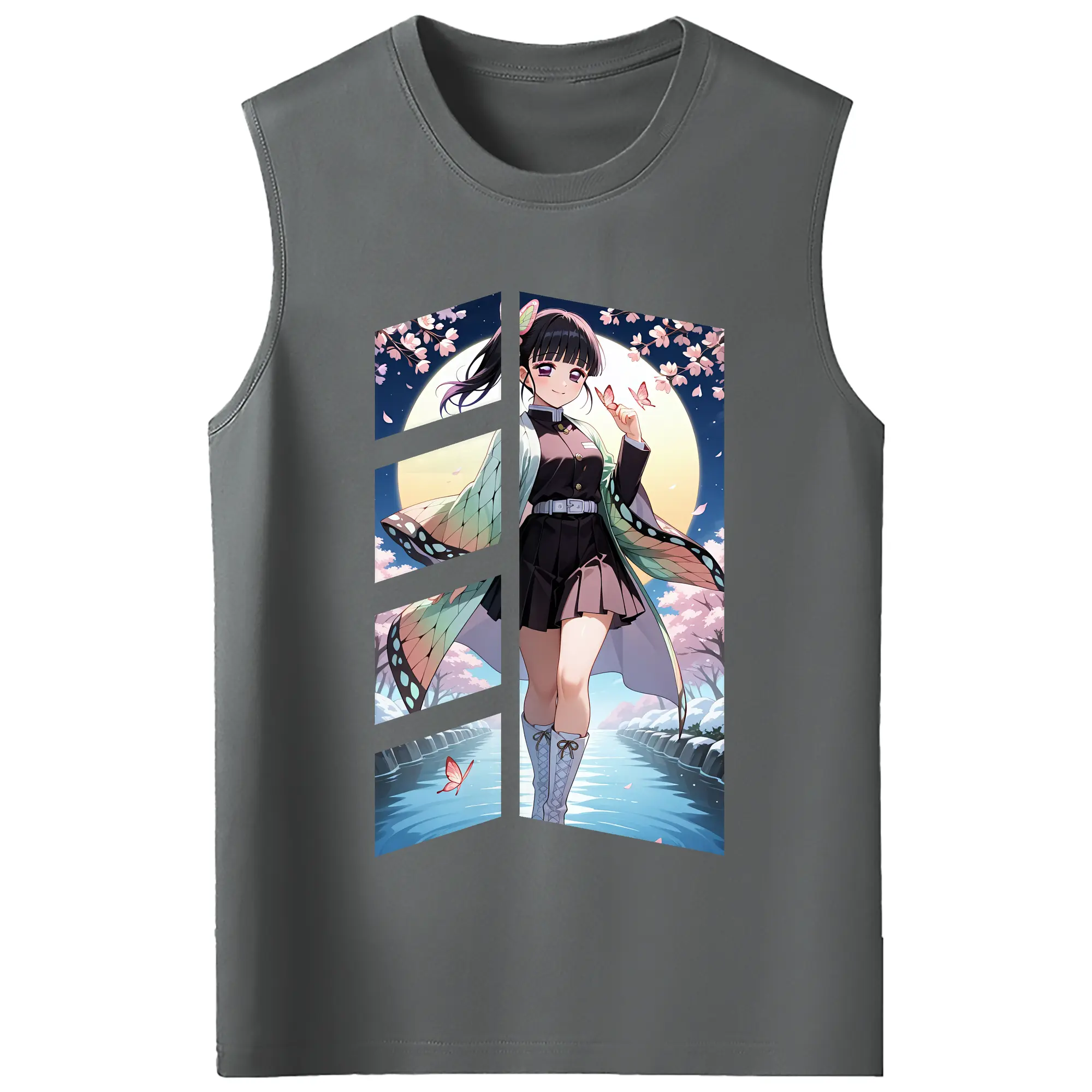 鬼滅の刃 グッズ,栗花落 カナヲ - コットン100% タンクトップ ・ フロントプリント ・ タイトフィット ・ 快適 通気性 ・ スポーツ カジュアル 散歩用