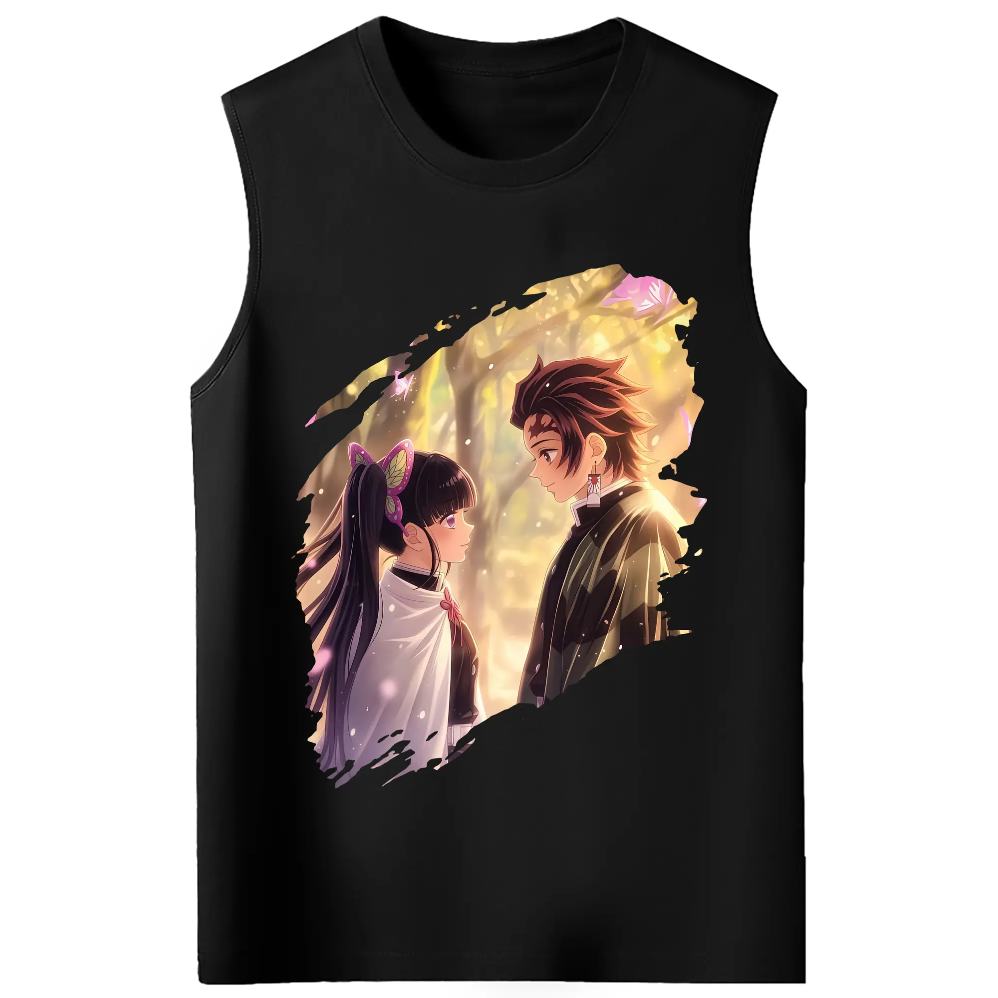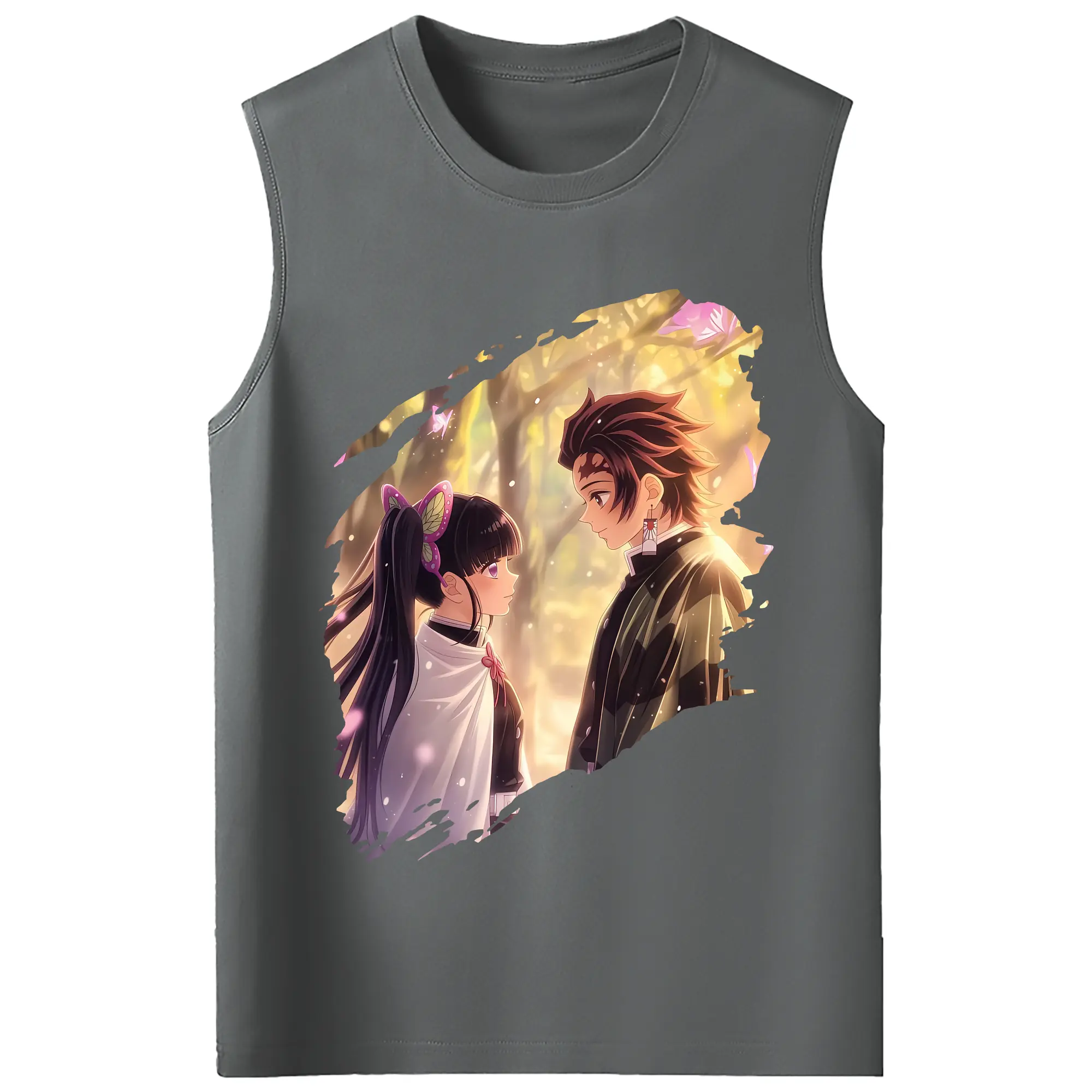鬼滅の刃 グッズ,栗花落 カナヲ - コットン100% タンクトップ ・ フロントプリント ・ タイトフィット ・ 快適 通気性 ・ スポーツ カジュアル 散歩用