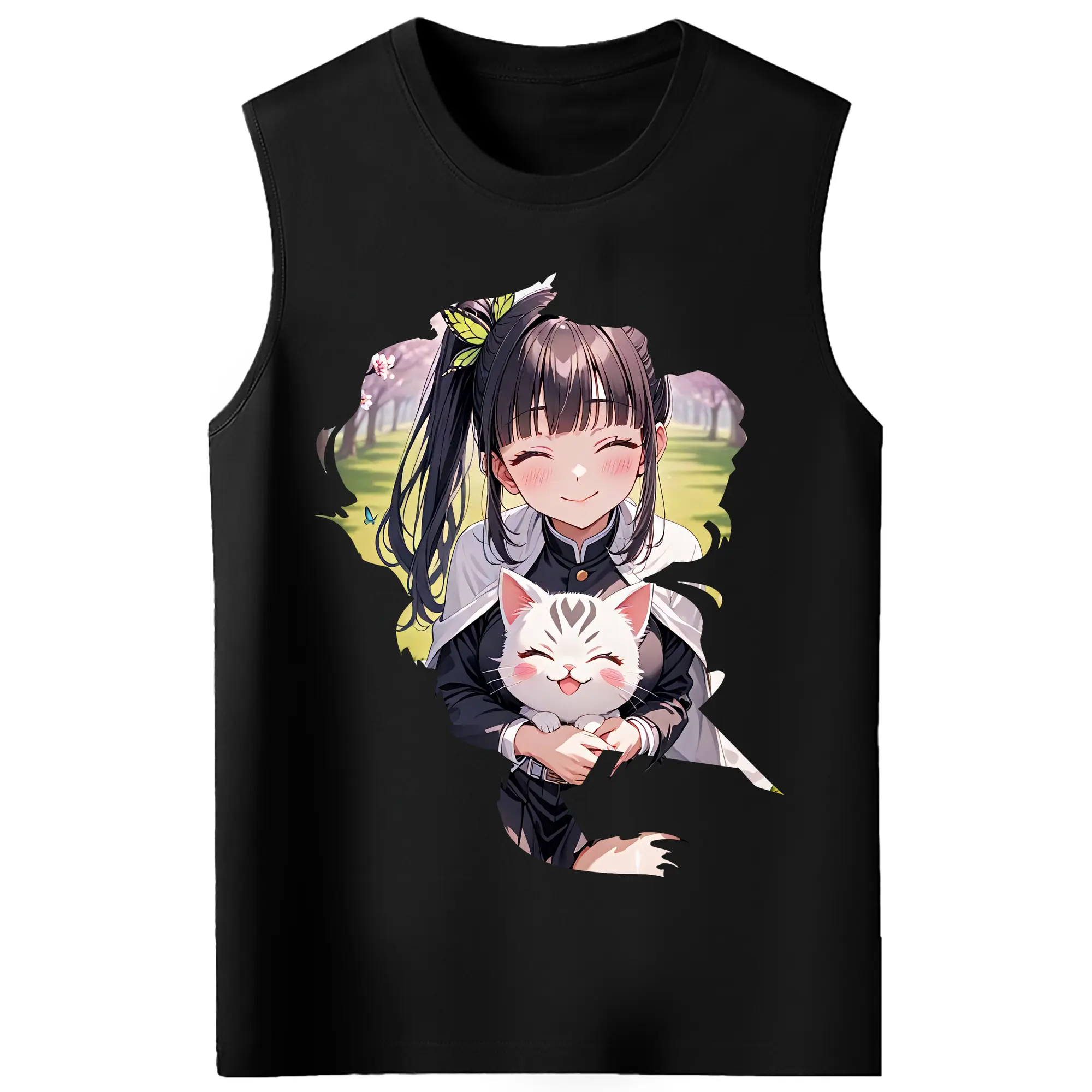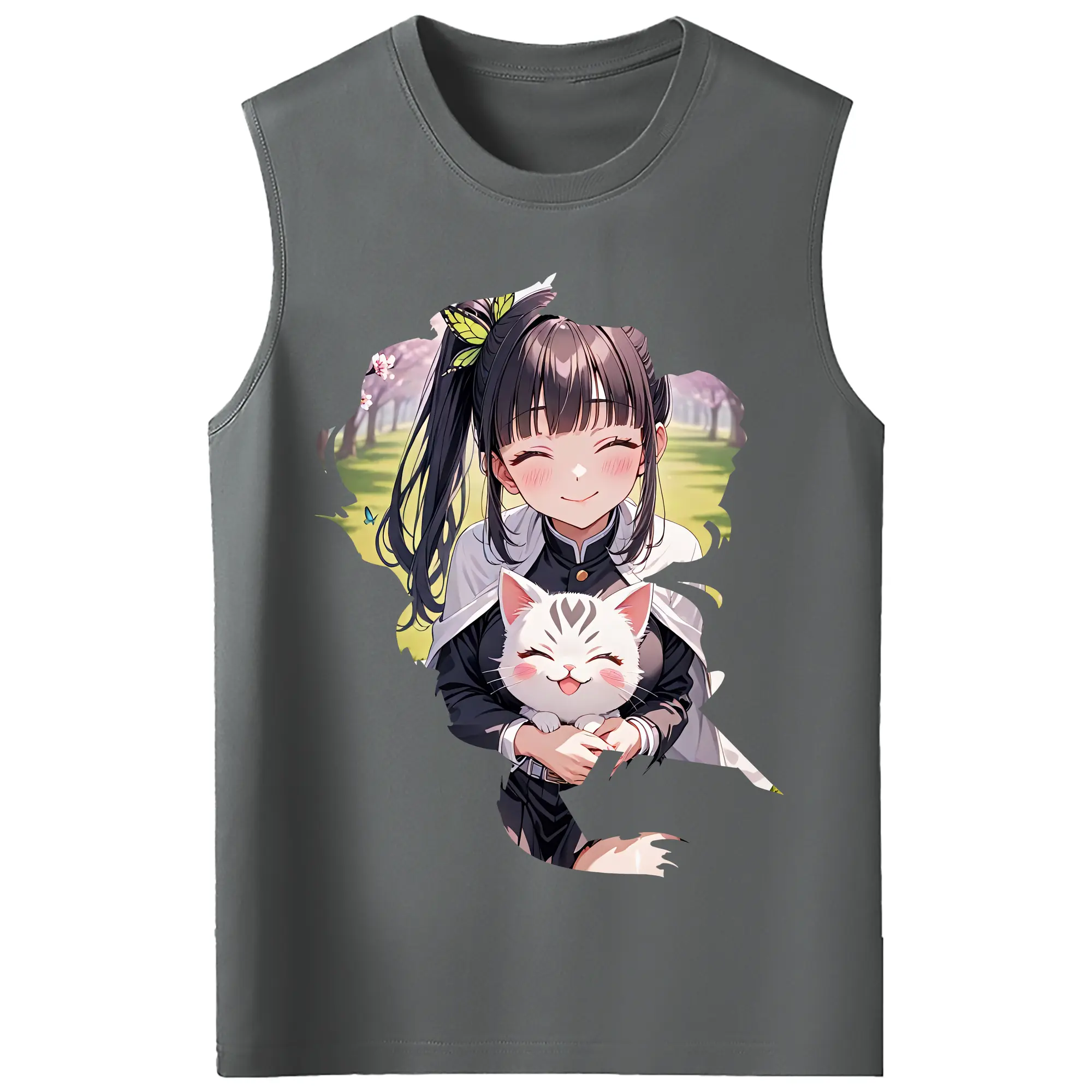 鬼滅の刃 グッズ,栗花落 カナヲ - コットン100% タンクトップ ・ フロントプリント ・ タイトフィット ・ 快適 通気性 ・ スポーツ カジュアル 散歩用