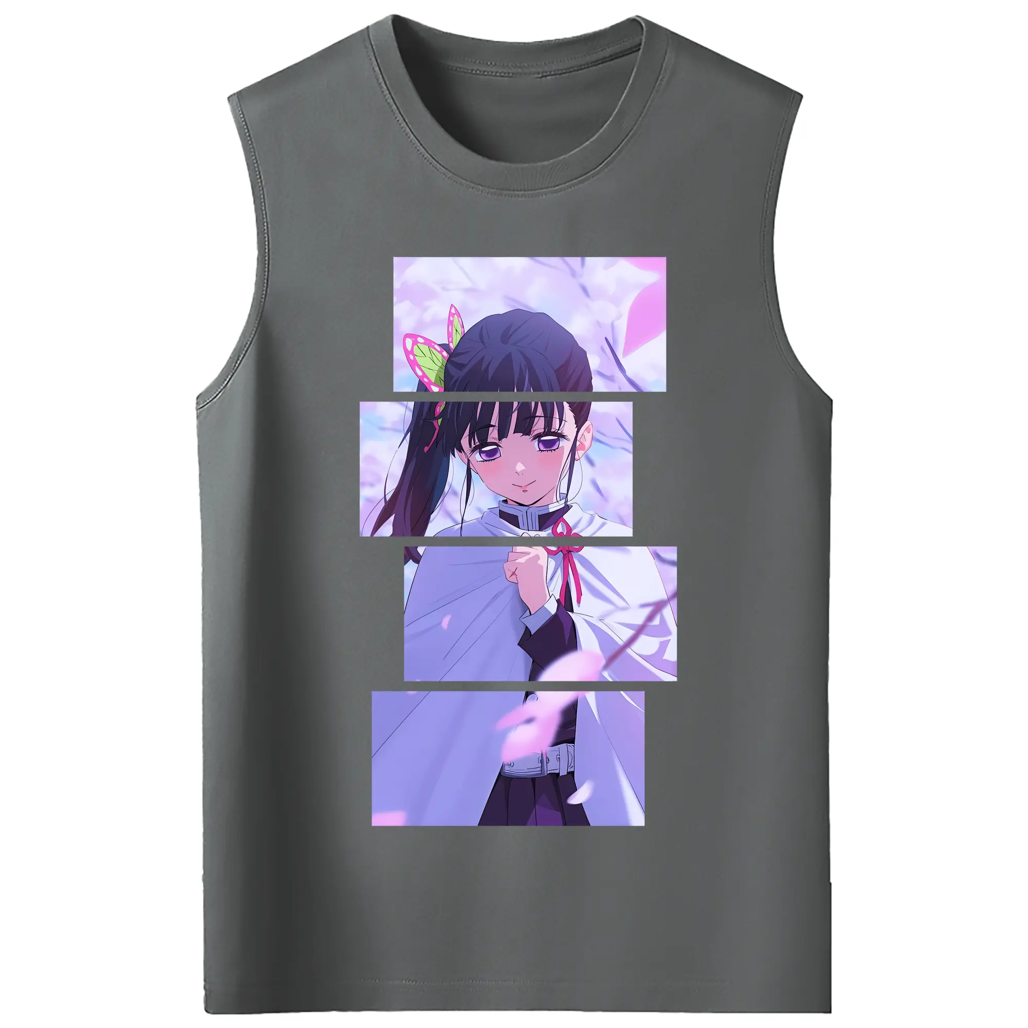 鬼滅の刃 グッズ,栗花落 カナヲ - コットン100% タンクトップ ・ フロントプリント ・ タイトフィット ・ 快適 通気性 ・ スポーツ カジュアル 散歩用