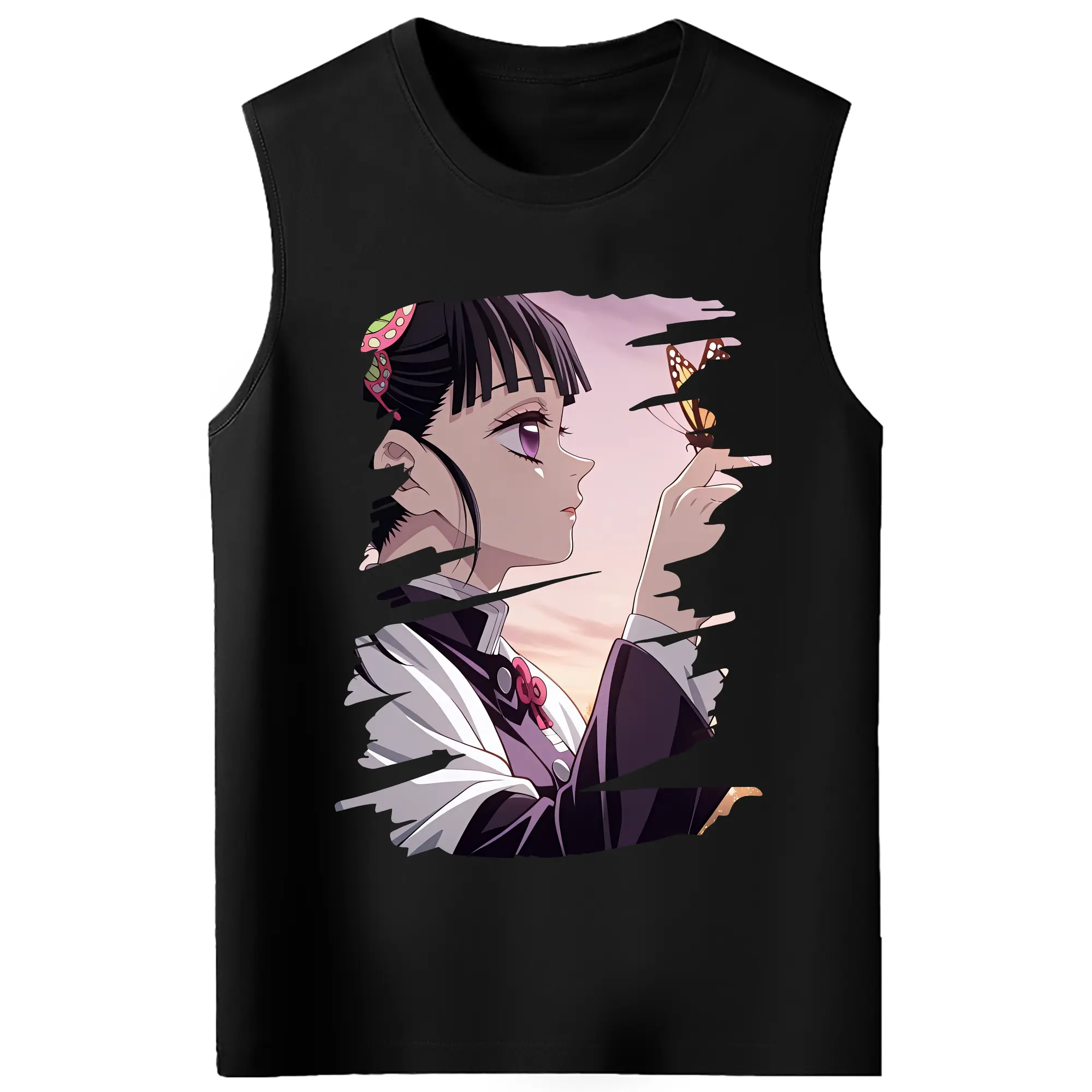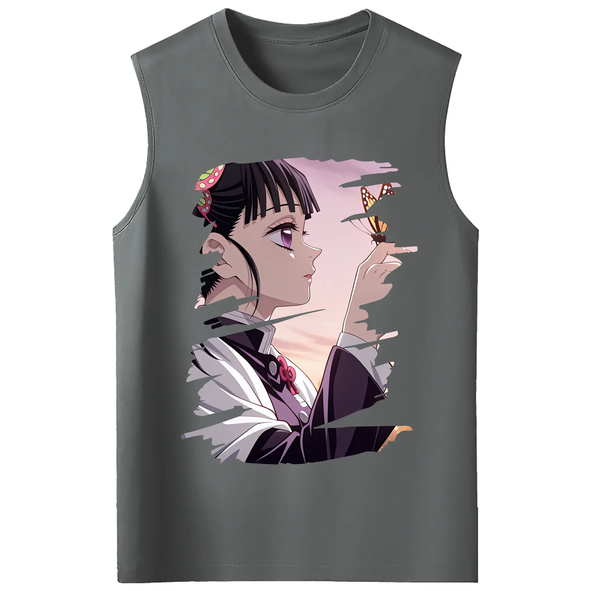 鬼滅の刃 グッズ,栗花落 カナヲ - コットン100% タンクトップ ・ フロントプリント ・ タイトフィット ・ 快適 通気性 ・ スポーツ カジュアル 散歩用