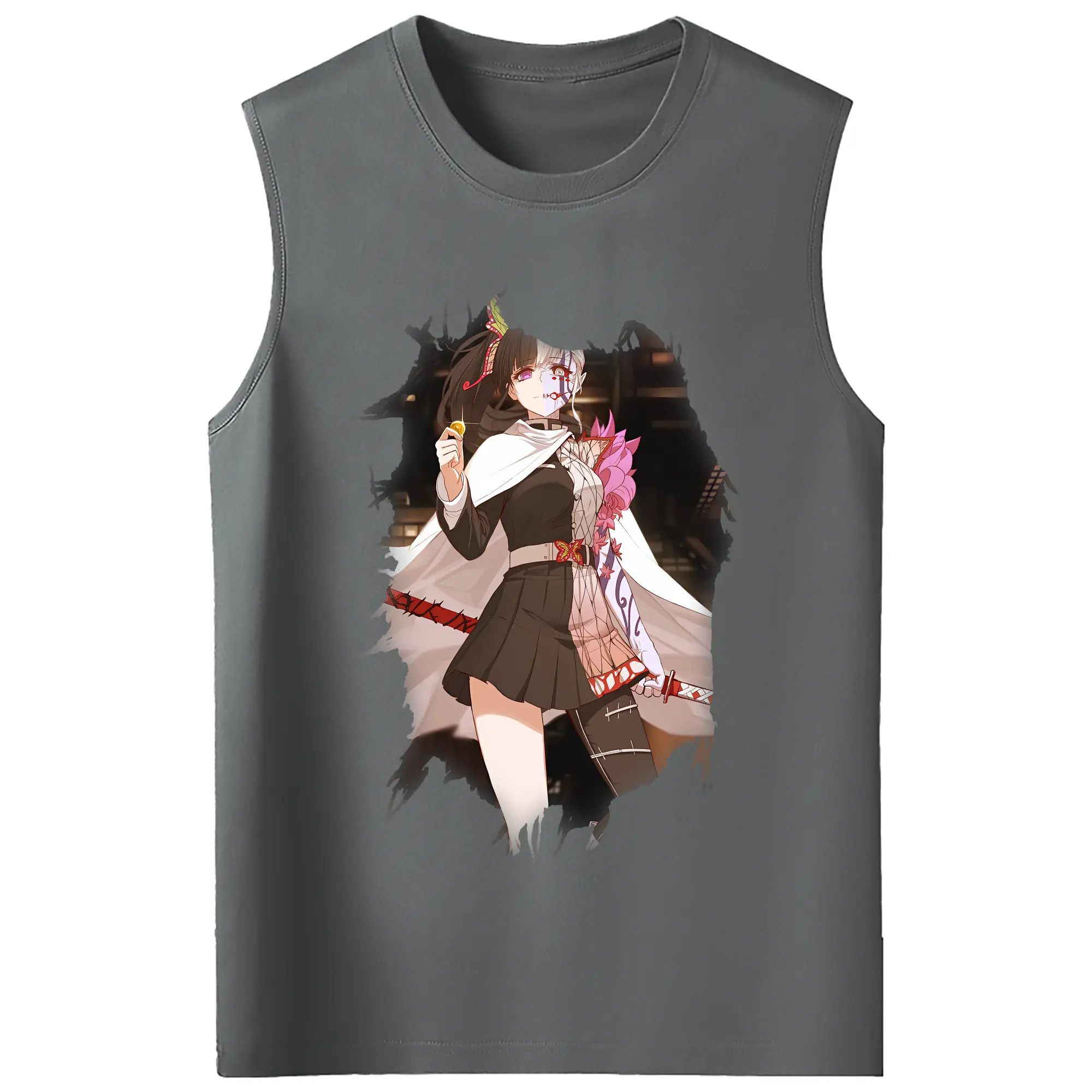 鬼滅の刃 グッズ,栗花落 カナヲ - コットン100% タンクトップ ・ フロントプリント ・ タイトフィット ・ 快適 通気性 ・ スポーツ カジュアル 散歩用
