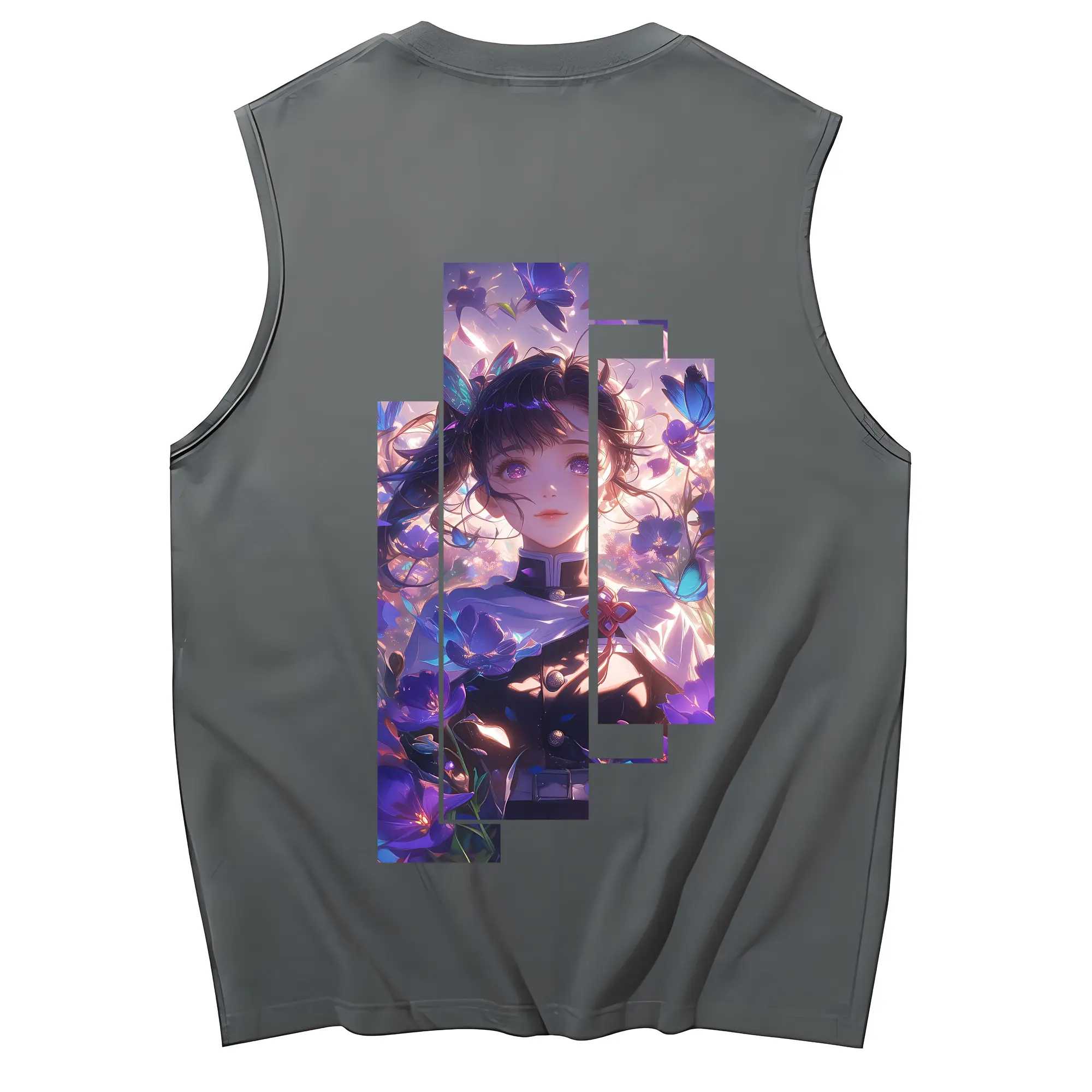 鬼滅の刃 グッズ,栗花落 カナヲ - コットン100% タンクトップ ・ 背面プリント ・ タイトシルエット ・ 快適 通気性 ・ スポーツ カジュアル 散歩用