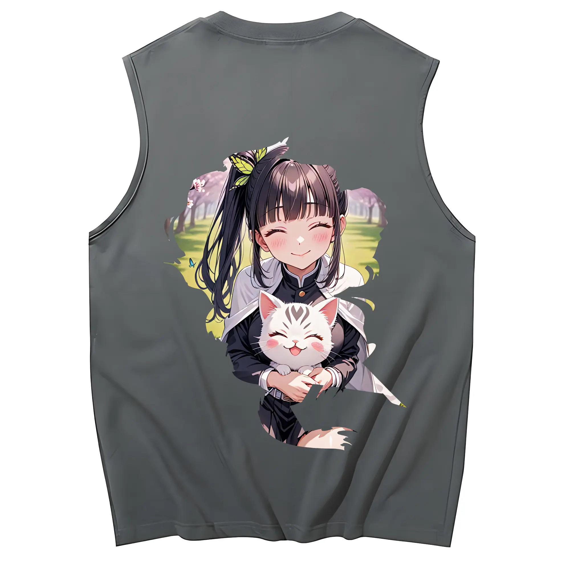 鬼滅の刃 グッズ,栗花落 カナヲ - コットン100% タンクトップ ・ 背面プリント ・ タイトシルエット ・ 快適 通気性 ・ スポーツ カジュアル 散歩用