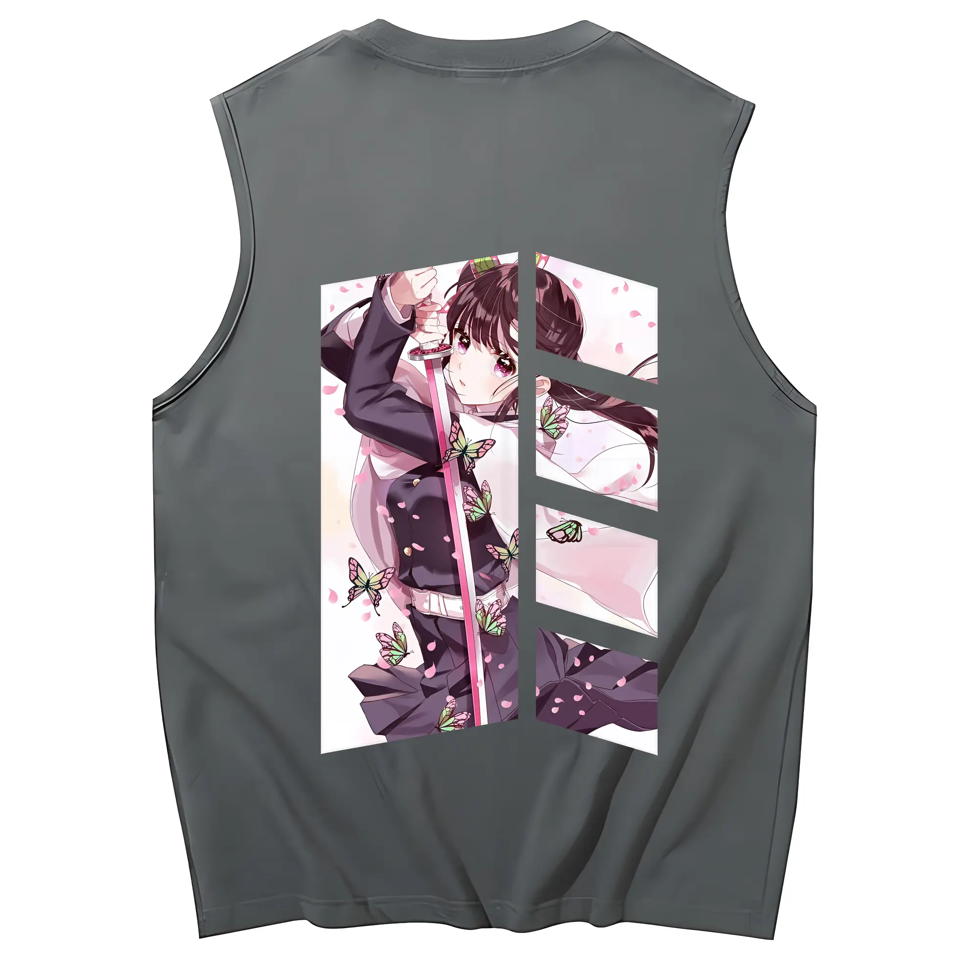 鬼滅の刃 グッズ,栗花落 カナヲ - コットン100% タンクトップ ・ 背面プリント ・ タイトシルエット ・ 快適 通気性 ・ スポーツ カジュアル 散歩用