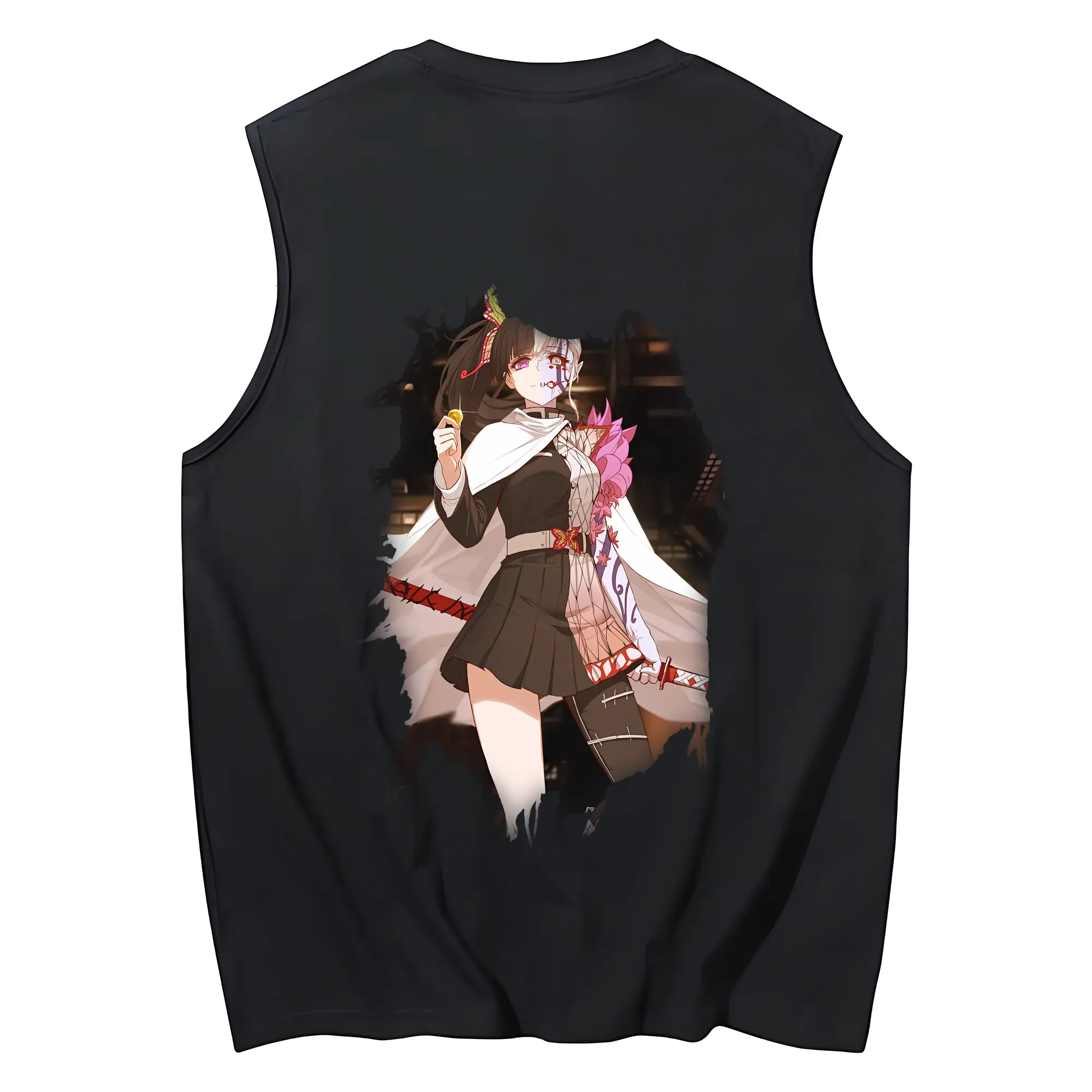 鬼滅の刃 グッズ,栗花落 カナヲ - コットン100% タンクトップ ・ 背面プリント ・ タイトシルエット ・ 快適 通気性 ・ スポーツ カジュアル 散歩用