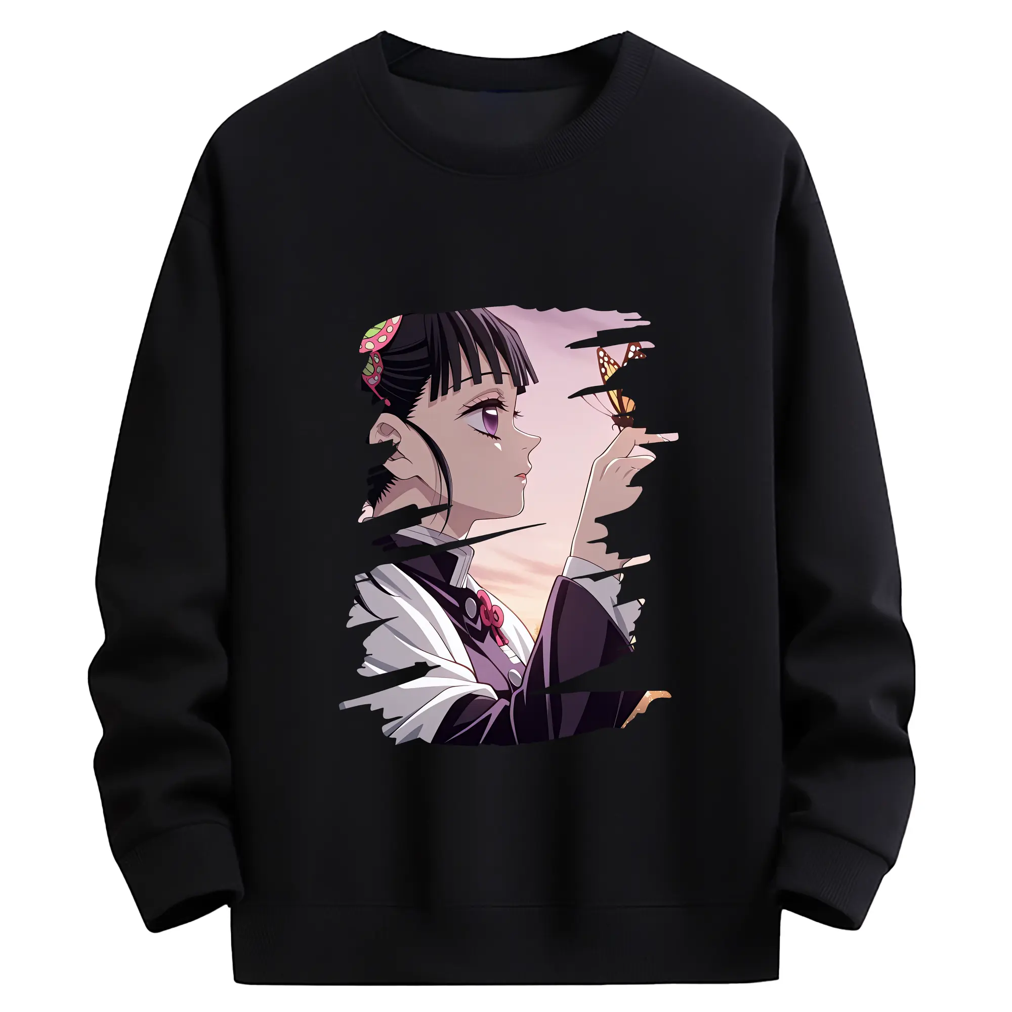 鬼滅の刃 グッズ,栗花落 カナヲ - 高品質 クルーネック スウェット ・ コットン59% ポリエステル41% ・ ユニセックス 長袖 トレーナー ・ カジュアル デイリー スポーツ 散歩用