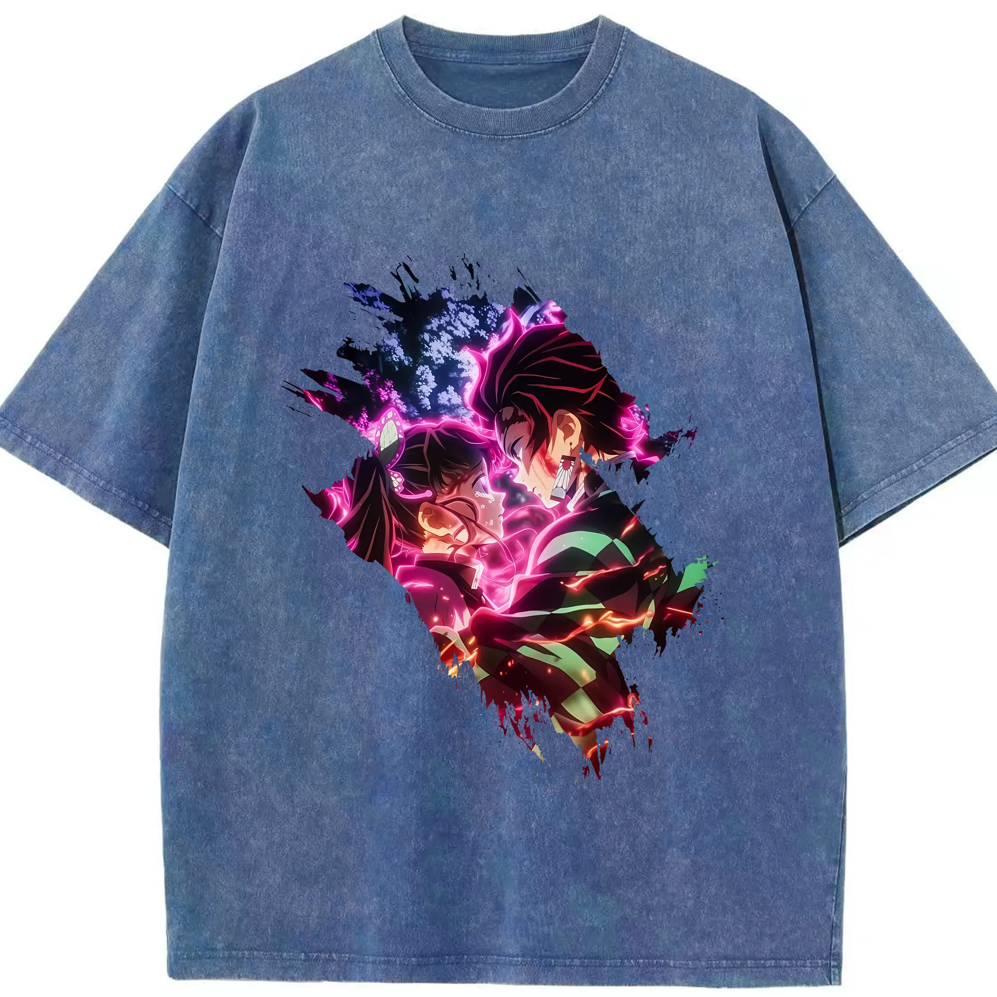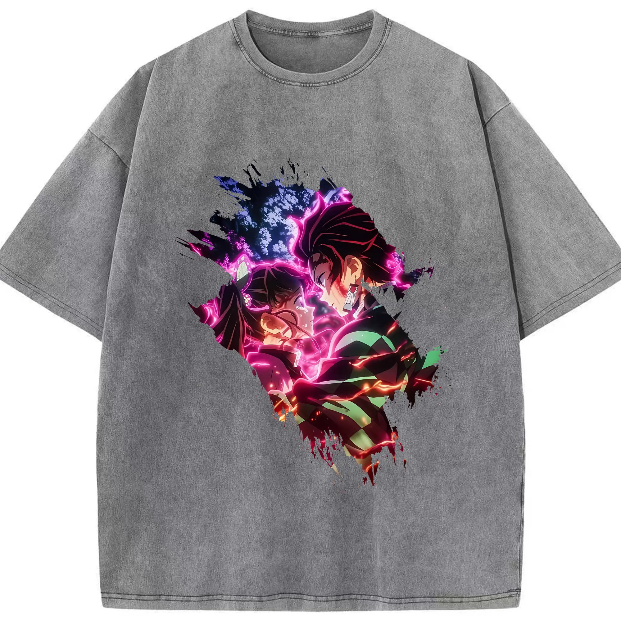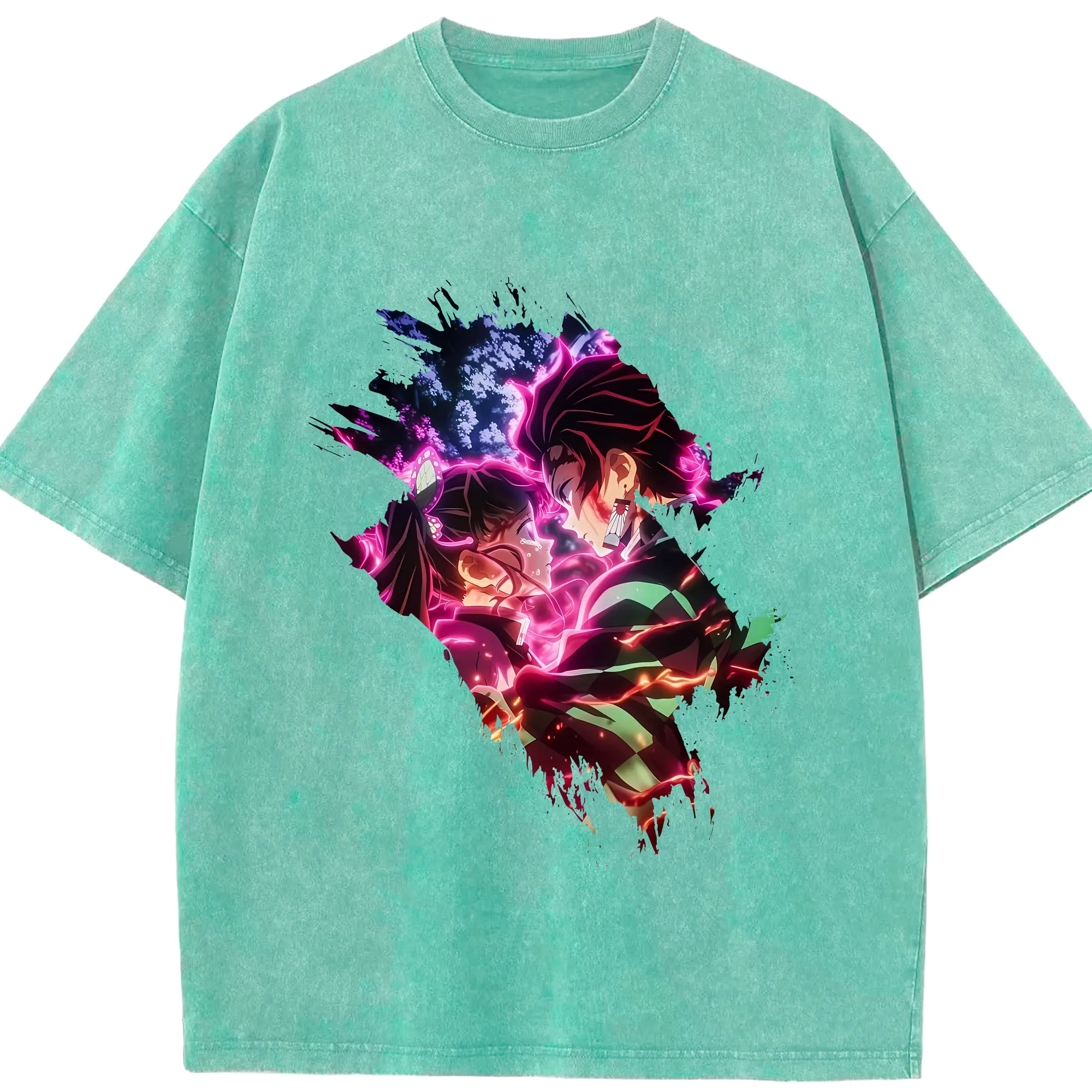 鬼滅の刃 グッズ,冨岡 義勇 - 綿100% ヴィンテージ風 半袖Tシャツ ・ フロントプリント ・ 柔らか肌触り ・ 通気性 快適 ・ スポーツ カジュアル 外出用