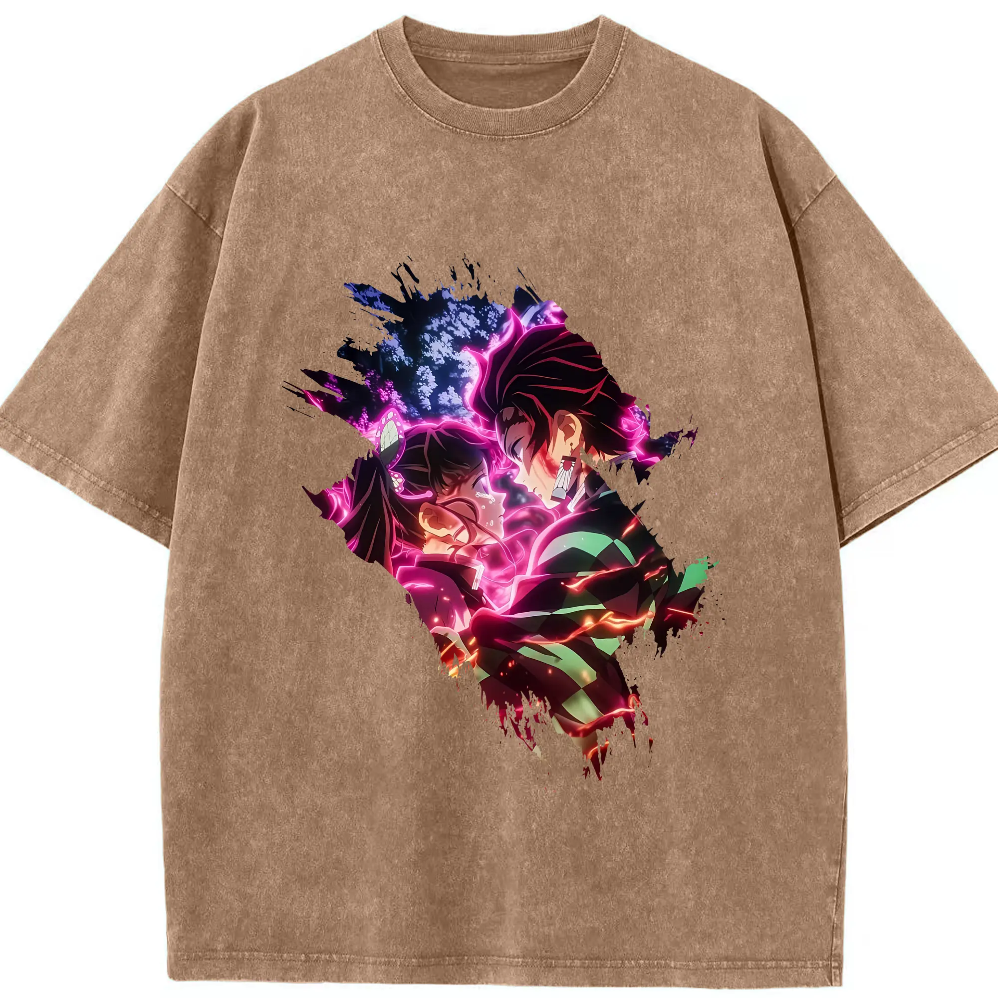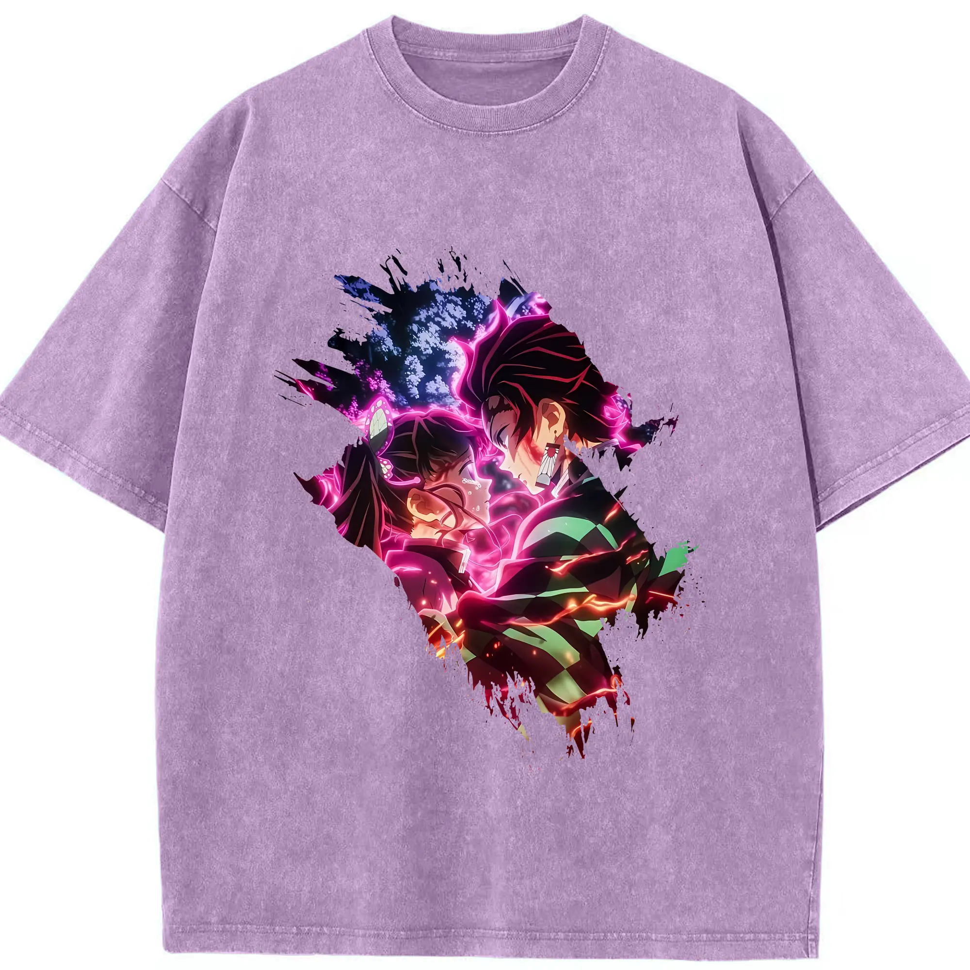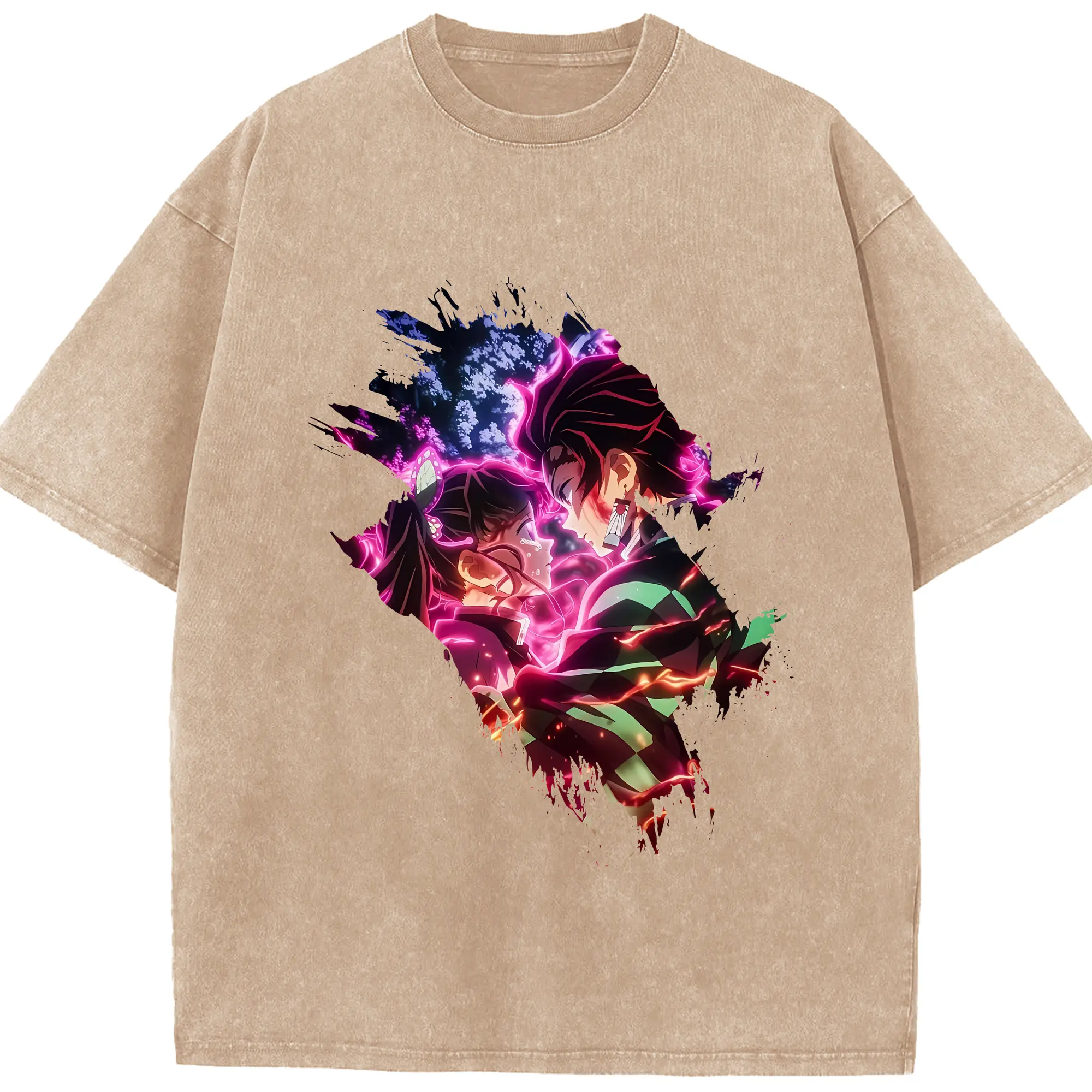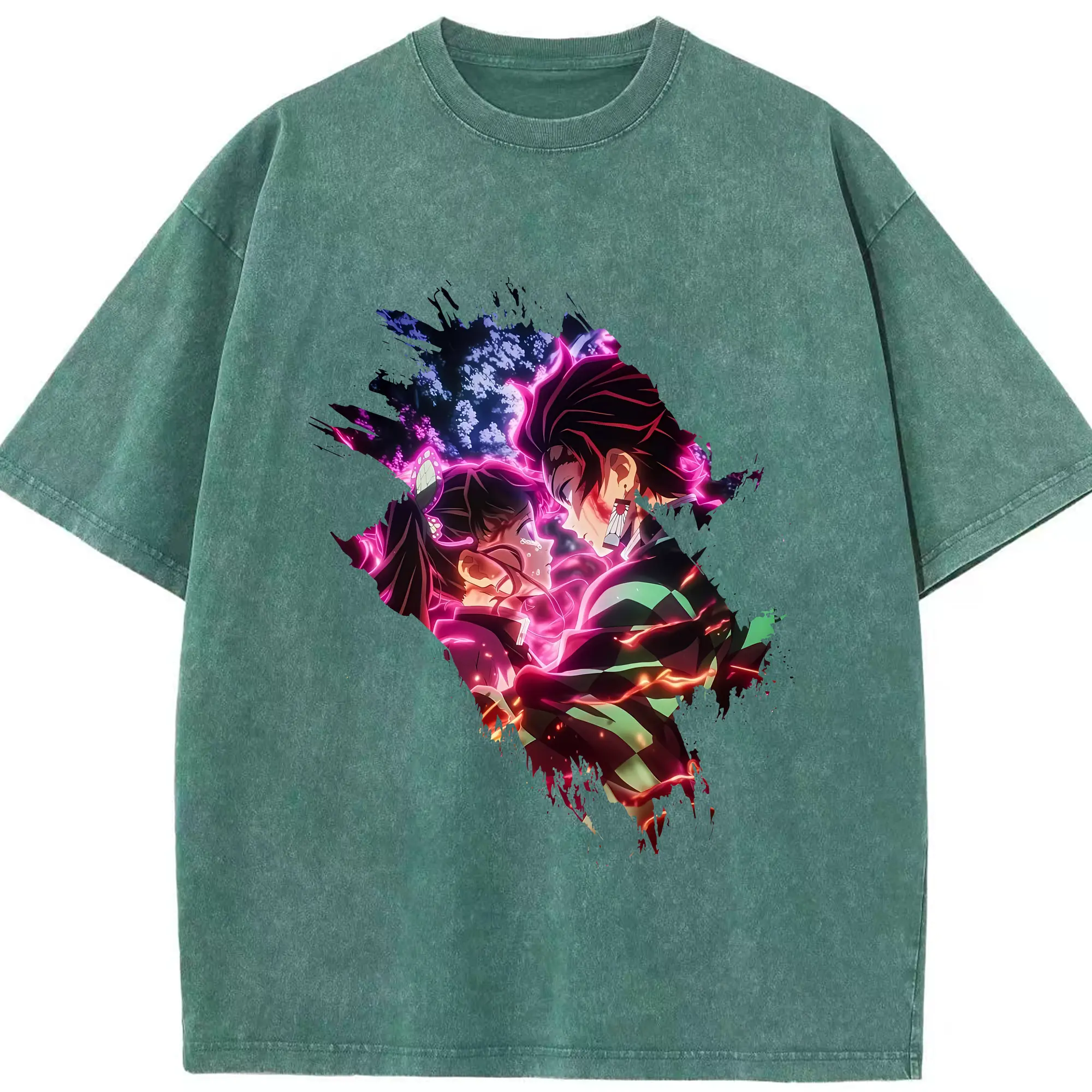 鬼滅の刃 グッズ,冨岡 義勇 - 綿100% ヴィンテージ風 半袖Tシャツ ・ フロントプリント ・ 柔らか肌触り ・ 通気性 快適 ・ スポーツ カジュアル 外出用