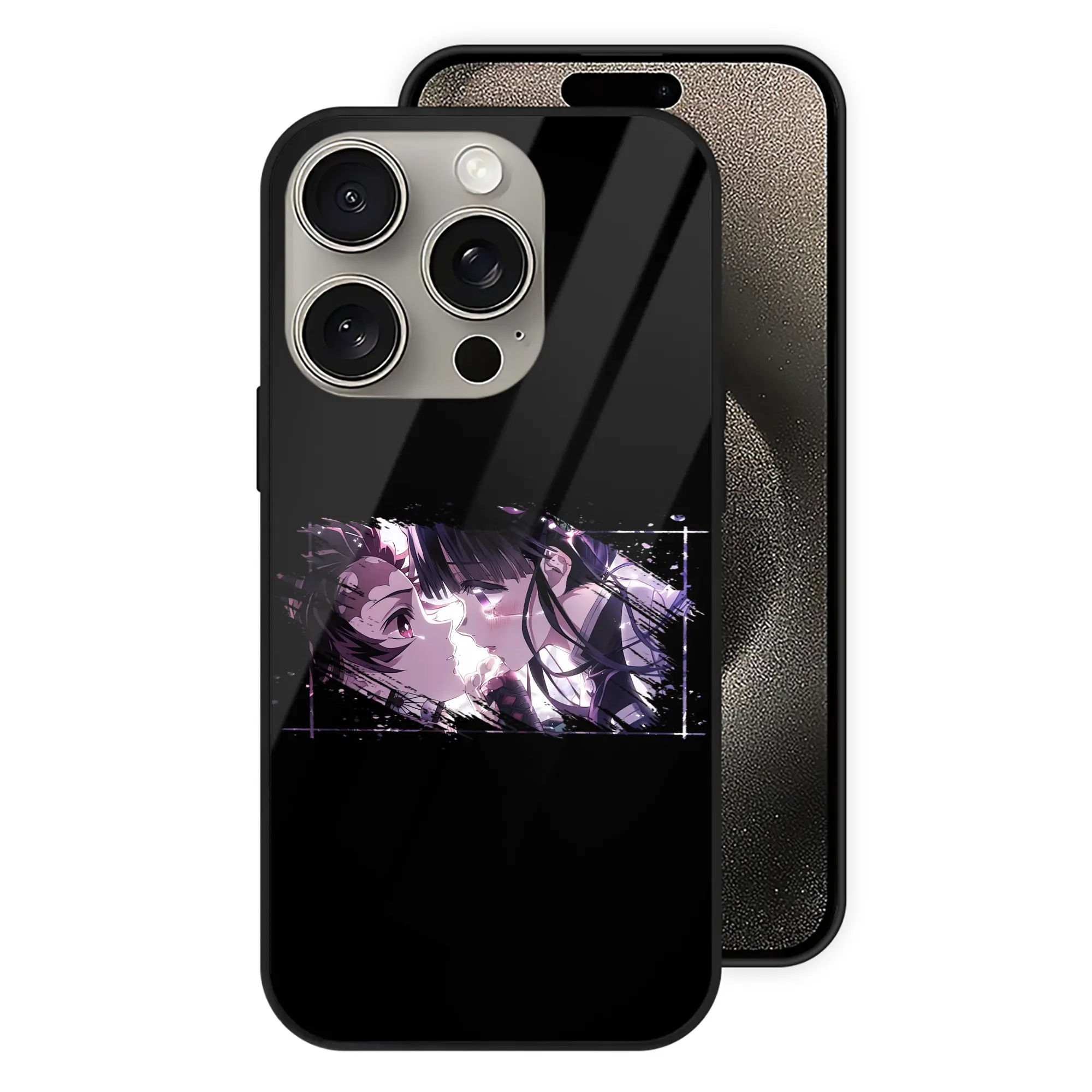 鬼滅の刃 グッズ,栗花落 カナヲ - IPhone15Pro対応 ・ スマホケース ・ 背面ガラス ・ TPU+強化ガラス ・ 耐衝撃 ・ 黄変防止 ・ ワイヤレス充電対応 ・ 3D立体ボタン