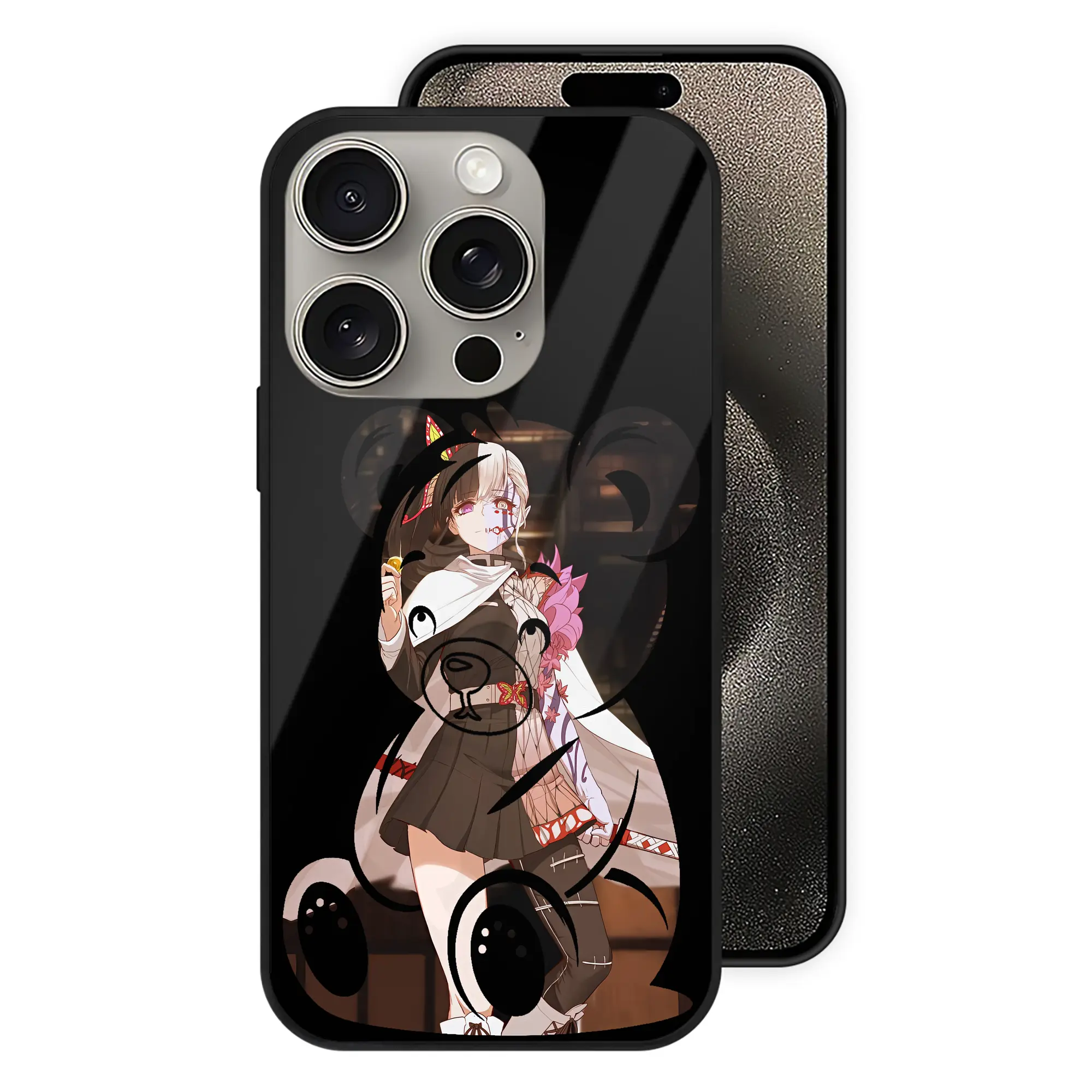 鬼滅の刃 グッズ,栗花落 カナヲ - IPhone15Pro対応 ・ スマホケース ・ 背面ガラス ・ TPU+強化ガラス ・ 耐衝撃 ・ 黄変防止 ・ ワイヤレス充電対応 ・ 3D立体ボタン