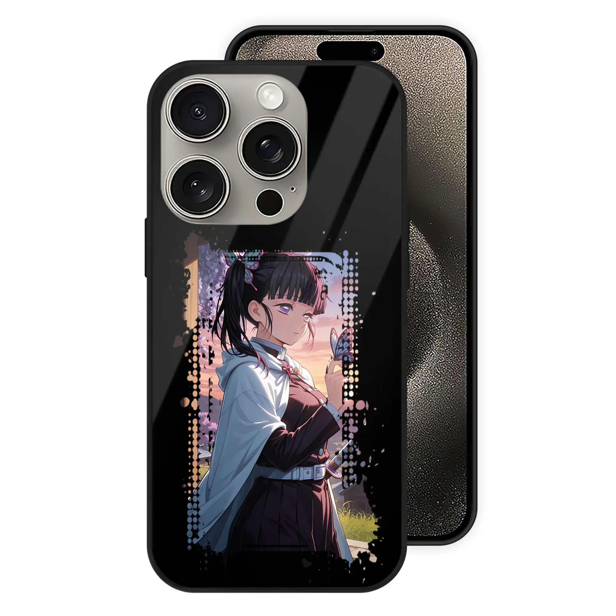 鬼滅の刃 グッズ,栗花落 カナヲ - IPhone15Pro対応 ・ スマホケース ・ 背面ガラス ・ TPU+強化ガラス ・ 耐衝撃 ・ 黄変防止 ・ ワイヤレス充電対応 ・ 3D立体ボタン