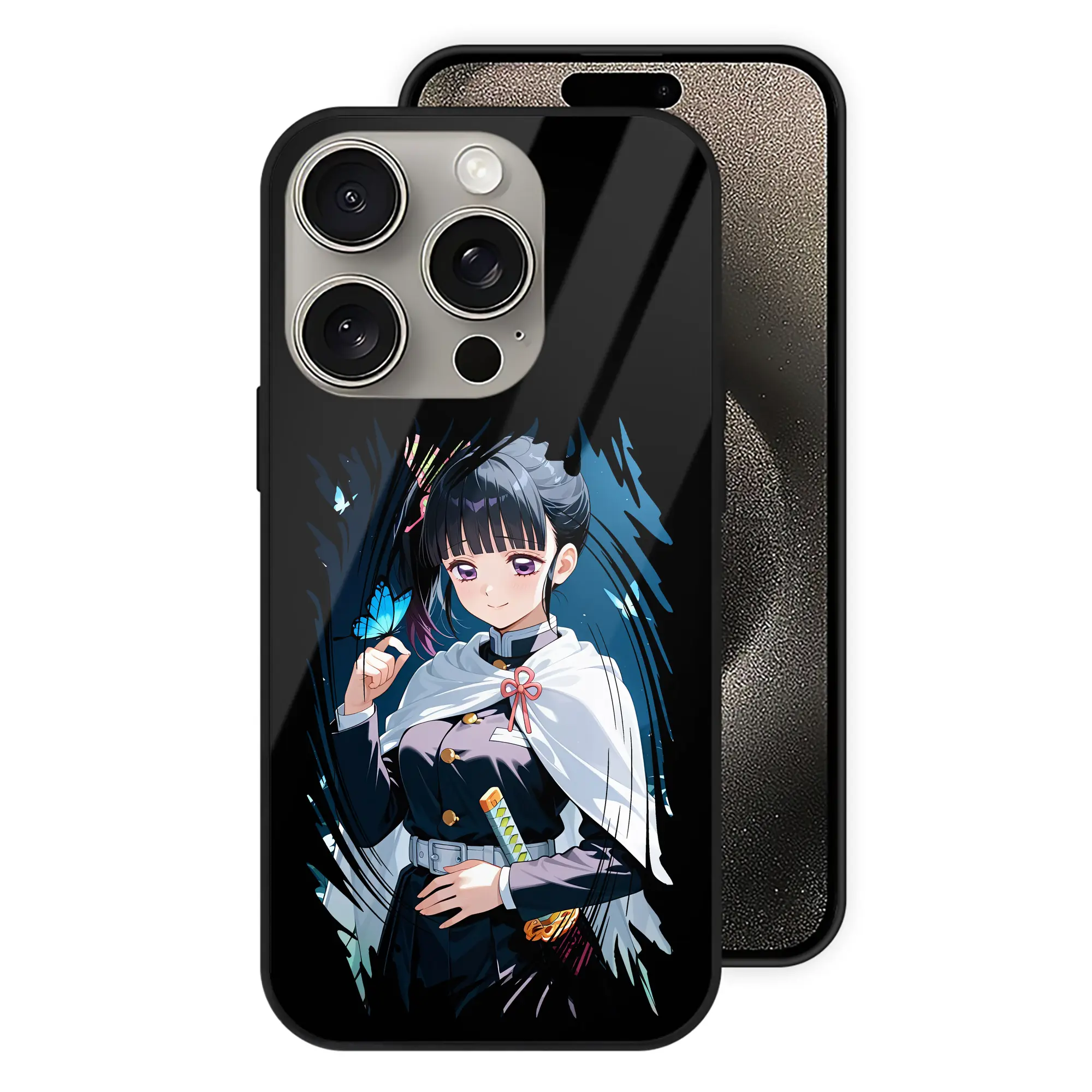 鬼滅の刃 グッズ,栗花落 カナヲ - IPhone15Pro対応 ・ スマホケース ・ 背面ガラス ・ TPU+強化ガラス ・ 耐衝撃 ・ 黄変防止 ・ ワイヤレス充電対応 ・ 3D立体ボタン