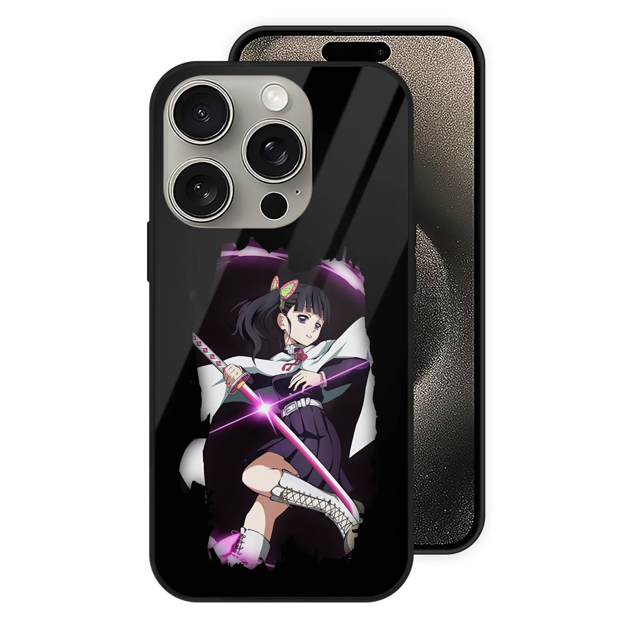 鬼滅の刃 グッズ,栗花落 カナヲ - IPhone15Pro対応 ・ スマホケース ・ 背面ガラス ・ TPU+強化ガラス ・ 耐衝撃 ・ 黄変防止 ・ ワイヤレス充電対応 ・ 3D立体ボタン